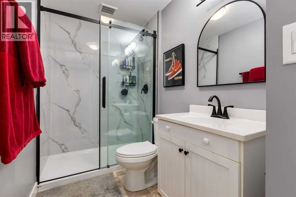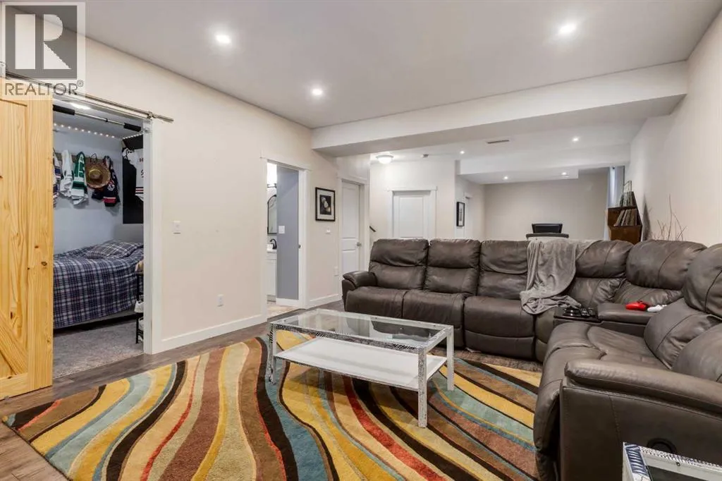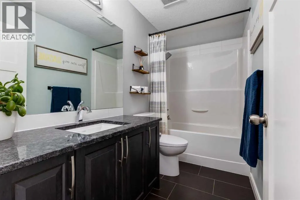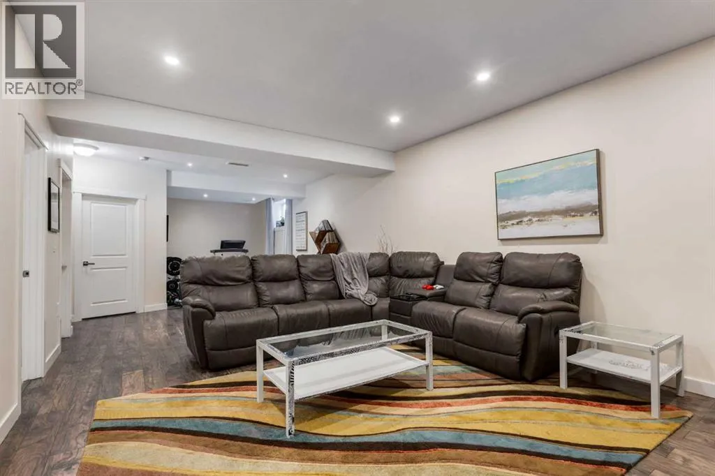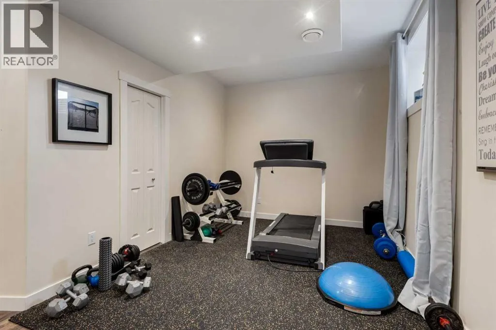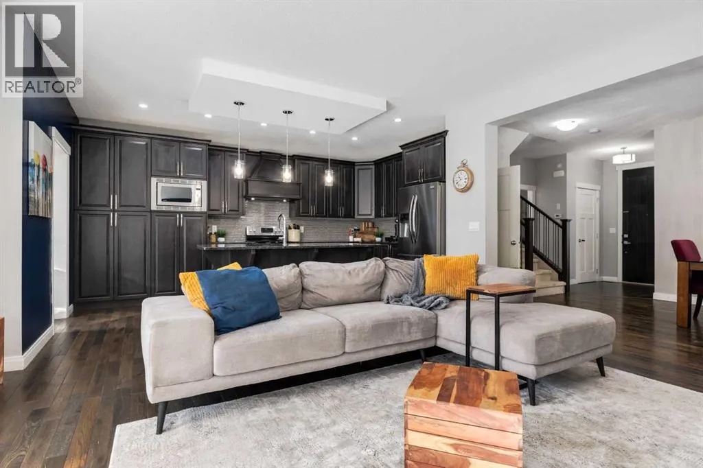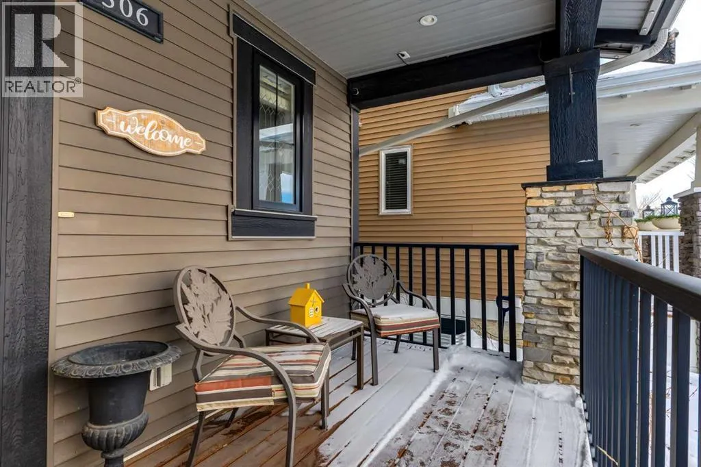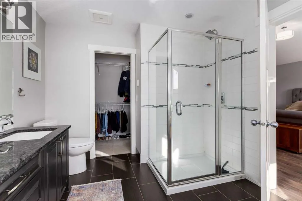 Impeccably finished from top to bottom, with thoughtful upgrades, elegant spaces, a private backyard retreat, AND an OVERSIZED 24x22 Detached Double Garage! From the moment you step inside off the covered front porch , a welcoming tile Foyer leads you into a bright main floor where rich hardwood floors and elegant design details create a warm, inviting atmosphere. Just off the front entrance is a private Home Office with French doors and bright windows âperfect for working from home or a quiet study space. The Dining area is extremely spacious and features a striking chandelier, flowing seamlessly into the Living Room and Kitchen. Natural light floods the Living Room, with a cozy gas fireplace with a mantle, framed by two bookcase cabinets. French doors open to the partially covered back deck, creating a natural connection between indoor and outdoor living.The Kitchen is perfectly designed for both everyday life and entertaining, showcasing granite countertops, full-height cabinetry, SS appliances and a large island designed for gathering. A convenient tiled Laundry & Mudroom just off the kitchen offers a folding counter, additional cabinetry, and built-in bench with hooks, keeping coats and bags neatly organized. Completing this open-concept main level is a 2-pc Bathroom with pedestal sink & an opening window. Ushered upstairs by the wide carpeted, modern staircase youâll find a spacious Bonus Room filled with sunshine, The Primary retreat boasts vaulted ceiling, a cozy window seat, and a walk-in closet. The 5-pc Ensuite is a true spa-inspired space featuring in-floor heating, a stand-alone soaker tub beneath the big window, separate walk-in corner shower, dual sinks with granite counters, and tons of cupboard / additional drawer storage. Central A/C and UV window protection has been added to enhance comfort and efficiency in this home. Also upstairs are 2 more spacious Bedrooms, an organized Linen Closet, and a beautifully finished 4-pc Bathroom with granite coun ters and tile flooring. The FULLY FINISHED BASEMENT expands your living space with impressive 9ft ceilings, a massive Family Room/ Recreation area, extra space for your Home Gym, a FOURTH BEDROOM, a stunning 3-pc Bathroom with an O/S walk-in shower and great vanity storage, AND loads of extra storage options. Outside, the beautifully landscaped backyard feels like a private oasis with mature trees & gardens, a partially covered deck for relaxing or entertaining, and a stamped concrete patio and pathway to the Garage. Last but certainly not least - the oversized 22'x24' Double Detached Garage with PAVED LANE ACCESS! Located in one of Airdrieâs most sought-after communities, this home is just steps from parks, pathways, schools, and the many amenities of Coopers Promenade. Donât miss the chance to call this luxurious property HOME, book a private showing TODAY. (id:27476)