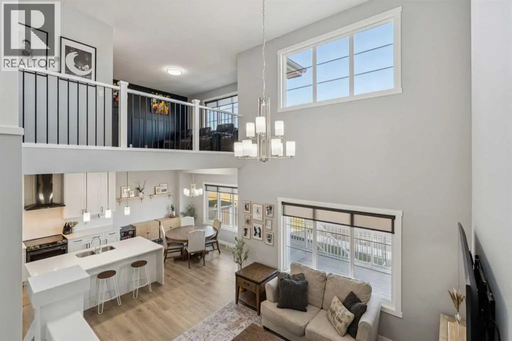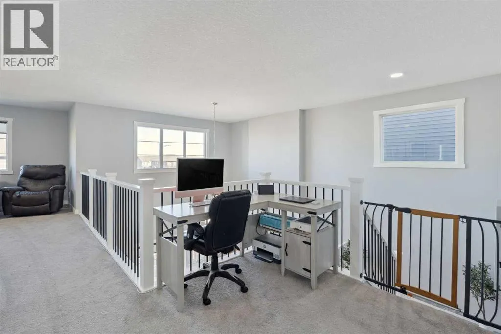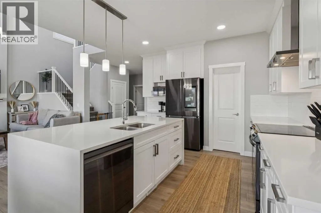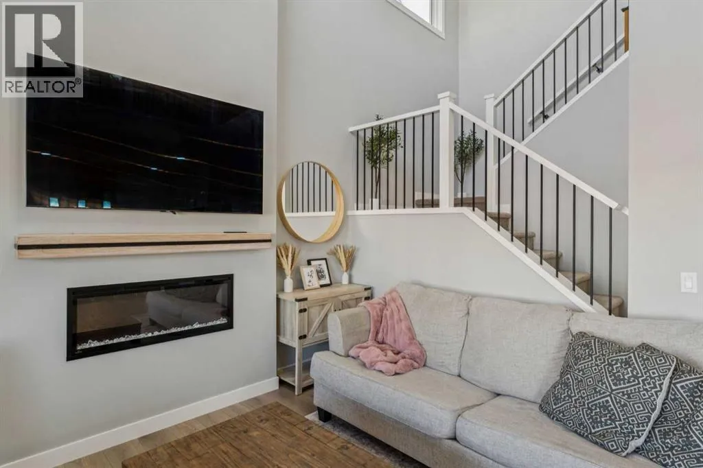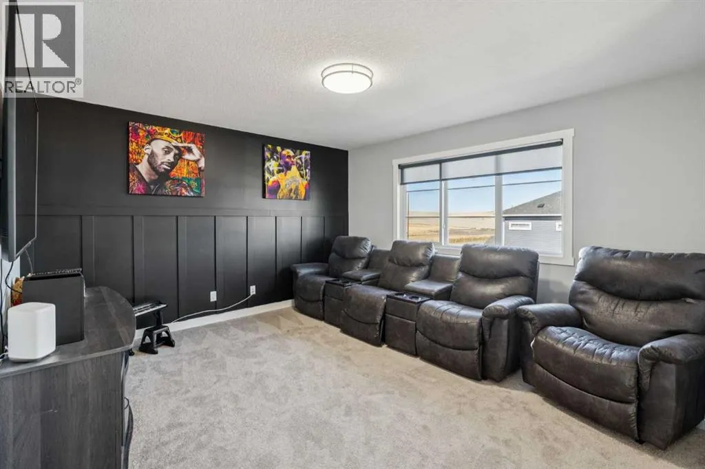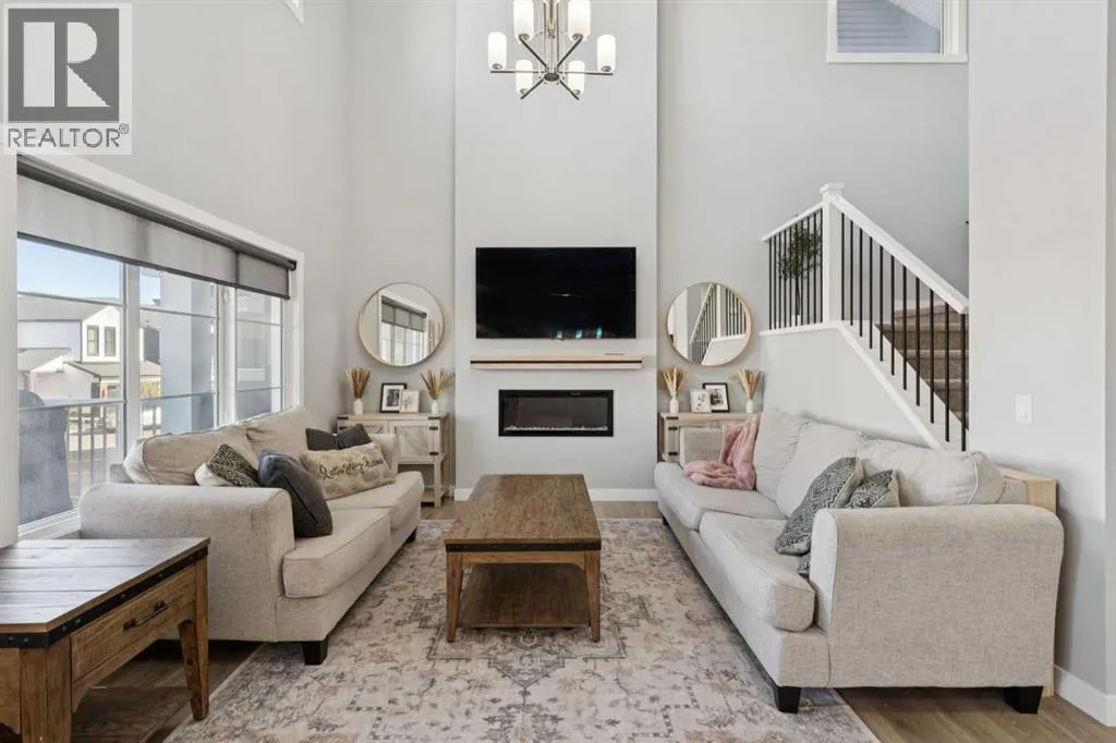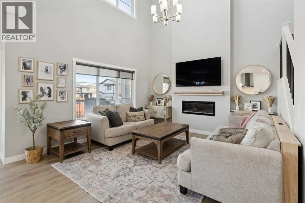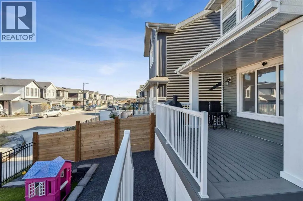 Welcome to this stunning two-storey home in the sought-after community of Cobblestone Creek, where modern elegance meets everyday functionality.Step inside to a bright, OPEN-CONCEPT main floor designed for both entertaining and comfortable family living. The chef-inspired kitchen is truly the heart of the home, showcasing WATERFALL QUARTZ COUNTERTOPS on the OVERSIZED island with BREAKFAST BAR seating, an induction range, sleek hood fan, BUILT-IN MICROWAVE, and a convenient WALK-THROUGH PANTRY that connects seamlessly to the mudroom. The mudroom features a BUILT-IN BENCH and provides direct access to the TRIPLE ATTACHED GARAGEâcomplete with an EV CHARGER, side entrance, and an organized bin storage system.The living room makes a dramatic statement with soaring open-to-below ceilings, an open railing, and a striking electric fireplace with mantle creating a warm and inviting focal point. A dedicated main floor office offers the perfect space for working from home or managing busy family life.Upstairs, youâll find a bright bonus room highlighted by elegant board and batten detailing. Two spacious childrenâs bedrooms echo the same custom design feature, adding charm and character. All bathrooms throughout the home are finished with QUARTZ COUNTERTOPS, offering a cohesive, upscale feel. The conveniently located upper-level laundry room adds everyday ease.The primary suite is a peaceful retreat, complete with a luxurious 5-piece ensuite featuring double sinks, a relaxing soaker tub, and a standalone shower. The WALK-IN closet is thoughtfully designed with TWO-TIERED SHELVING and a window for natural light an exceptional and rare upgrade.The UNFINISHED BASEMENT includes a bathroom rough-in, providing endless possibilities for future development.Step outside to enjoy the beautifully designed outdoor space, featuring a partially covered TWO-TIER COMPOSITE DECK ideal for year round entertaining. The backyard showcases TWO-TIERED LANDSCAPING with ARTIFICIAL TURF, a PAVED PATHWAY, and GREEN SPACE behind, offering added privacy and low-maintenance living.Blending designer finishes, smart upgrades, and modern comfort, this exceptional home is located in one of Airdrieâs fastest-growing communities. (id:27476)