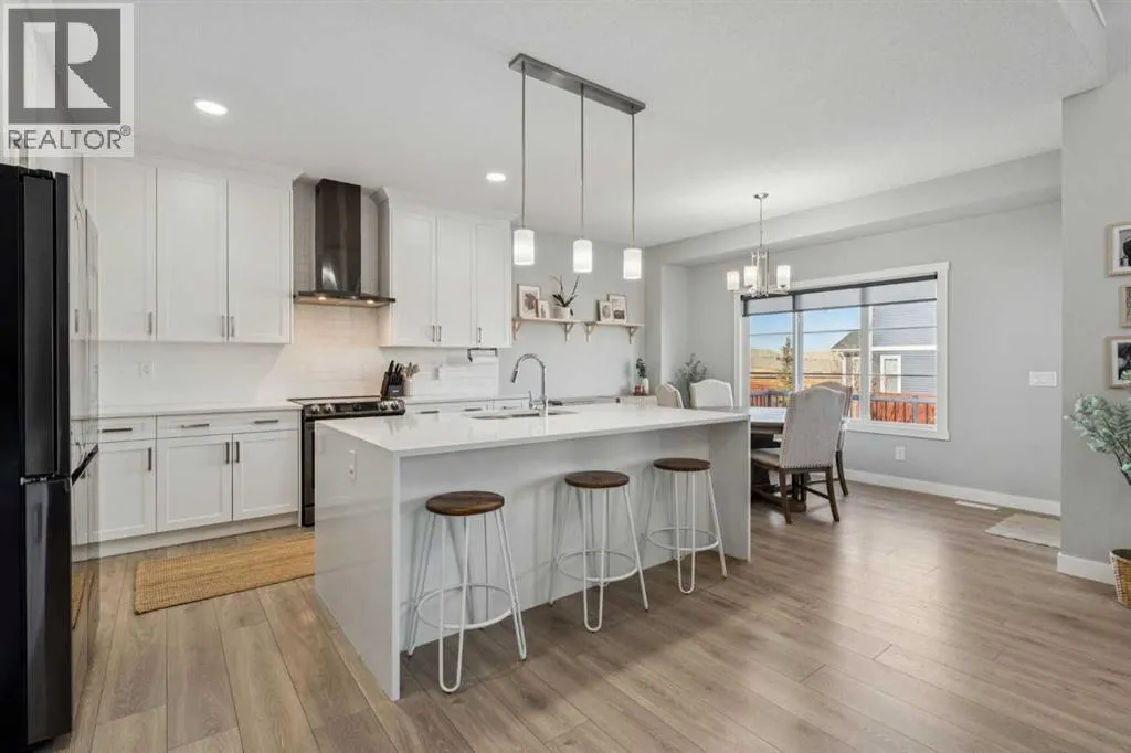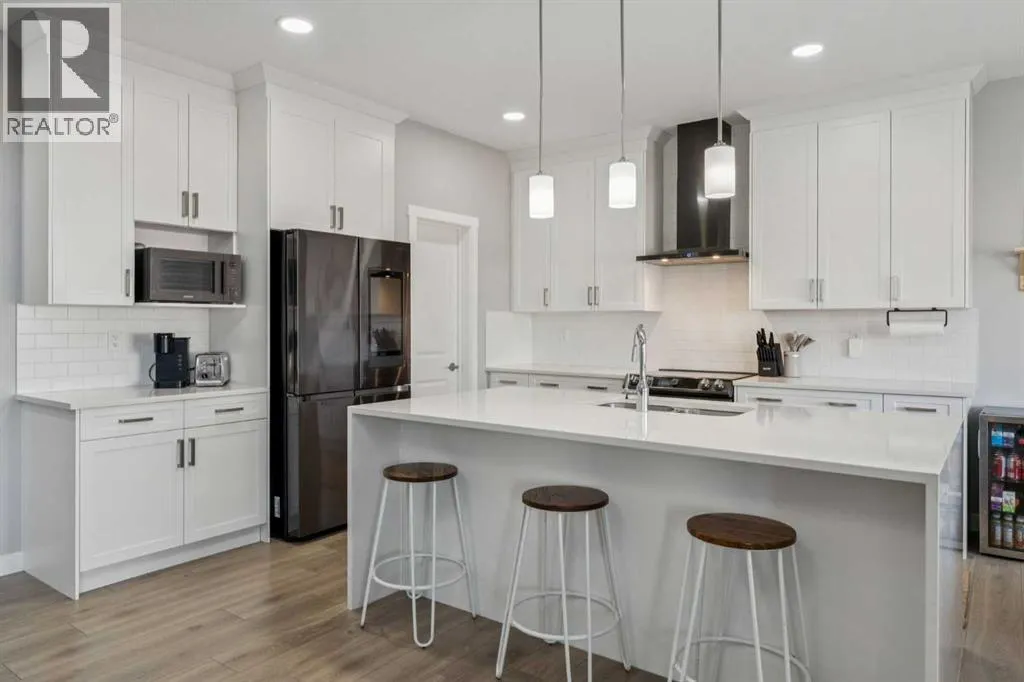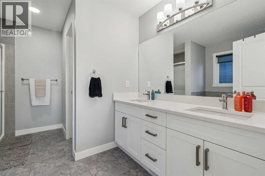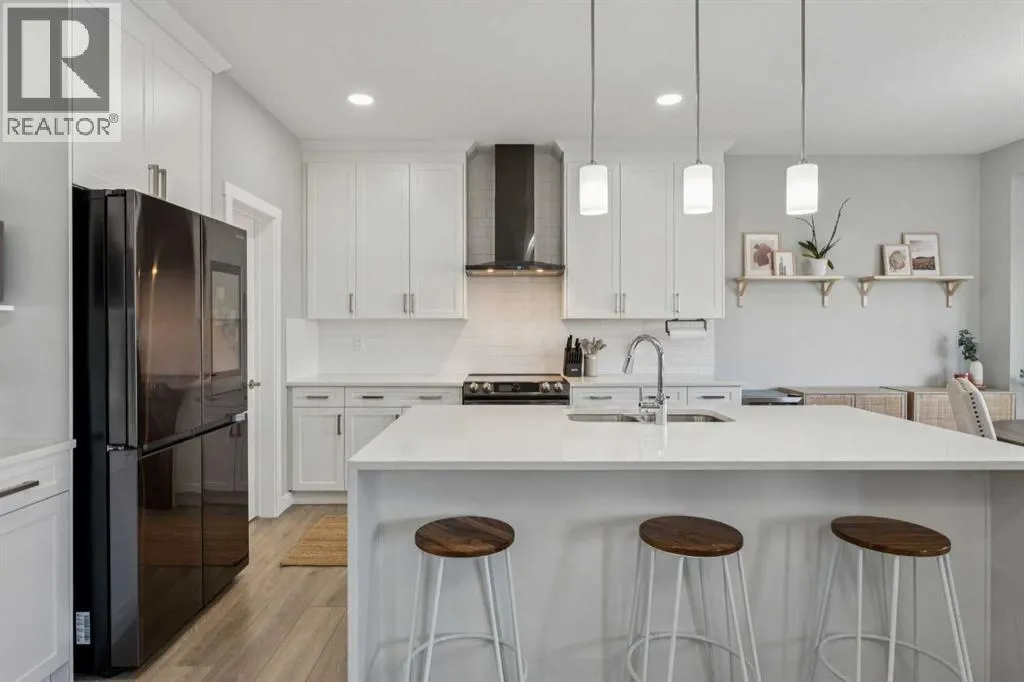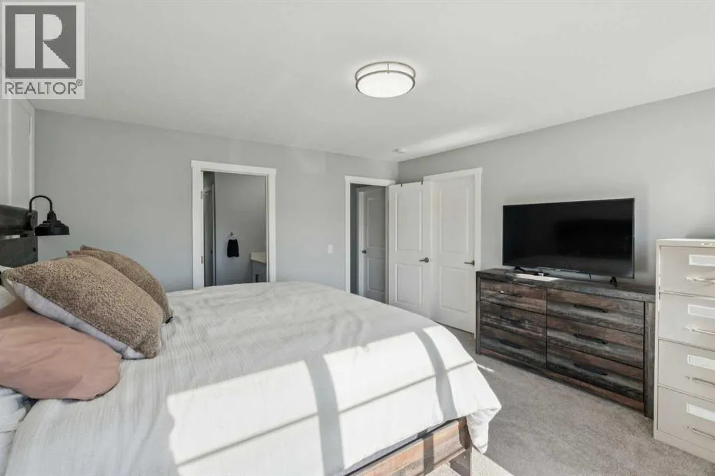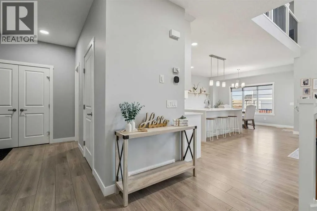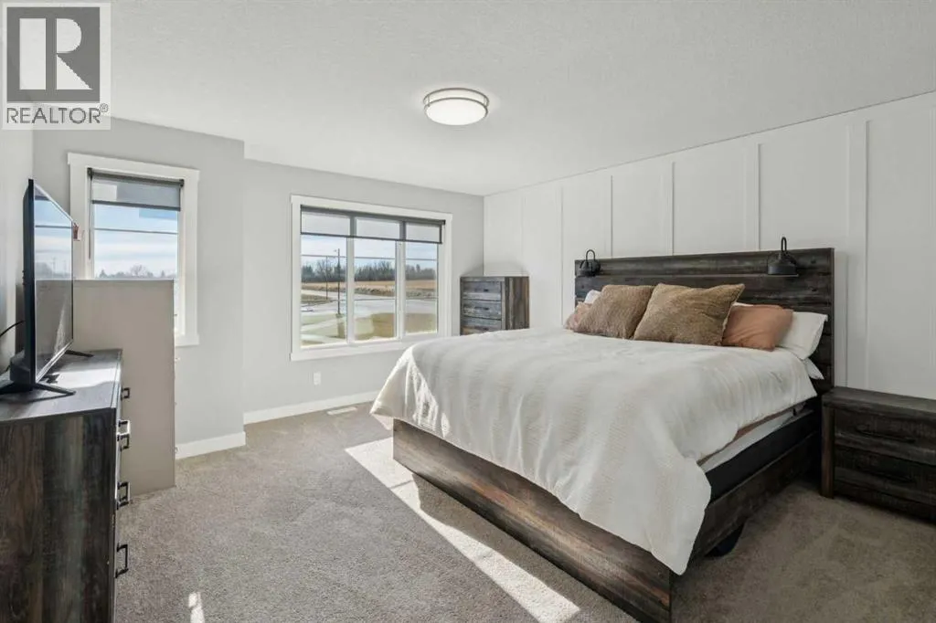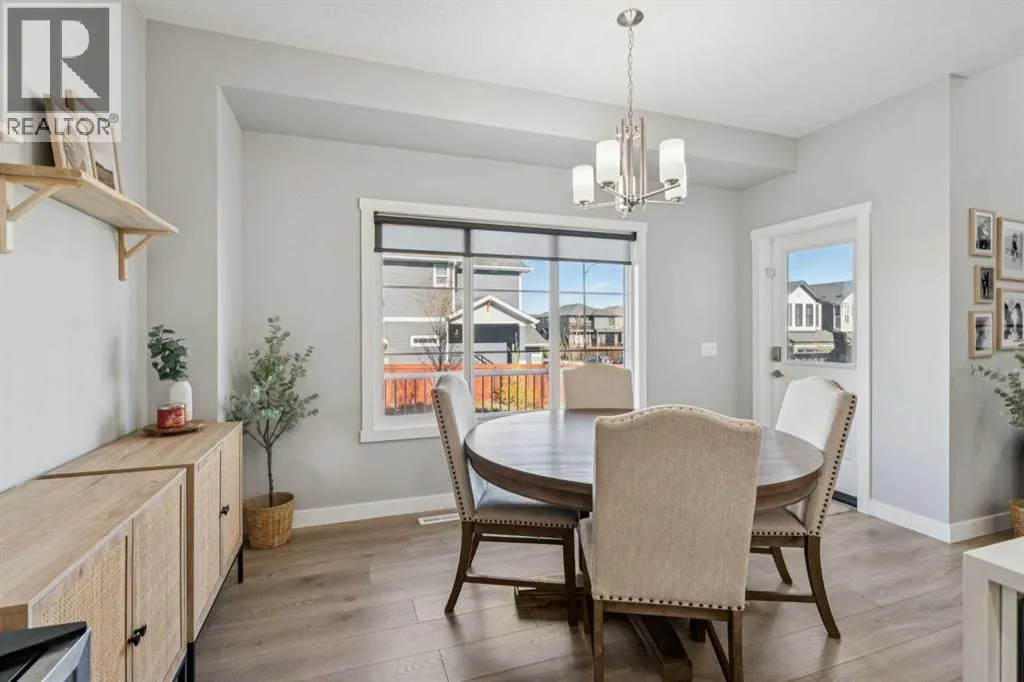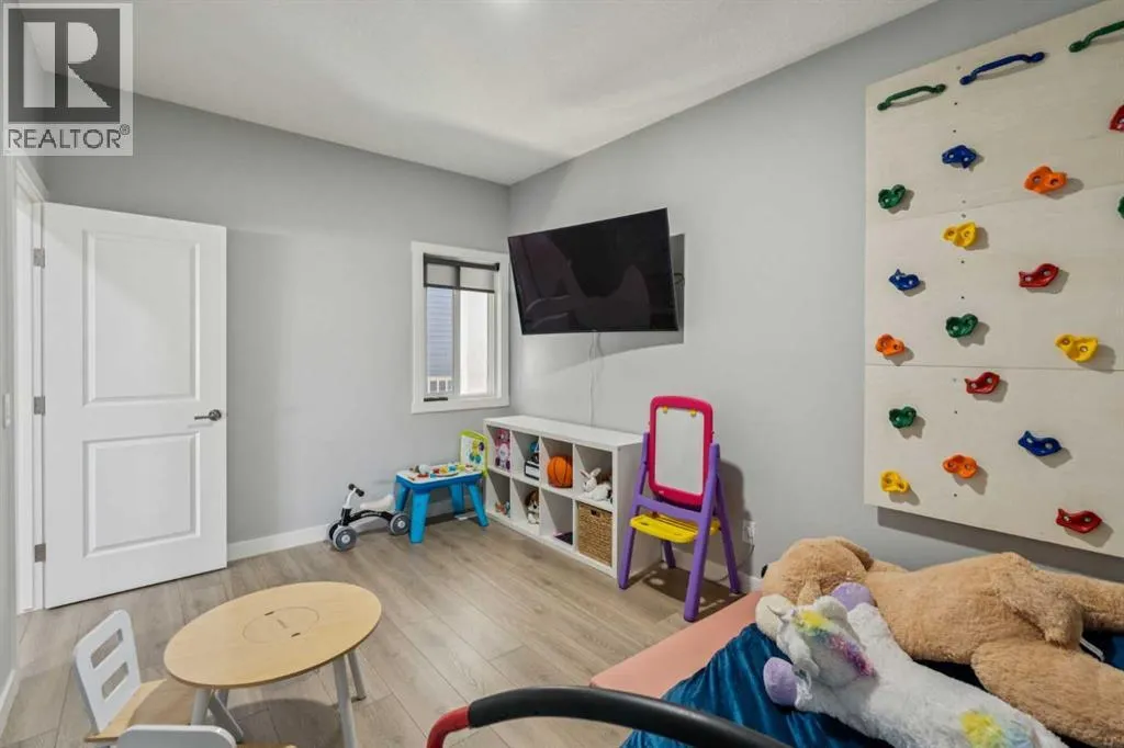 Welcome to this stunning two-storey home in the sought-after community of Cobblestone Creek, where modern elegance meets everyday functionality.Step inside to a bright, OPEN-CONCEPT main floor designed for both entertaining and comfortable family living. The chef-inspired kitchen is truly the heart of the home, showcasing WATERFALL QUARTZ COUNTERTOPS on the OVERSIZED island with BREAKFAST BAR seating, an induction range, sleek hood fan, BUILT-IN MICROWAVE, and a convenient WALK-THROUGH PANTRY that connects seamlessly to the mudroom. The mudroom features a BUILT-IN BENCH and provides direct access to the TRIPLE ATTACHED GARAGEâcomplete with an EV CHARGER, side entrance, and an organized bin storage system.The living room makes a dramatic statement with soaring open-to-below ceilings, an open railing, and a striking electric fireplace with mantle creating a warm and inviting focal point. A dedicated main floor office offers the perfect space for working from home or managing busy family life.Upstairs, youâll find a bright bonus room highlighted by elegant board and batten detailing. Two spacious childrenâs bedrooms echo the same custom design feature, adding charm and character. All bathrooms throughout the home are finished with QUARTZ COUNTERTOPS, offering a cohesive, upscale feel. The conveniently located upper-level laundry room adds everyday ease.The primary suite is a peaceful retreat, complete with a luxurious 5-piece ensuite featuring double sinks, a relaxing soaker tub, and a standalone shower. The WALK-IN closet is thoughtfully designed with TWO-TIERED SHELVING and a window for natural light an exceptional and rare upgrade.The UNFINISHED BASEMENT includes a bathroom rough-in, providing endless possibilities for future development.Step outside to enjoy the beautifully designed outdoor space, featuring a partially covered TWO-TIER COMPOSITE DECK ideal for year round entertaining. The backyard showcases TWO-TIERED LANDSCAPING with ARTIFICIAL TURF, a PAVED PATHWAY, and GREEN SPACE behind, offering added privacy and low-maintenance living.Blending designer finishes, smart upgrades, and modern comfort, this exceptional home is located in one of Airdrieâs fastest-growing communities. (id:27476)