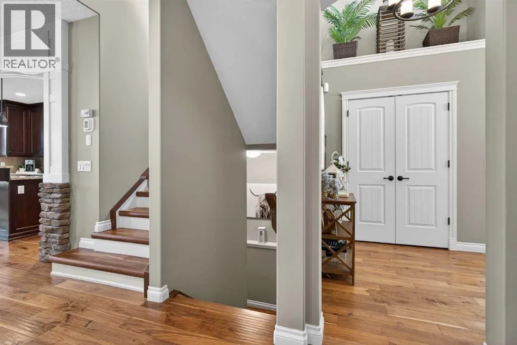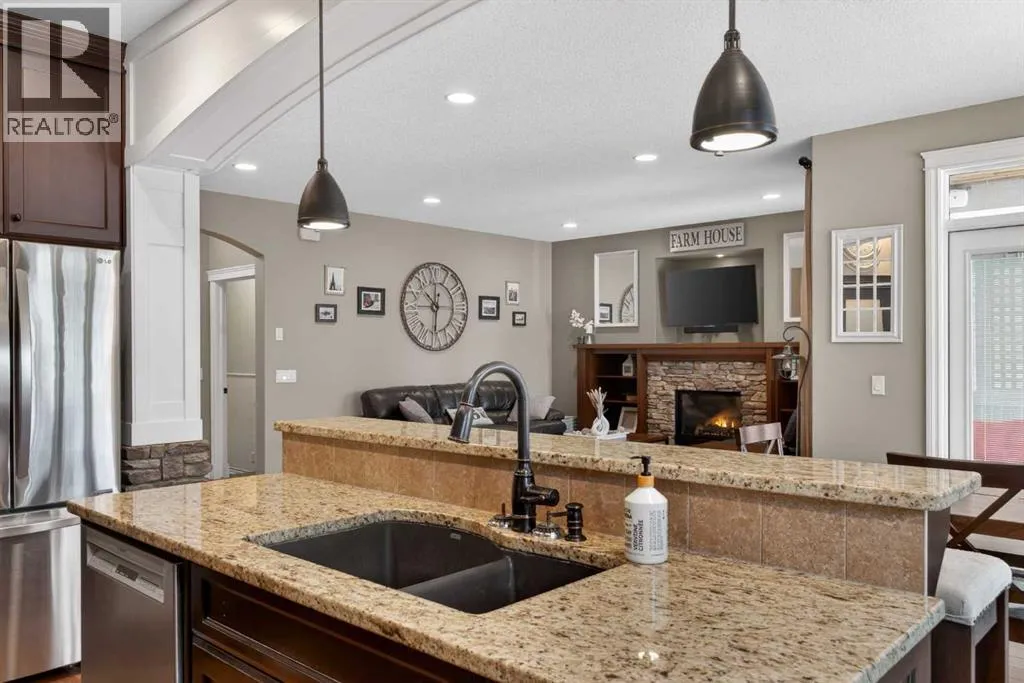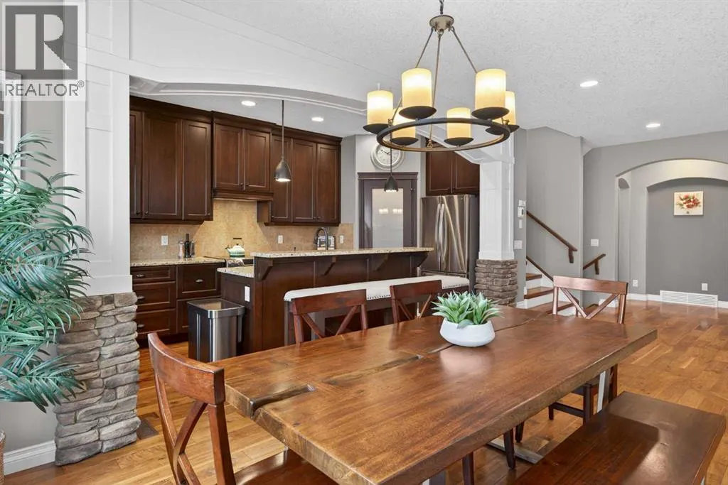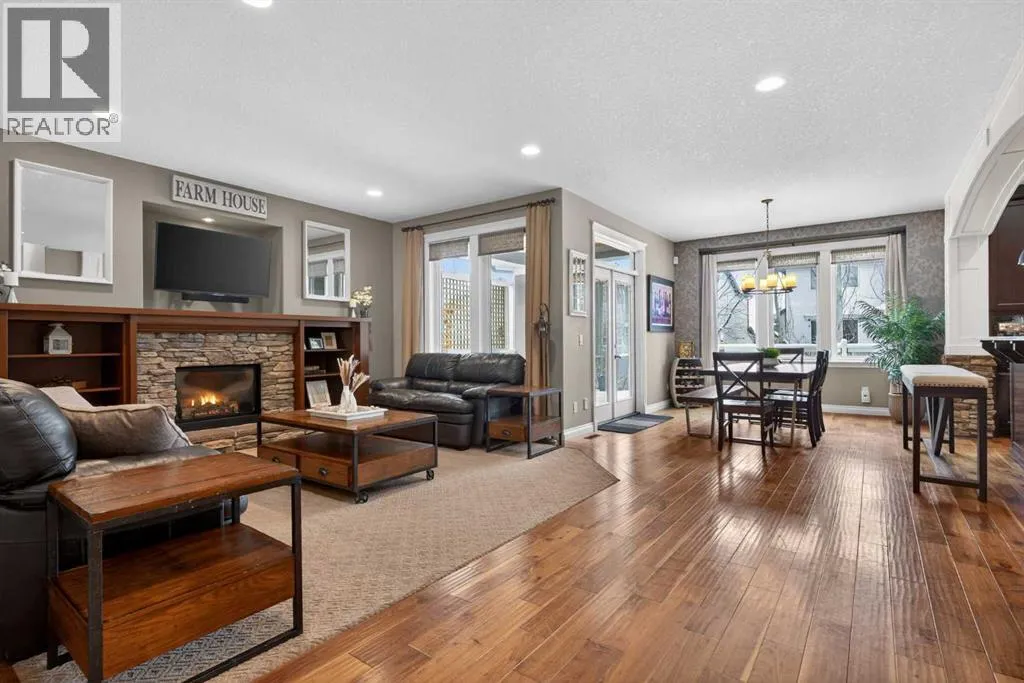 Everything youâve been looking for in your next home is here in this stunning executive two storey in Cooperâs Crossingâ¦4 BEDROOMS & CENTRAL AIR, highly sought-after HEATED 3 CAR GARAGE, 2 gas fireplaces & wonderful outdoor living space for the family to enjoy! This extensively upgraded custom home boasts WALNUT & ACACIA HARDWOOD FLOORS, fully-loaded chefâs kitchen with GRANITE COUNTERTOPS, 3.5 bathrooms & is WALKING DISTANCE to neighbourhood schools & leisurely stroll to Discovery Park. Complemented by expansive 9ft ceilings & wide-plank walnut flooring, you will truly be impressed by the elegant feel of the main floor with its inviting living room with STONE-FACING FIREPLACE accented by built-in cabinets, airy open concept dining room with picture windows looking out into the backyard & beautiful kitchen with full-height cabinets & island with raised bar, GRANITE COUNTERS, walk-in pantry & sleek stainless steel appliances including BOSCH DISHWASHER & Samsung stove/convection oven. Upstairs there are 3 fantastic bedrooms & 2 full bathrooms â highlighted by the ownersâ retreat with vaulted ceilings, big walk-in closet & luxurious soaker tub ensuite with double vanities & separate shower. One of the kidâs bedrooms also has built-in shelving & walk-in closet. Completing the 2nd floor is an OFFICE ALCOVE/LOFT with built-in desk & laundry with front-loading Samsung washer & dryer. The lower level â with 9ft ceilings, is beautifully finished with a 4th bedroom & full bath, PLAYROOM, loads of storage space & wonderful rec room with ANOTHER STONE-FACING FIREPLACE. The 3 CAR GARAGEâ¦tandem-styleâ¦is insulated, drywalled & HEATED, with built-in shelving & 1 bay currently set up as an awesome HOME GYM. For your outdoor pleasure, the backyard is fully fenced & landscaped, complete with STONE PATIO WITH FIREPIT, fruit trees (including sour cherry), play structure for the kids & partially covered 300+sqft DECK with gas BBQ line. Additional features include NEW FURNACE (2025) & CEN TRAL AIR (2022), main floor mudroom with built-in lockers & walk-in closet, grand foyer with soaring 18ft ceilings, upgraded lighting & fixtures, wrought-iron spindles & granite counters in all the bathrooms. THREE SCHOOLS ARE ALL WITHIN WALKING DISTANCEâ¦Cooperâs Crossing School, St. Veronica School & St. Martin de Porres High School. And only minutes away is COOPERâS TOWN PROMENADEâ¦featuring an open-air stage & firepit, office space, restaurants & a wide variety of shopping (anchored by Shopperâs Drug Mart & Save-On-Foods). Prime location in this highly-desirable Southwest Airdrie neighbourhood within easy reach of the Sierra Springs Shopping Centre & quick access to 40 Avenue & the QE2, Cross Iron Mills, Costco & Calgary. (id:27476)