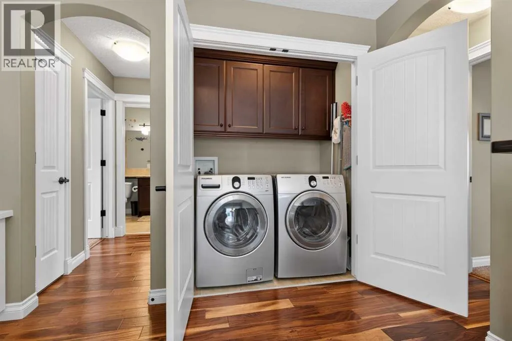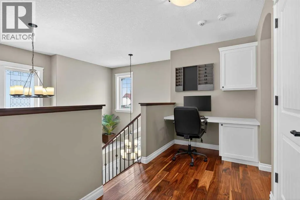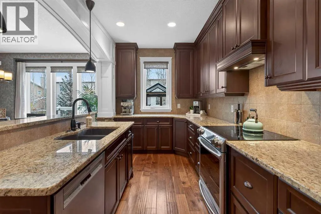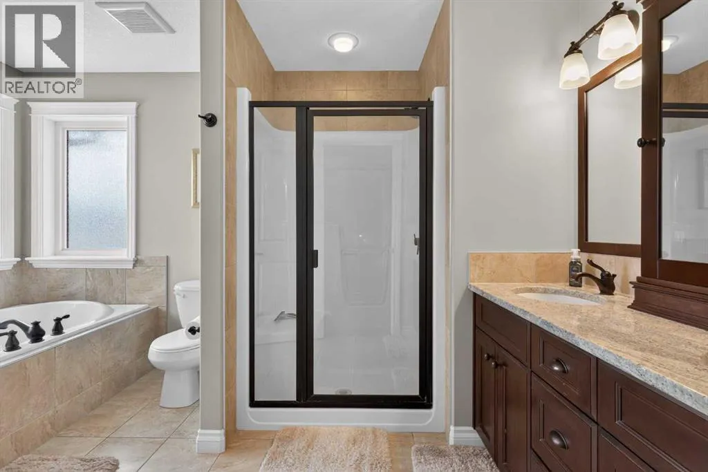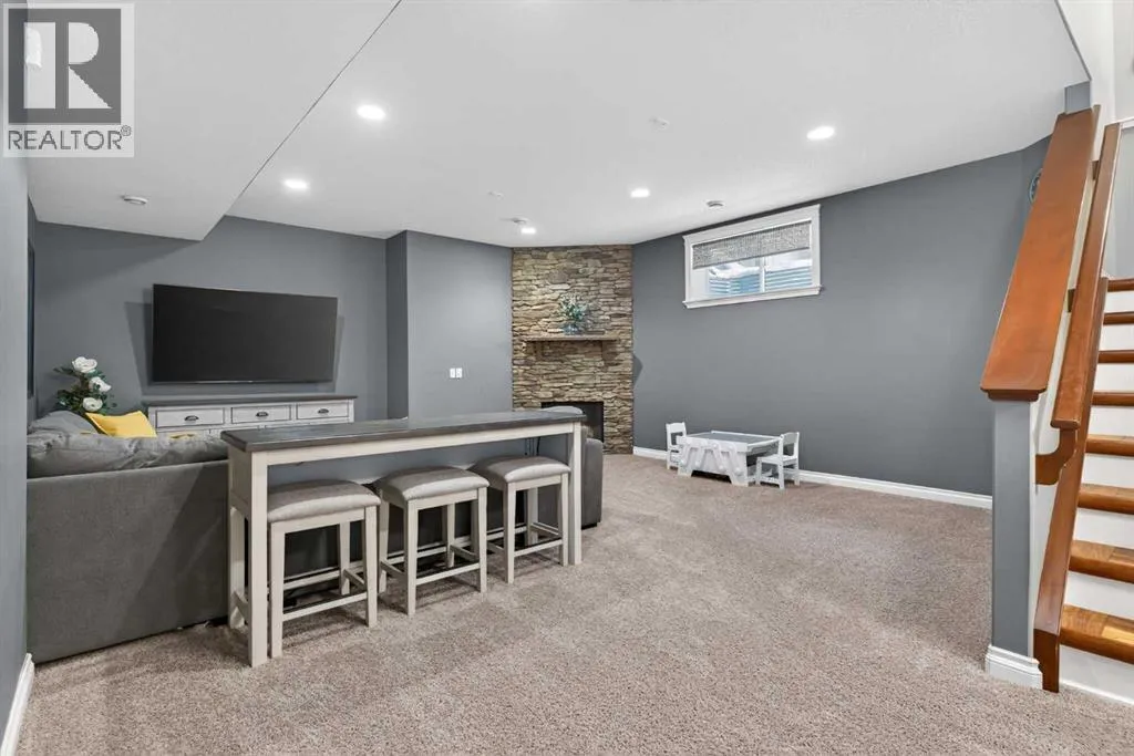 Everything youâve been looking for in your next home is here in this stunning executive two storey in Cooperâs Crossingâ¦4 BEDROOMS & CENTRAL AIR, highly sought-after HEATED 3 CAR GARAGE, 2 gas fireplaces & wonderful outdoor living space for the family to enjoy! This extensively upgraded custom home boasts WALNUT & ACACIA HARDWOOD FLOORS, fully-loaded chefâs kitchen with GRANITE COUNTERTOPS, 3.5 bathrooms & is WALKING DISTANCE to neighbourhood schools & leisurely stroll to Discovery Park. Complemented by expansive 9ft ceilings & wide-plank walnut flooring, you will truly be impressed by the elegant feel of the main floor with its inviting living room with STONE-FACING FIREPLACE accented by built-in cabinets, airy open concept dining room with picture windows looking out into the backyard & beautiful kitchen with full-height cabinets & island with raised bar, GRANITE COUNTERS, walk-in pantry & sleek stainless steel appliances including BOSCH DISHWASHER & Samsung stove/convection oven. Upstairs there are 3 fantastic bedrooms & 2 full bathrooms â highlighted by the ownersâ retreat with vaulted ceilings, big walk-in closet & luxurious soaker tub ensuite with double vanities & separate shower. One of the kidâs bedrooms also has built-in shelving & walk-in closet. Completing the 2nd floor is an OFFICE ALCOVE/LOFT with built-in desk & laundry with front-loading Samsung washer & dryer. The lower level â with 9ft ceilings, is beautifully finished with a 4th bedroom & full bath, PLAYROOM, loads of storage space & wonderful rec room with ANOTHER STONE-FACING FIREPLACE. The 3 CAR GARAGEâ¦tandem-styleâ¦is insulated, drywalled & HEATED, with built-in shelving & 1 bay currently set up as an awesome HOME GYM. For your outdoor pleasure, the backyard is fully fenced & landscaped, complete with STONE PATIO WITH FIREPIT, fruit trees (including sour cherry), play structure for the kids & partially covered 300+sqft DECK with gas BBQ line. Additional features include NEW FURNACE (2025) & CEN TRAL AIR (2022), main floor mudroom with built-in lockers & walk-in closet, grand foyer with soaring 18ft ceilings, upgraded lighting & fixtures, wrought-iron spindles & granite counters in all the bathrooms. THREE SCHOOLS ARE ALL WITHIN WALKING DISTANCEâ¦Cooperâs Crossing School, St. Veronica School & St. Martin de Porres High School. And only minutes away is COOPERâS TOWN PROMENADEâ¦featuring an open-air stage & firepit, office space, restaurants & a wide variety of shopping (anchored by Shopperâs Drug Mart & Save-On-Foods). Prime location in this highly-desirable Southwest Airdrie neighbourhood within easy reach of the Sierra Springs Shopping Centre & quick access to 40 Avenue & the QE2, Cross Iron Mills, Costco & Calgary. (id:27476)