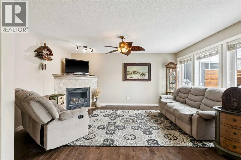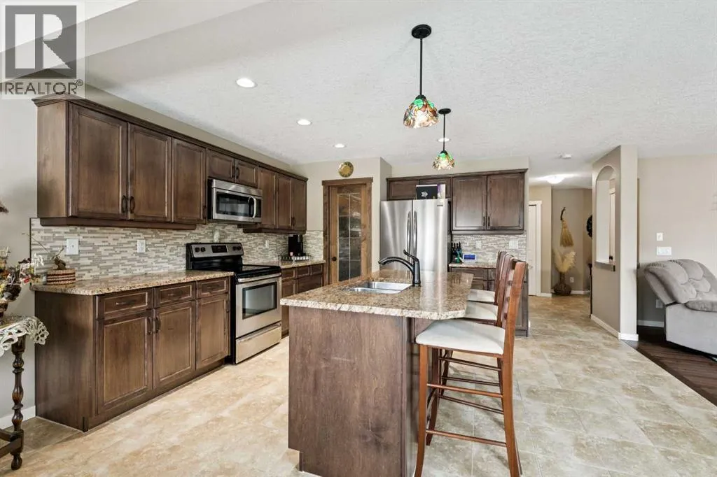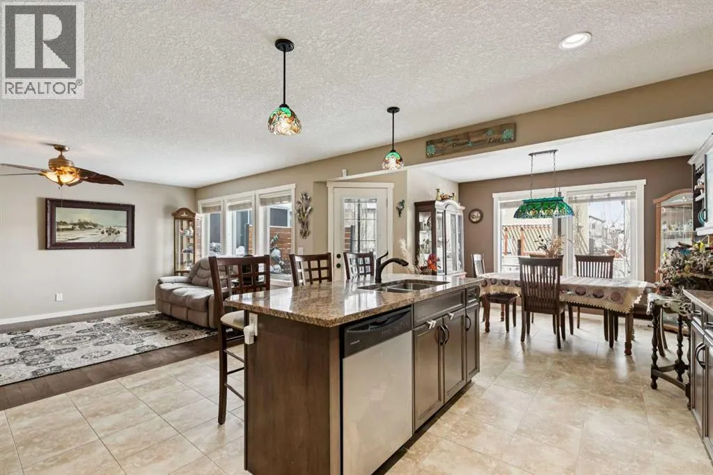 ***NEWLY PRICED***Meticulously maintained and lovingly cared for, this beautifully appointed two-storey home in the coveted Kingâs Heights is being offered by its original owner. Built in 2011 and purchased directly from the builder, this property presents a rare opportunityâhomes on this quiet street seldom come to market, with the last sale occurring in 2021. From the moment you step into the spacious foyer, youâll appreciate the thoughtful layout designed for everyday family living. The open-concept main level blends connection and functionality seamlessly. The kitchen is both practical and elegant, featuring custom cabinetry, granite countertops, stainless steel appliances, a large central island with breakfast bar, and a walk-through pantry that connects directly to the mudroom and garageâmaking busy mornings and grocery runs effortless. The mudroom is a true highlight for growing families. Designed as a functional transition space, it offers ample room for coats, backpacks, sports equipment, and bootsâkeeping daily life organized and the main living areas clutter-free. With direct access to the pantry and kitchen, the flow is both intentional and efficient, perfectly suited for busy households. A separate dining area offers generous space for family gatherings and celebrations, while the inviting living room with a gas fireplace creates the perfect setting for cozy evenings together. Step outside to what can only be described as an urban sanctuary. The beautifully curated backyard is a gardenerâs dreamâprivate, peaceful, and thoughtfully designed. Whether enjoying long summer evenings on the patio, gathering around the firepit with friends, or watching children play, this outdoor space is ready to create lasting memories. Upstairs, the spacious primary retreat comfortably accommodates a king-sized bed plus a seating area. The spa-inspired 5-piece ensuite features a soaker tub, standalone shower, dual vanities, and a generous walk-in closet. Two additional larg e bedrooms and another full 5-piece bathroom provide ideal space for growing families. The vaulted bonus room, with its dramatic wall of windows, is flooded with natural light and offers the perfect space for movie nights, homework sessions, or relaxed family time. Oversized windows throughout the home, all complete with custom blinds, invite abundant natural light into every room. A convenient 2-piece powder room completes the main level. The unfinished basement offers a blank canvasâan expansive space waiting for your creativity to design additional living areas. Located just steps from ponds, walking paths, parks, schools, and shopping, this home combines space, thoughtful upgrades, and lifestyle in one of Airdrieâs most sought-after family communities. A rare opportunity to put down roots in Kingâs Heightsâmove-in ready and built to grow with you for years to come. This home will not last long. Call your favourite realtor and book a private showing today! (id:27476)