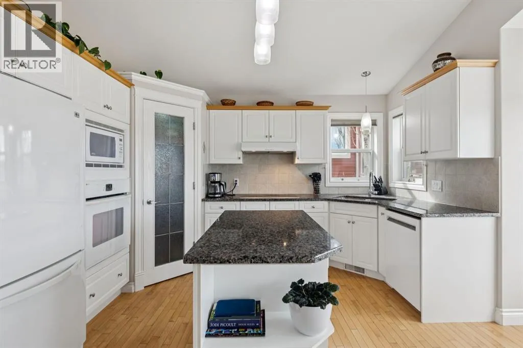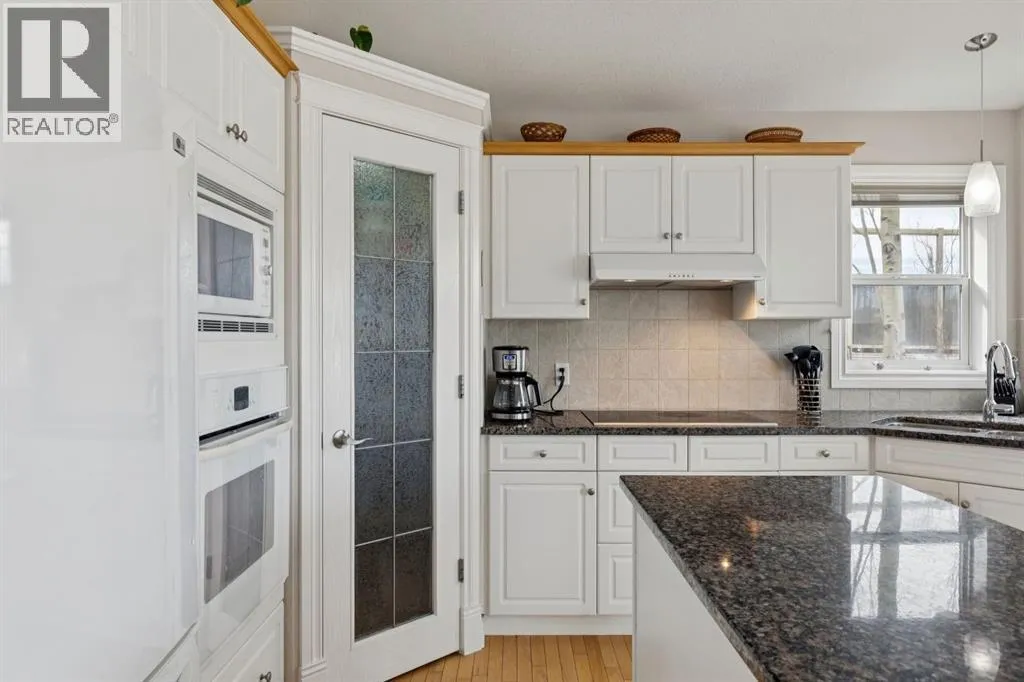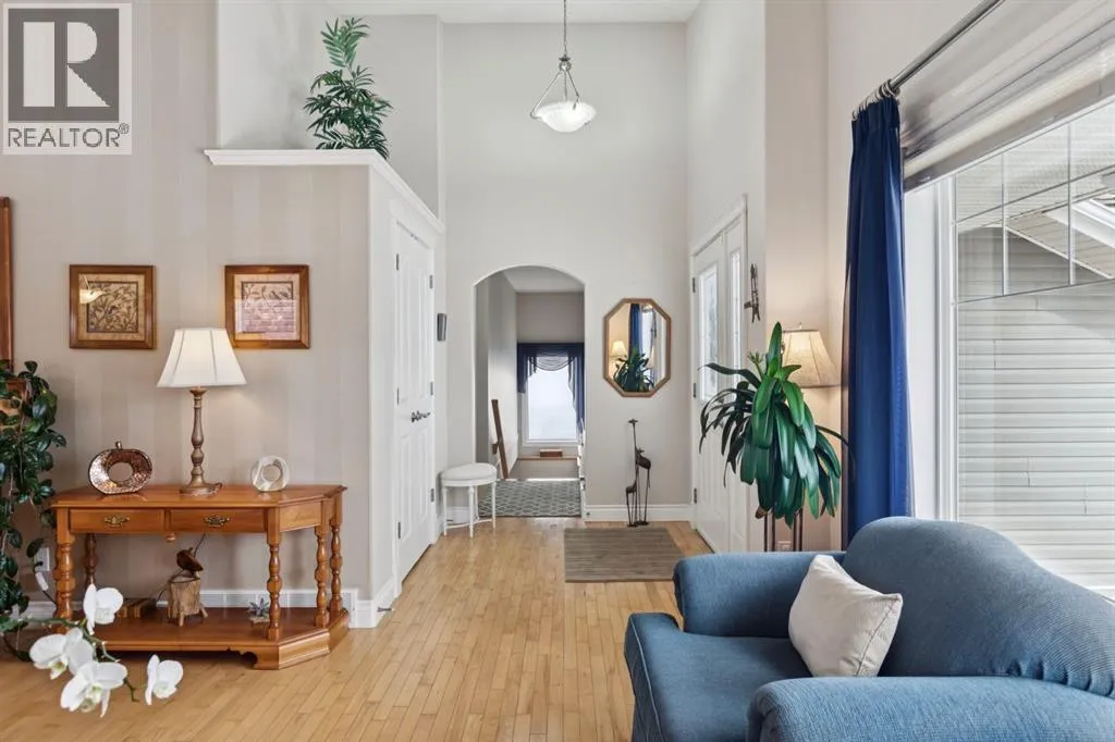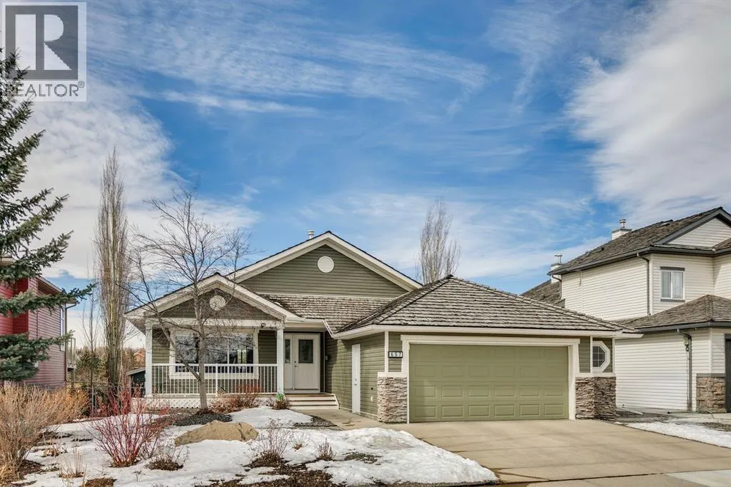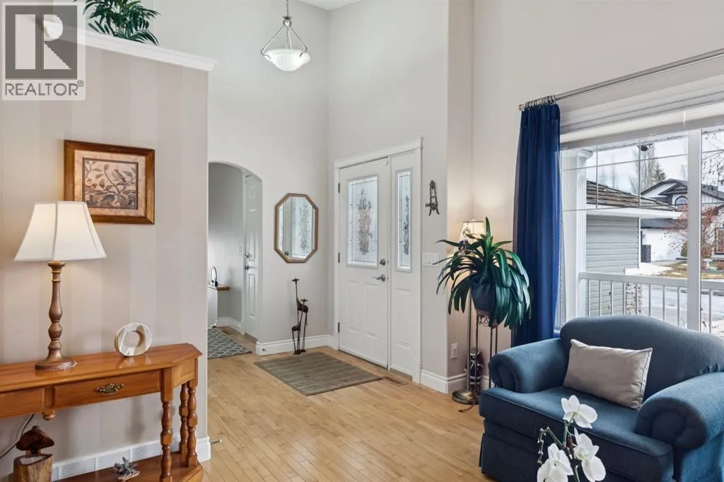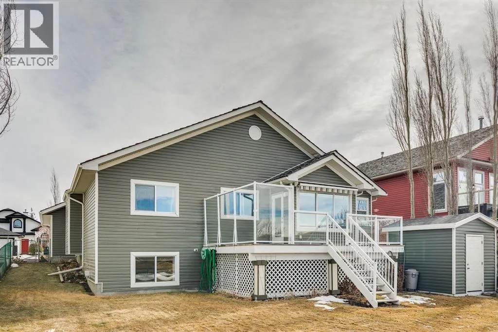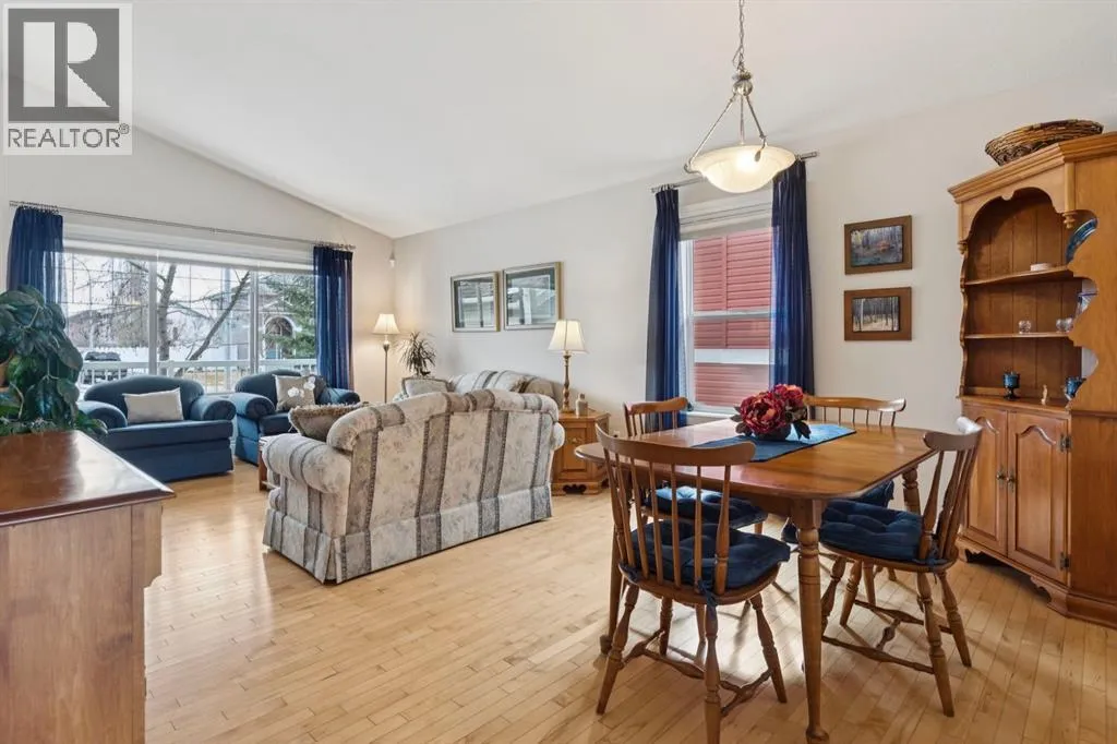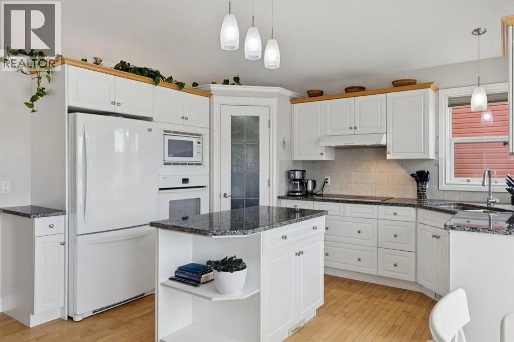 Welcome to a rare opportunity in the highly sought-after Woodside communityâthis original-owner bungalow, custom built by McKee Homes, offers an exceptional combination of quality, comfort, and an unbeatable location backing directly onto the picturesque Woodside Golf Course. Perfectly positioned on a quiet, low-traffic cul-de-sac, this home captures stunning west-facing views over two tranquil ponds and rolling greens, with no neighbours behind. Enjoy the peaceful setting year-round, with only seasonal golf activity for approximately six months of the year. Whether you're relaxing or entertaining, the elevated balcony deck is a standout featureâcomplete with a gas line for your BBQ, clear glass wind panels to preserve the views, and a power awning with remote for added comfort. Inside, the home boasts a bright and open layout enhanced by vaulted ceilings and an abundance of windows that flood the space with natural light. The kitchen is thoughtfully designed with granite countertops, built-in appliances, a central island with vacuum kick plate, and a cozy breakfast nookâall overlooking the golf course. Rich hardwood flooring flows throughout the main level, adding warmth and elegance. The spacious primary retreat offers serene views, a walk-in closet, and a full en suite. A second bedroom on the main level provides flexibility as a guest room, den, or home officeâalso enjoying those incredible west views. The main floor is completed by a large and functional laundry/mudroom with pocket doors, allowing you to keep everyday life neatly tucked away. The professionally finished basement features 9â ceilings, upgraded carpet, and an inviting gas fireplace with a built-in entertainment unit. Two additional bedrooms with sunshine windows, ample storage, and a full bathroom make this level perfect for family or guests. Additional highlights include triple pane windows on the west-facing side for enhanced efficiency, double pane windows elsewhere, central vacuum system , a full blinds package, and a builder-finished basement. The oversized attached garage (25â5â x 23â) easily accommodates a full-sized truck, while the backyard offers plenty of space along with a storage shed. The front yard showcases a beautifully designed rock garden filled with perennials that create stunning seasonal curb appeal, complemented by a welcoming front deckâperfect for enjoying your morning coffee. Homes of this caliber, in locations like this, rarely come to market. With pride of ownership evident throughout, a highly functional layout, and breathtaking views, this is your chance to secure a truly special property in one of Airdrieâs most desirable neighborhoods. (id:27476)