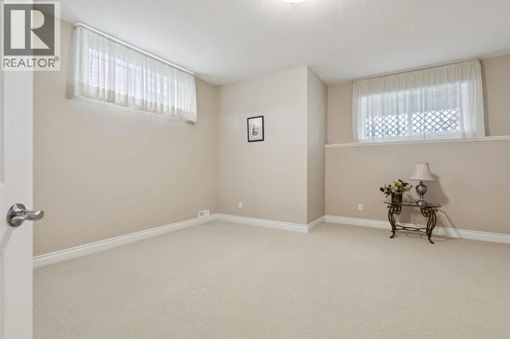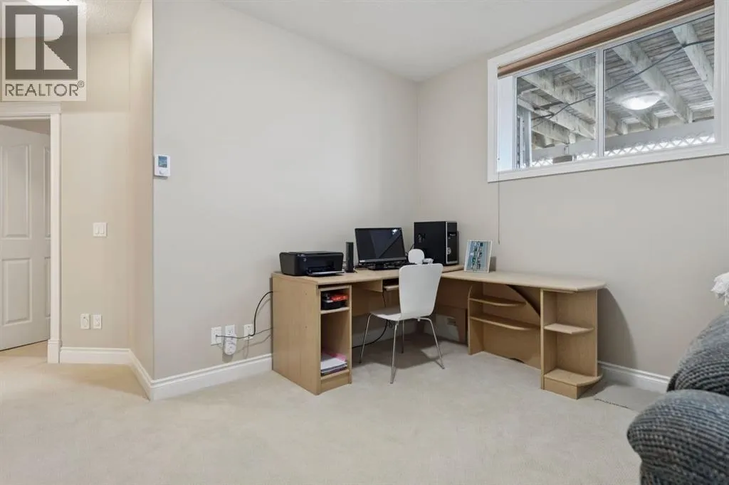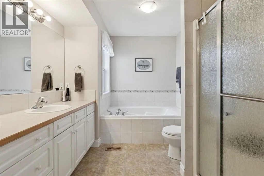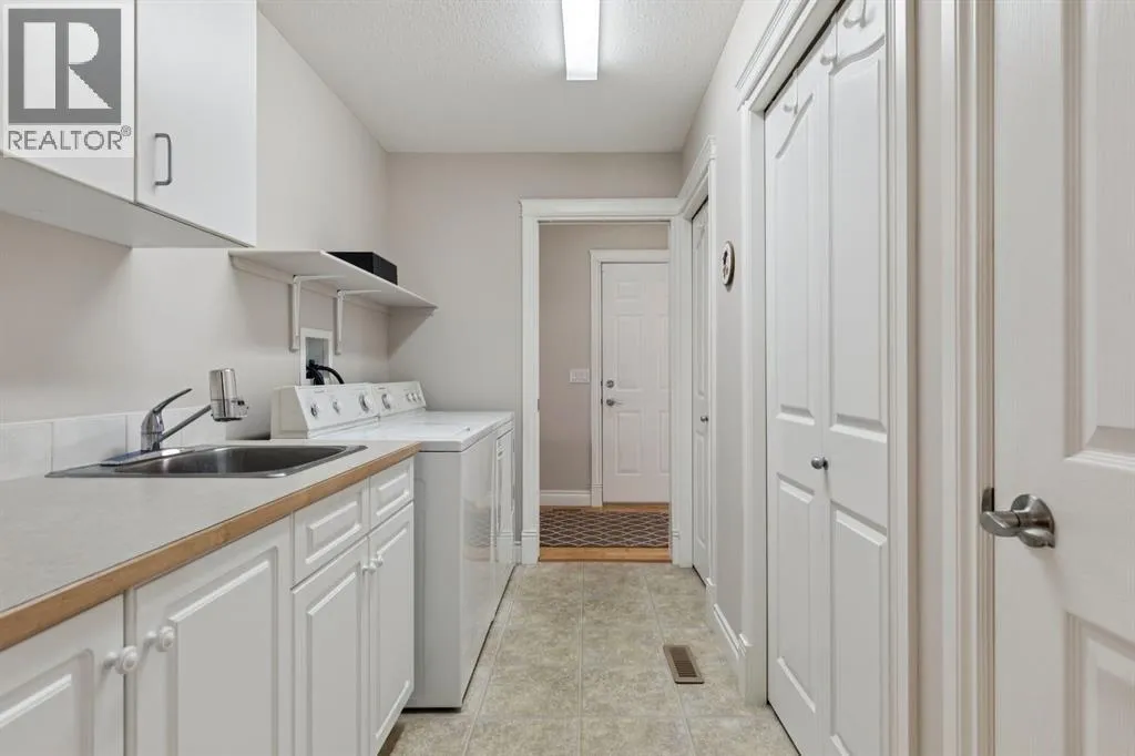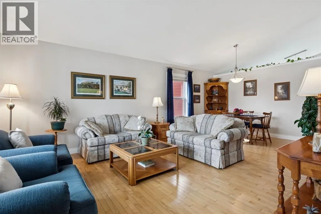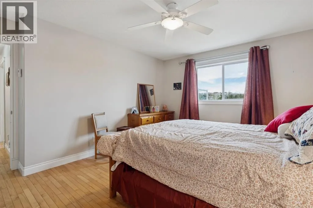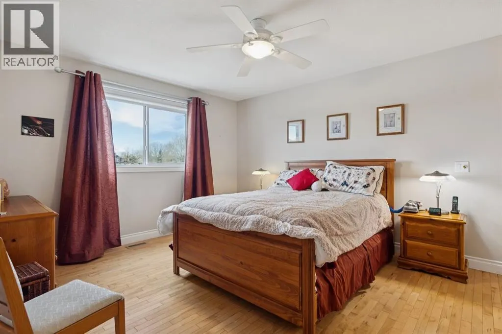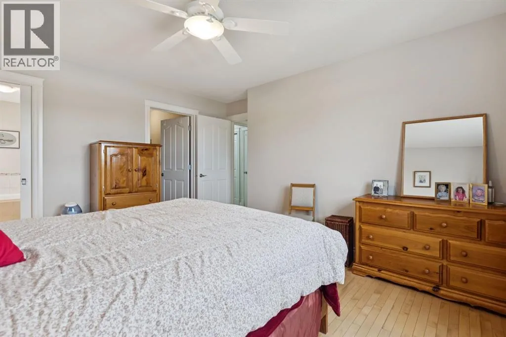 Welcome to a rare opportunity in the highly sought-after Woodside communityâthis original-owner bungalow, custom built by McKee Homes, offers an exceptional combination of quality, comfort, and an unbeatable location backing directly onto the picturesque Woodside Golf Course. Perfectly positioned on a quiet, low-traffic cul-de-sac, this home captures stunning west-facing views over two tranquil ponds and rolling greens, with no neighbours behind. Enjoy the peaceful setting year-round, with only seasonal golf activity for approximately six months of the year. Whether you're relaxing or entertaining, the elevated balcony deck is a standout featureâcomplete with a gas line for your BBQ, clear glass wind panels to preserve the views, and a power awning with remote for added comfort. Inside, the home boasts a bright and open layout enhanced by vaulted ceilings and an abundance of windows that flood the space with natural light. The kitchen is thoughtfully designed with granite countertops, built-in appliances, a central island with vacuum kick plate, and a cozy breakfast nookâall overlooking the golf course. Rich hardwood flooring flows throughout the main level, adding warmth and elegance. The spacious primary retreat offers serene views, a walk-in closet, and a full en suite. A second bedroom on the main level provides flexibility as a guest room, den, or home officeâalso enjoying those incredible west views. The main floor is completed by a large and functional laundry/mudroom with pocket doors, allowing you to keep everyday life neatly tucked away. The professionally finished basement features 9â ceilings, upgraded carpet, and an inviting gas fireplace with a built-in entertainment unit. Two additional bedrooms with sunshine windows, ample storage, and a full bathroom make this level perfect for family or guests. Additional highlights include triple pane windows on the west-facing side for enhanced efficiency, double pane windows elsewhere, central vacuum system , a full blinds package, and a builder-finished basement. The oversized attached garage (25â5â x 23â) easily accommodates a full-sized truck, while the backyard offers plenty of space along with a storage shed. The front yard showcases a beautifully designed rock garden filled with perennials that create stunning seasonal curb appeal, complemented by a welcoming front deckâperfect for enjoying your morning coffee. Homes of this caliber, in locations like this, rarely come to market. With pride of ownership evident throughout, a highly functional layout, and breathtaking views, this is your chance to secure a truly special property in one of Airdrieâs most desirable neighborhoods. (id:27476)