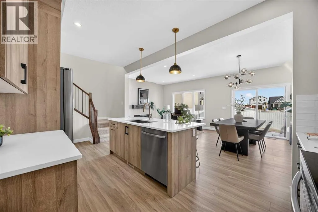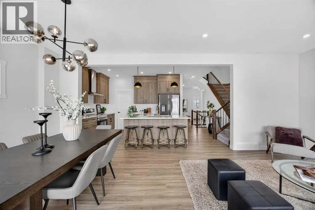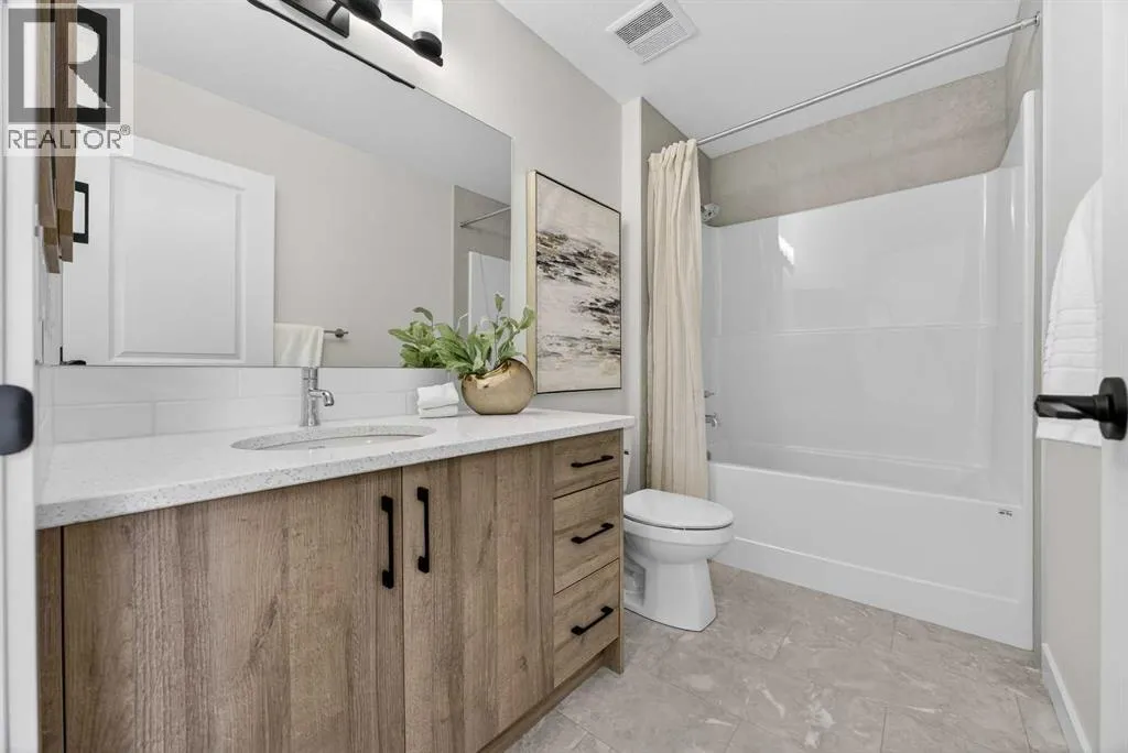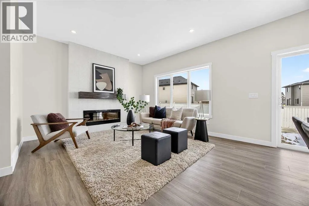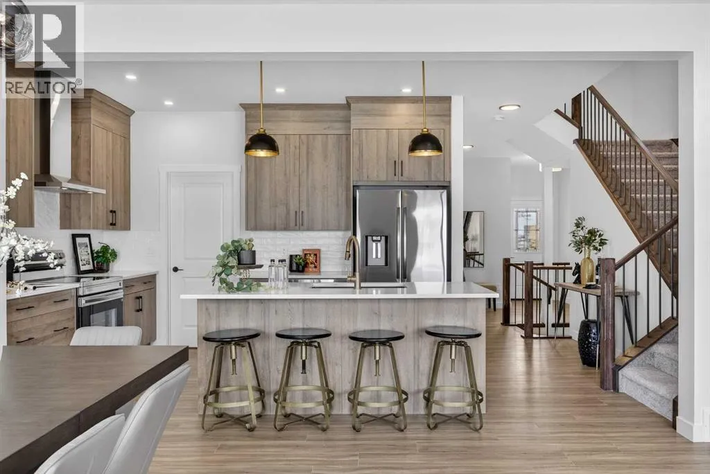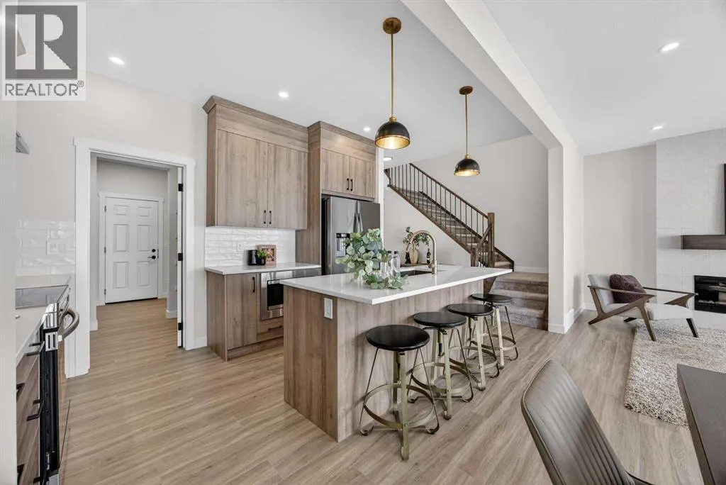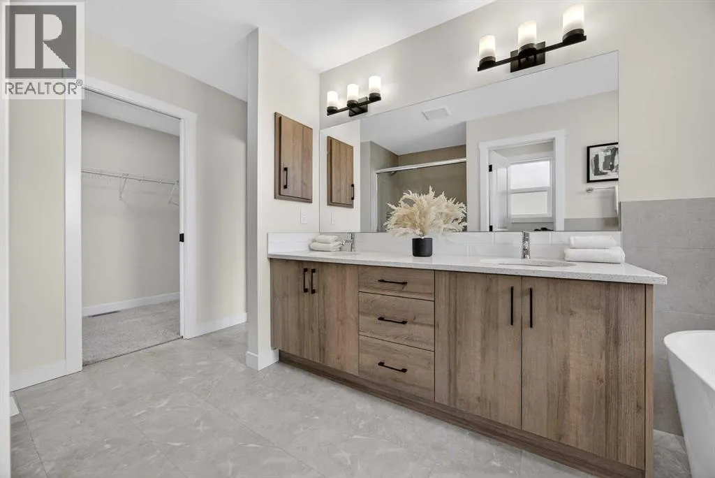 Welcome to the âLeoâ a beautifully designed 3-bedroom, 2.5 bathroom brand new home offering over 2000 sq ft of finished living space. Step inside to a bright, inviting main floor featuring luxury vinyl plank flooring that spans the entire level and is complemented by 9-foot ceilings. The chef's kitchen showcases sleek cabinetry with stylish black hardware, paired with a crisp white tile backsplash, elegant quartz countertops, and stainless steel appliances. The living room features a stunning floor-to-ceiling tiled feature wall, creating a beautiful focal point. Adjacent to the living space, the dining area is ideal for entertaining and flows seamlessly to the outdoors. Completing the main floor is a practical mudroom just off the double-attached garage, a spacious pantry, and a convenient powder room. Upstairs, you'll find a central bonus room that provides separation between the primary suite and the secondary bedrooms, offering both comfort and privacy. The primary retreat is generously sized and features a spa-inspired ensuite with dual sinks, a relaxing soaker tub, and an oversized shower, as well as a truly impressive walk-in closet. A full bathroom complements two additional well-sized bedrooms, while the upstairs laundry room adds everyday convenience. The unfinished basement, with 9-foot ceilings, offers a blank canvas for your future development ideas. Bayview is a beautiful community with parks, benches and pathways that meander throughout the community and along the canals. Kids and adults alike will enjoy the outdoor basketball nets, gym, amphitheatre and tennis courts that will convert into a skating rink in the winter. Come and see all the amenities that Bayview has to offer for yourself! *RMS has been applied to construction drawings provided by the builder. Taxes to be assessed. Open House Sat/Sun, March 21/22 1-3 pm. (id:27476)