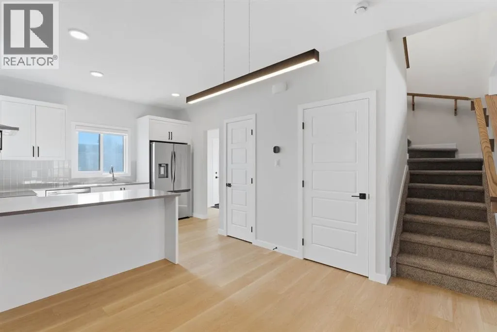 Nestled within one of Airdrie's most coveted family-friendly communities, this stunning 3-bedroom townhome delivers an effortless blend of modern elegance, thoughtful design, and everyday practicality.Step outside your front door and into a private yard that flows seamlessly onto a tranquil green space â a rare and cherished feature ideal for leisurely morning strolls, active afternoons with the kids, or simply basking in the open air. Inside, the bright and airy open-concept main floor sets the tone for how you'll live. A generous living area anchors the space, complemented by a defined dining area perfect for gathering around the table, a discreet half bath, and the added ease of main-floor laundry â because the little conveniences matter. Upstairs, three well-appointed bedrooms offer restful retreats for the whole family. The primary suite is a true sanctuary, complete with a private 3-piece ensuite. A full 3-piece main bathroom serves the additional bedrooms, while a versatile bonus room â equally at home as a dedicated office, media lounge, or children's playroom â adapts effortlessly to your lifestyle needs. Outside, your private backyard deck invites long summer evenings and spontaneous weekend barbecues. A double detached garage with rear lane access delivers the storage and functionality modern families demand, while a convenient side entrance offers added flexibility, and the striking black iron front fence adds a polished, distinctive curb appeal that sets this home apart from the moment you arrive. This is more than a townhome â it's the backdrop to your next chapter. (id:27476)