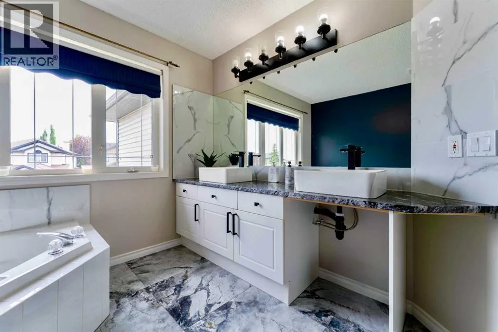 Welcome to 276 Fairways Bay NW, Airdrie!! This recently renovated 2-storey backs onto the GOLF COURSE, offering stunning views and a peaceful lifestyle, featuring a bright open layout with a CHEFâS KITCHEN, MAIN FLOOR OFFICE, and spacious living areas. Upstairs features a BONUS ROOM and three bedrooms, including a luxurious primary suite. The NEWLY FINISHED BASEMENT adds a Big Living Area, a bedroom, a BAR, and a full bath. Enjoy an insulated ATTACHED DOUBLE GARAGE, School at Walking Distance, parks, and shopping â all in the sought-after Fairways community! (id:27476)
