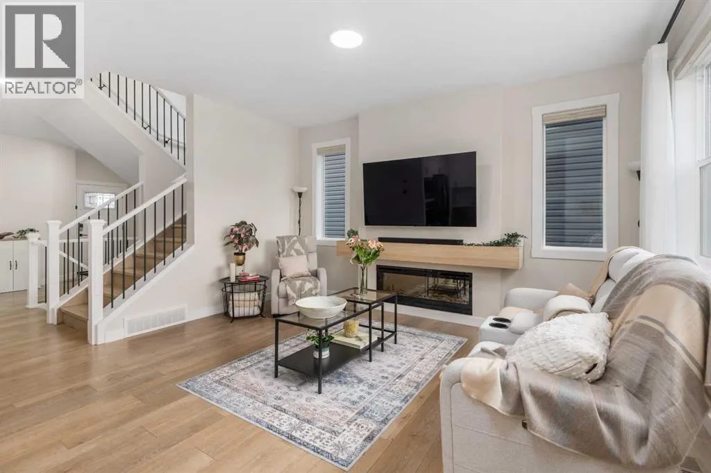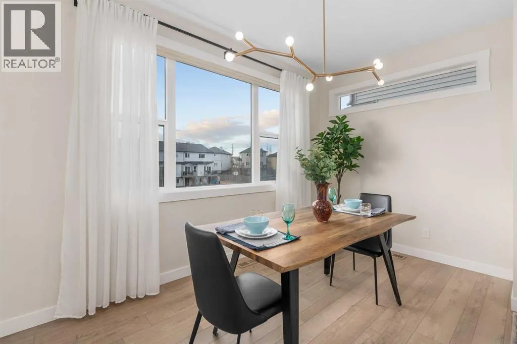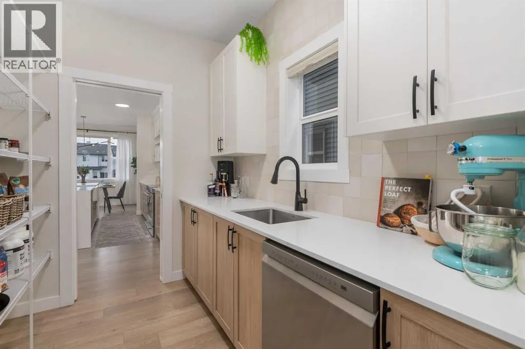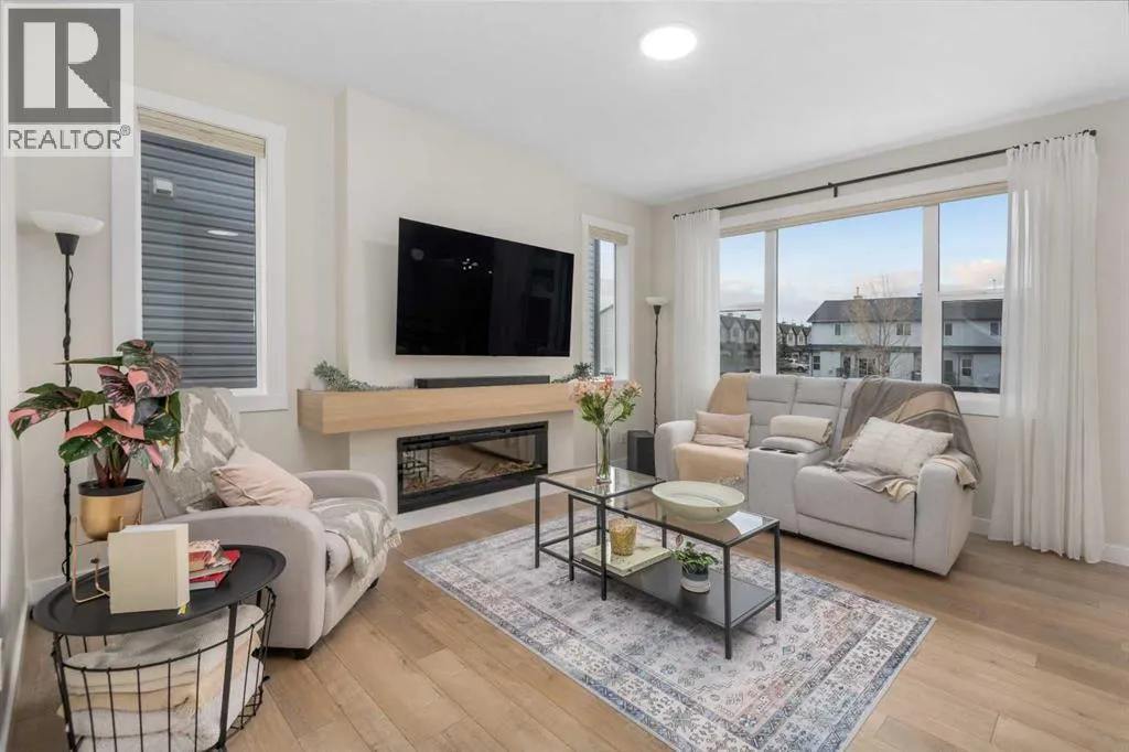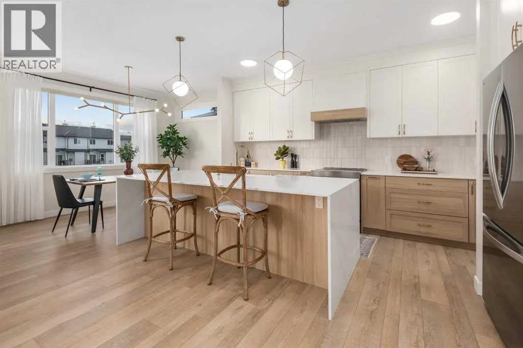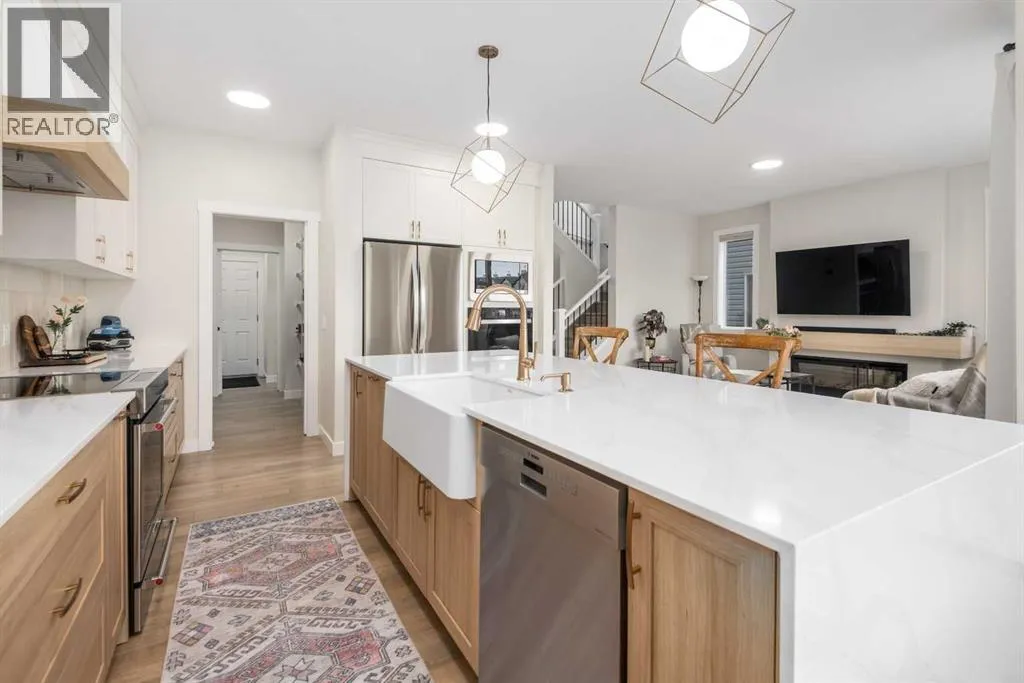 Welcome to this beautifully built & upgraded 4 bedroom, walkout home in the sought-after community of Midtown in Airdrie. Ideally located just steps from 2 parks, Midtown Lake, scenic pathways & greenspace, this home offers a rare sense of space with a tranquil creek, pathway & greenspace directly behind it. Enjoy quick access to Sobeys, Co-op, nearby shopping & everyday amenities, along with convenient routes to Nose Creek Park, the QE2 & the rest of Airdrie & Calgary. Built in 2024 & barely lived in, this home offers the feel of brand new construction without the wait, with the added benefit of completed landscaping, fencing & window coverings, along with upgraded paint throughout & central air conditioning for year-round comfort. The thoughtfully designed layout features 3 bedrooms up, a spacious bonus room & a fully developed walkout basement with an additional bedroom. The main floor is both elegant & functional with a stunning kitchen showcasing full height cabinetry, built-in wall oven & microwave, induction stove, sleek finishes & a striking waterfall quartz island that anchors the space. The kitchen overlooks the dining area & family room where an electric fireplace with mantle creates a warm focal point, while the dining area opens onto a back deck complete with a gas line & water tap, perfect for outdoor living. A standout feature is the incredible pantry complete with a second dishwasher & sink, offering exceptional prep space, storage & convenience. Added comfort & efficiency come from honeycomb blinds, including 12 automated blinds that enhance both privacy & ease of living. Upstairs the spacious primary retreat overlooks the greenspace & offers a large walk-in closet plus a spa-inspired ensuite with custom wall tile, gorgeous shower feature, double sinks & a relaxing soaker tub. 2 additional well-sized bedrooms with walk in closets, a bright bonus room & an exceptional laundry room with sink, cabinetry & linen storage complete the upper level. The ful ly finished walkout basement features 9 ft ceilings & adds even more living space with a large recreation area, bedroom, full 3-piece bathroom & additional storage in the mechanical room. The attached 20x22 garage offers tall ceilings that may accommodate a lift, providing excellent potential for car enthusiasts or additional storage. Step outside to the sunny south facing yard where the natural creek setting, pathway & greenspace create a peaceful backdrop that is rarely available. This is a home that blends thoughtful upgrades, beautiful design & an unbeatable location into one truly special property. (id:27476)