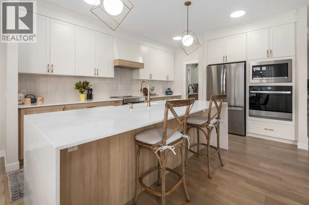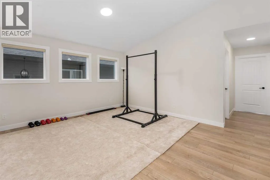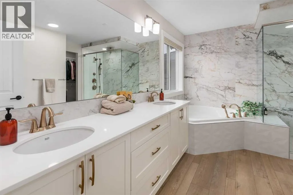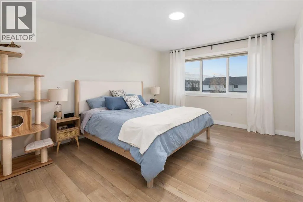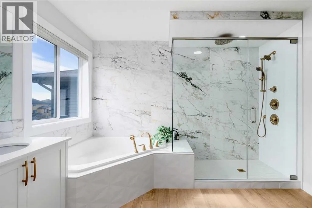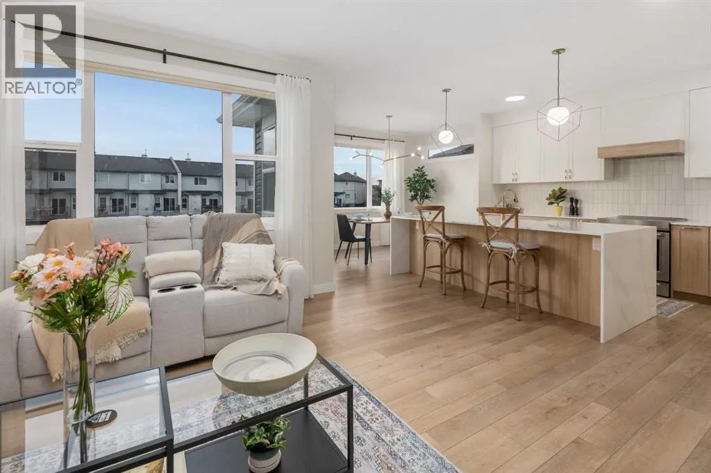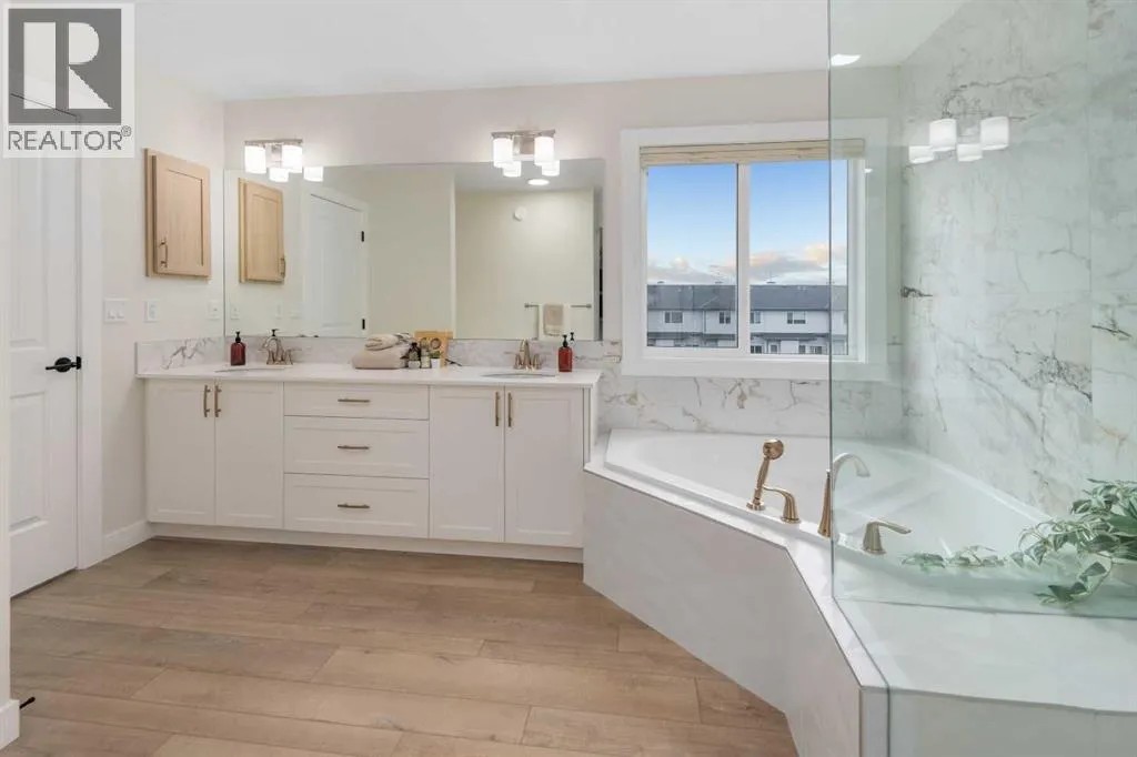 Welcome to this beautifully built & upgraded 4 bedroom, walkout home in the sought-after community of Midtown in Airdrie. Ideally located just steps from 2 parks, Midtown Lake, scenic pathways & greenspace, this home offers a rare sense of space with a tranquil creek, pathway & greenspace directly behind it. Enjoy quick access to Sobeys, Co-op, nearby shopping & everyday amenities, along with convenient routes to Nose Creek Park, the QE2 & the rest of Airdrie & Calgary. Built in 2024 & barely lived in, this home offers the feel of brand new construction without the wait, with the added benefit of completed landscaping, fencing & window coverings, along with upgraded paint throughout & central air conditioning for year-round comfort. The thoughtfully designed layout features 3 bedrooms up, a spacious bonus room & a fully developed walkout basement with an additional bedroom. The main floor is both elegant & functional with a stunning kitchen showcasing full height cabinetry, built-in wall oven & microwave, induction stove, sleek finishes & a striking waterfall quartz island that anchors the space. The kitchen overlooks the dining area & family room where an electric fireplace with mantle creates a warm focal point, while the dining area opens onto a back deck complete with a gas line & water tap, perfect for outdoor living. A standout feature is the incredible pantry complete with a second dishwasher & sink, offering exceptional prep space, storage & convenience. Added comfort & efficiency come from honeycomb blinds, including 12 automated blinds that enhance both privacy & ease of living. Upstairs the spacious primary retreat overlooks the greenspace & offers a large walk-in closet plus a spa-inspired ensuite with custom wall tile, gorgeous shower feature, double sinks & a relaxing soaker tub. 2 additional well-sized bedrooms with walk in closets, a bright bonus room & an exceptional laundry room with sink, cabinetry & linen storage complete the upper level. The ful ly finished walkout basement features 9 ft ceilings & adds even more living space with a large recreation area, bedroom, full 3-piece bathroom & additional storage in the mechanical room. The attached 20x22 garage offers tall ceilings that may accommodate a lift, providing excellent potential for car enthusiasts or additional storage. Step outside to the sunny south facing yard where the natural creek setting, pathway & greenspace create a peaceful backdrop that is rarely available. This is a home that blends thoughtful upgrades, beautiful design & an unbeatable location into one truly special property. (id:27476)