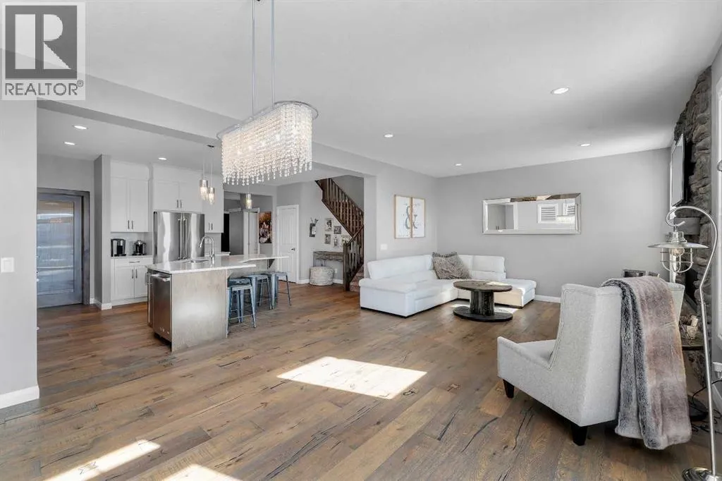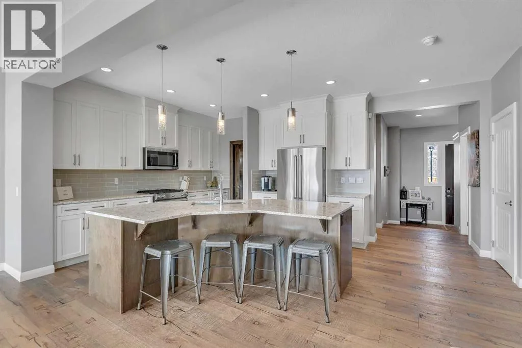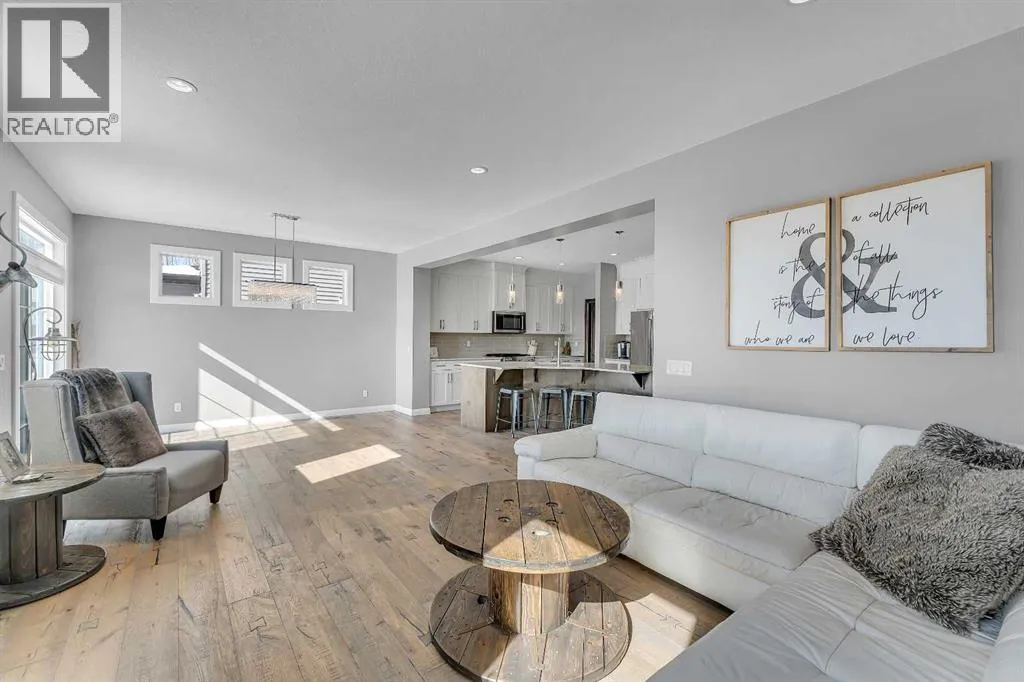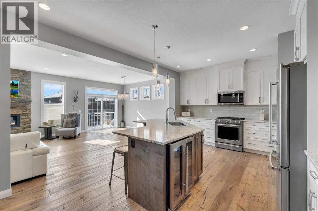 Welcome Home! This 2 story residence has so much to offer and features: 3,400+sq ft fully finished space w/ 5 bed, 3.5 bath + bonus | backing walking path + steps to rubber floor park | upgraded interior specifications | massive rear deck + landscaped | A/C | and so much more! All located in the developed Airdrie community 'Ravenswood' - with schools, amenities, access to major highways, green spaces & more making it perfect for growing families. Stepping inside you'll immediately notice the pride of ownership in this home. With the gleaming hardwood floors leading you throughout the main floor which offers living room, dining, large kitchen, walk thru pantry, mud room w/ built ins, and half bath. The kitchen features: beautiful white cabinets, granite countertops, large island with eating bar, plenty of storage space, SS appliances, walk thru pantry to mud room (perfect for bringing groceries home), cabinet to ceiling and more. Living room features a stunning stone fireplace, that extends to the ceiling giving the home a grand look. The main floor interior is sunlit with large windows, including sliding glass patio doors. Along with the high ceilings, this leaves the main floor feeling bright, airy and spacious - perfect for entertaining or the day to day life with the kids! Head upstairs to land in the large bonus room. Along with that, there are FOUR bedrooms upstairs! With the master being a great size with views of the green area behind the home being something that makes day to day living here that much more special. The master ensuite has everything you need and features: double vanity, toilet, stand alone tub, walk in shower. Along with that, you also have a large walk thru closet that leads to the upper laundry room - a well thought out layout by the builder! The basement is fully finished and features living space, bedroom, full bath, utility room and storage space. There is a concrete walkway on the side of home leading to poured concrete pad in the back yard. Along with that, the large deck. Most importantly, with a park the kids can play at only steps away, along with a walking path directly behind the home, this home truly checks all the boxes for what you can get in a home like this. Book your viewing today, before its gone! (id:27476)