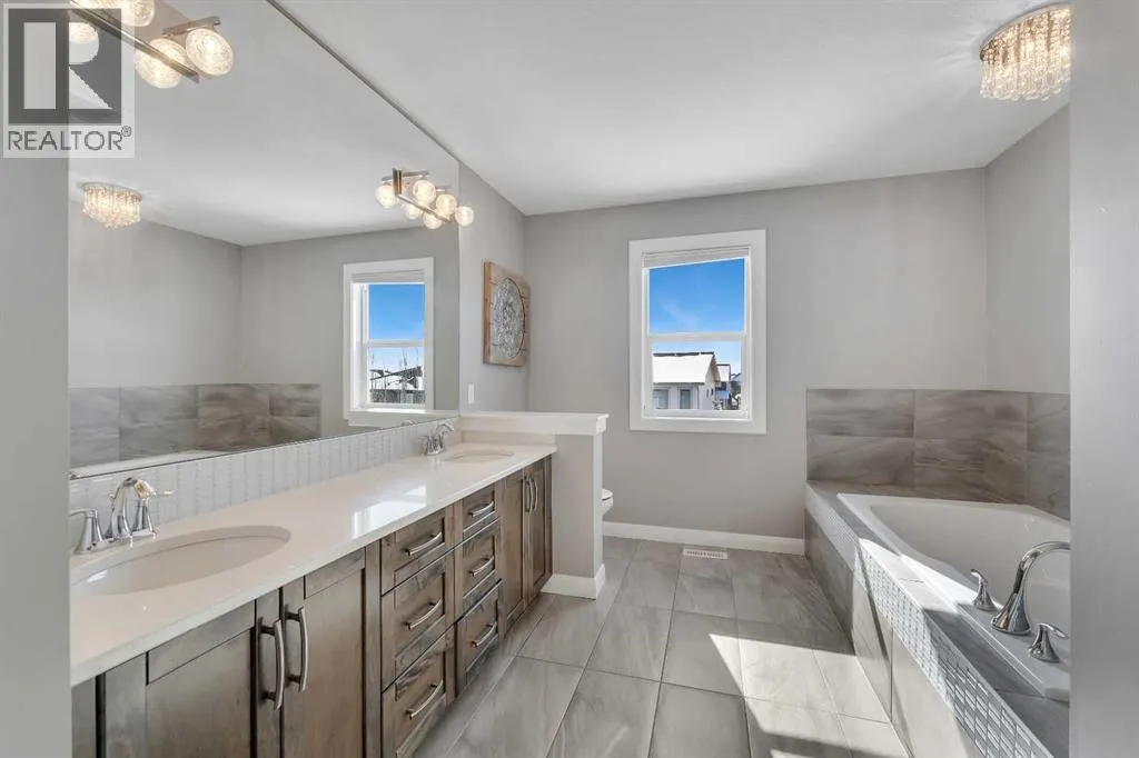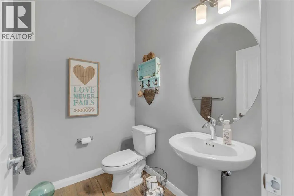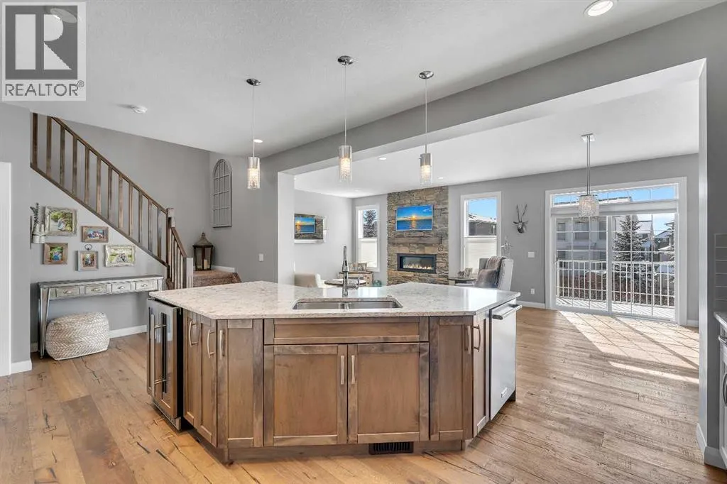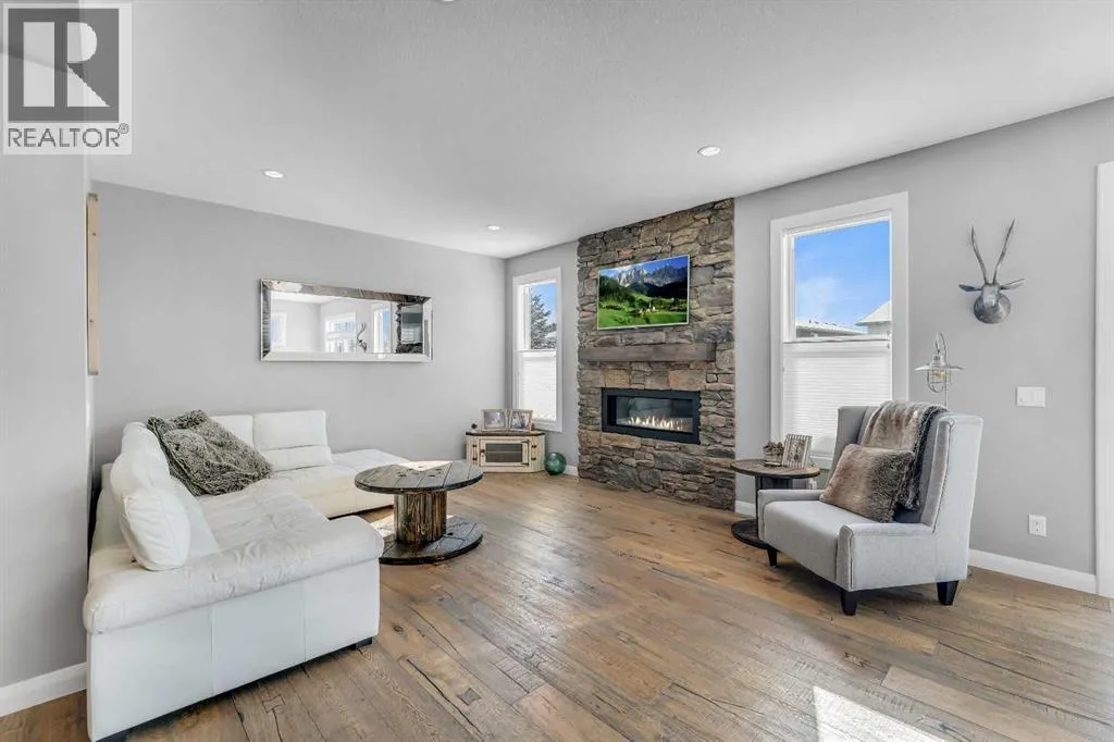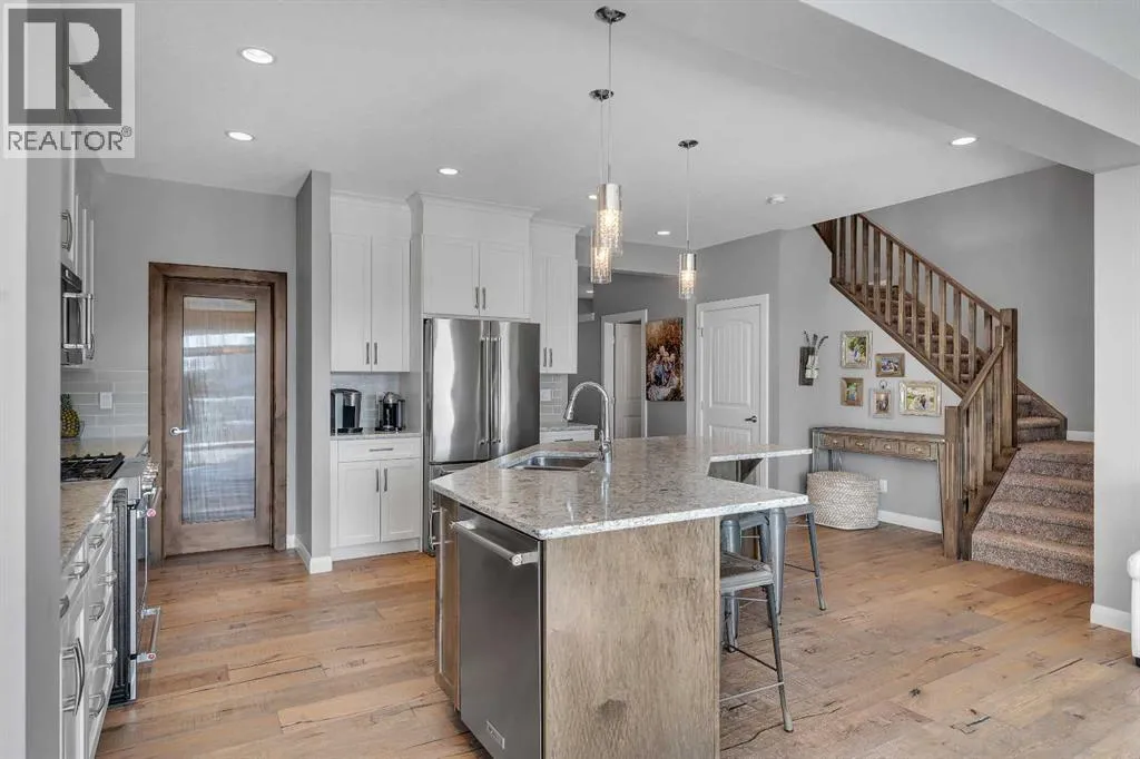 Welcome Home! This 2 story residence has so much to offer and features: 3,400+sq ft fully finished space w/ 5 bed, 3.5 bath + bonus | backing walking path + steps to rubber floor park | upgraded interior specifications | massive rear deck + landscaped | A/C | and so much more! All located in the developed Airdrie community 'Ravenswood' - with schools, amenities, access to major highways, green spaces & more making it perfect for growing families. Stepping inside you'll immediately notice the pride of ownership in this home. With the gleaming hardwood floors leading you throughout the main floor which offers living room, dining, large kitchen, walk thru pantry, mud room w/ built ins, and half bath. The kitchen features: beautiful white cabinets, granite countertops, large island with eating bar, plenty of storage space, SS appliances, walk thru pantry to mud room (perfect for bringing groceries home), cabinet to ceiling and more. Living room features a stunning stone fireplace, that extends to the ceiling giving the home a grand look. The main floor interior is sunlit with large windows, including sliding glass patio doors. Along with the high ceilings, this leaves the main floor feeling bright, airy and spacious - perfect for entertaining or the day to day life with the kids! Head upstairs to land in the large bonus room. Along with that, there are FOUR bedrooms upstairs! With the master being a great size with views of the green area behind the home being something that makes day to day living here that much more special. The master ensuite has everything you need and features: double vanity, toilet, stand alone tub, walk in shower. Along with that, you also have a large walk thru closet that leads to the upper laundry room - a well thought out layout by the builder! The basement is fully finished and features living space, bedroom, full bath, utility room and storage space. There is a concrete walkway on the side of home leading to poured concrete pad in the back yard. Along with that, the large deck. Most importantly, with a park the kids can play at only steps away, along with a walking path directly behind the home, this home truly checks all the boxes for what you can get in a home like this. Book your viewing today, before its gone! (id:27476)