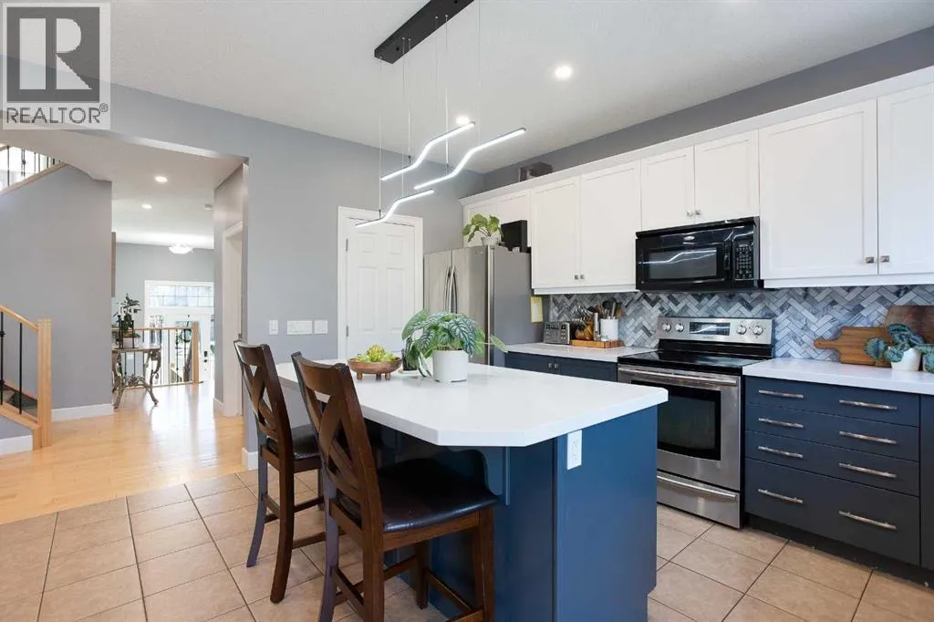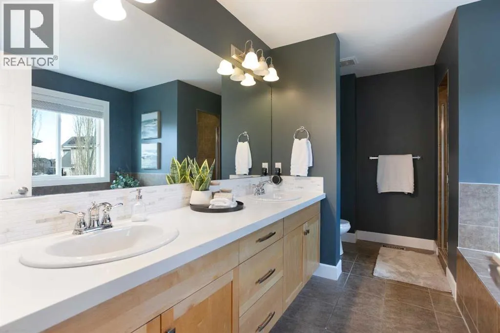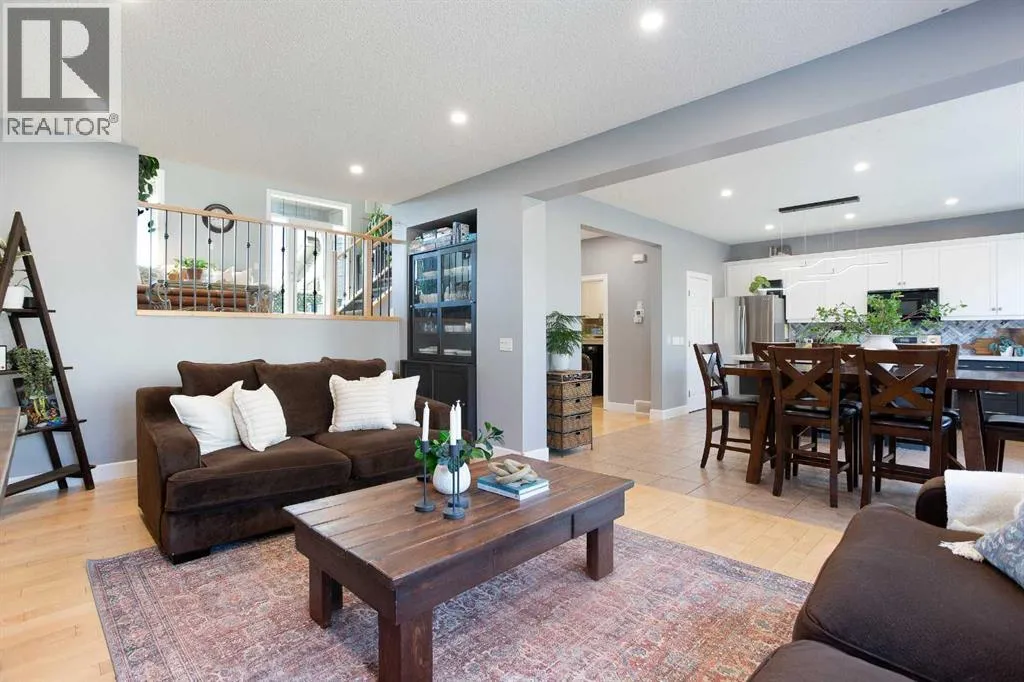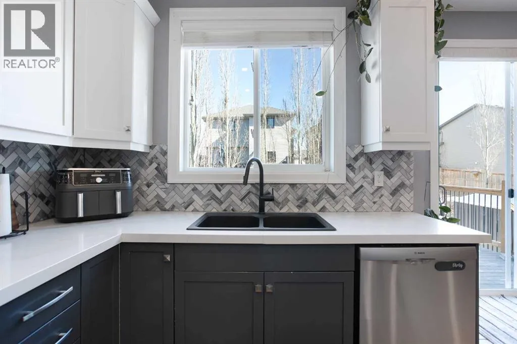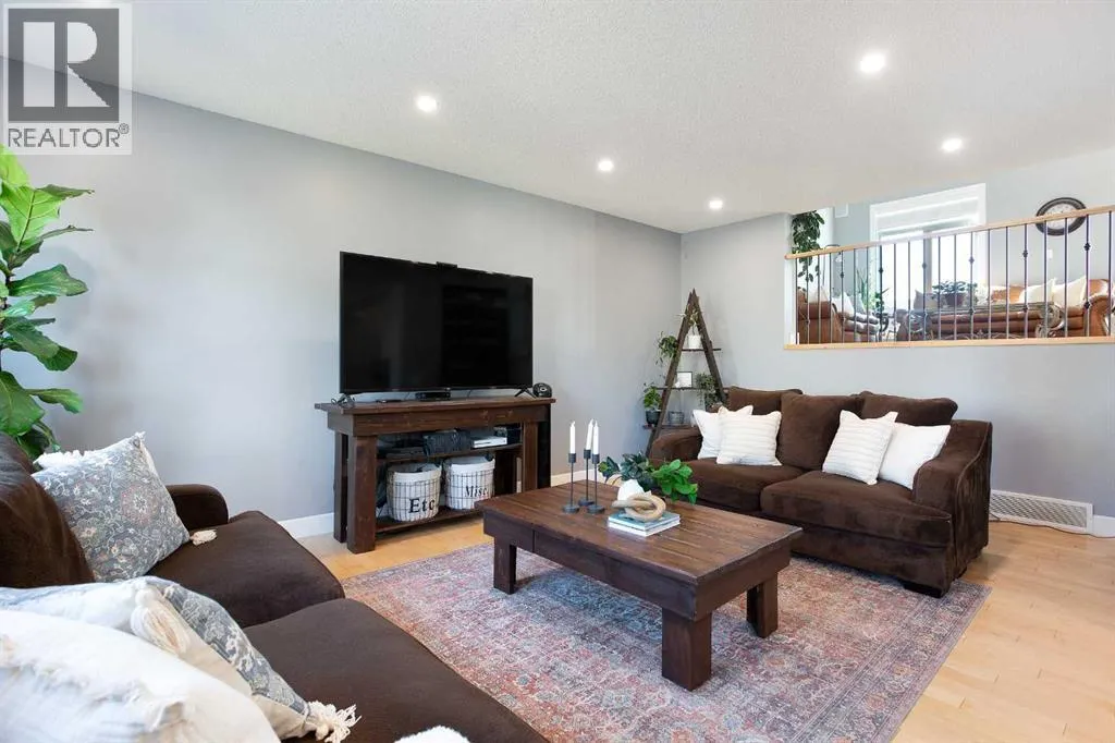 Stunning 3 level split in desirable Windsong! Step into a home where sleek, contemporary design meets the warmth of a true family home. Boasting over 3,237 total square feet of impeccably finished living space, this four-bedroom gem is perfectly positioned on a quiet stretch of the street, offering an enviable lifestyle with a water park, ball fields, and a skate park right at your doorstep. From the moment you arrive, the grand front entry sets the toneâspacious, practical, and designed to handle the transition from the outdoors with ease. The heart of the home is a bright, open-concept sanctuary where natural light pours through expansive windows. The gourmet kitchen is a chefâs dream, fully equipped with a center island with additional seating, and a generous pantry. Whether youâre hosting a dinner party or enjoying a quiet morning in the separate eating nook, the space flows effortlessly into a living room built for connection. Elegant wrought iron railings guide you between levels, adding a sophisticated touch to the transition. Just a few steps up, youâll discover the homeâs true architectural highlight: a stunning bonus room that manages to feel both airy and intimate. With its soaring vaulted ceilings, rich hardwood flooring, and the cozy glow of a gas fireplace, itâs the ultimate spot for family movie nights. Step out onto the large private balcony for a morning coffee or an evening glass of wine as you take in the neighborhood views. The top floor is dedicated entirely to rest, headlined by a magnificent primary retreat. This isn't just a bedroom; itâs a sanctuary featuring a romantic two-sided fireplace, a walk-in closet, and a spa-like five-piece ensuite bathroom. Two additional spacious bedrooms, a versatile den, and a full four-piece bathroom ensure there is plenty of room for a growing family or a dedicated home office. Downstairs, the fully finished lower level offers even more flexibility. A massive family room provides the perfect canvas for a home gym or a private cinema, while a secluded fourth bedroom and three-piece bathroom offer a quiet haven for guests or older children. The experience continues outdoors in a fully fenced and landscaped backyard. The expansive deck is ready for summer barbecues and weekend gatherings, providing a private oasis to enjoy the warmer months. Located close to top-tier schools, shopping, and essential community amenities, this home offers incredible value and a modern aesthetic designed to elevate your everyday life. Book your Showing today! (id:27476)