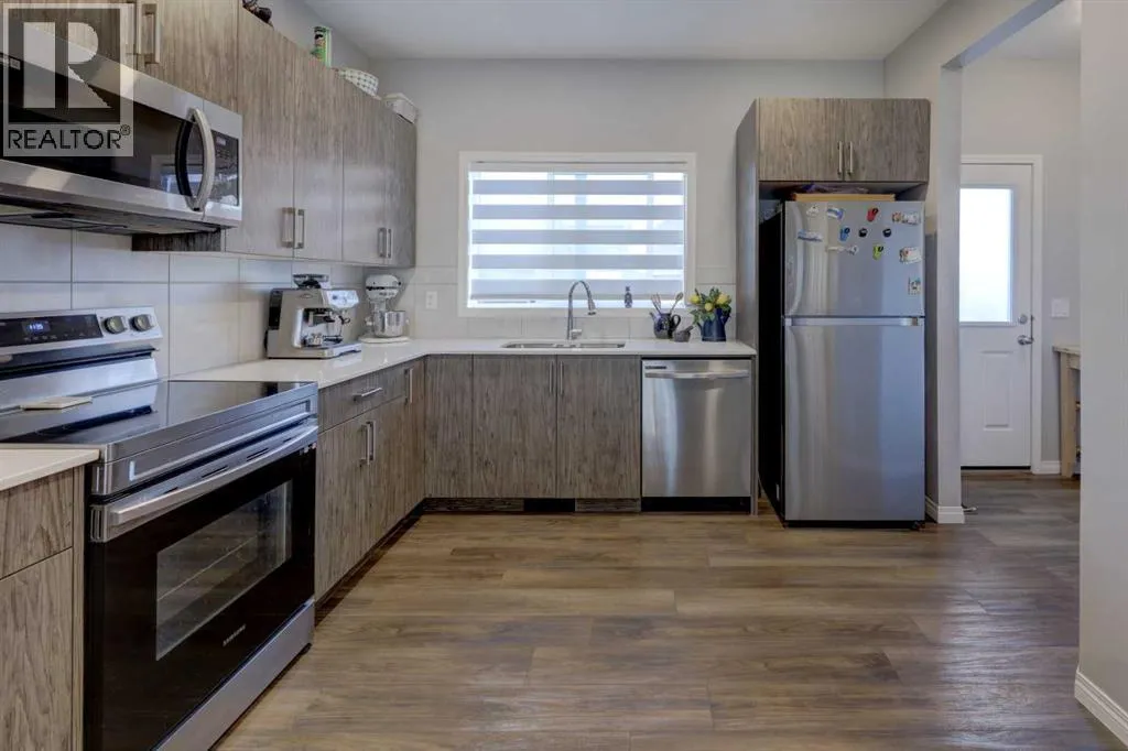 Welcome home to this beautiful, peaceful 3-bedroom family home, perfectly situated facing a large park and surrounded by fantastic amenities within walking distance. When you come for a viewing, be sure to explore the nearby splash park, skate park, and ball diamondsâideal for active families.This move-in ready home features an open-concept main floor designed for both everyday living and entertaining, highlighted by elegant quartz countertops and a spacious dining area. The modern kitchen is equipped with sleek stainless steel appliances, including an electric stove, built-in microwave, and dishwasher.Upstairs, the generous primary bedroom offers a private ensuite bathroom and a full walk-in closet. For added convenience, the washer and dryer are also located on the upper levelâperfect for busy households. The two additional bedrooms are thoughtfully positioned away from the primary suite, providing extra privacy.This home truly has everything a growing family needsâdonât miss your opportunity to make it yours! (id:27476)
