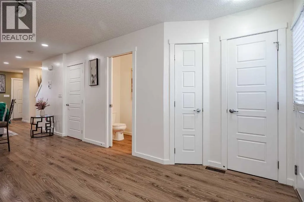 DUAL PRIMARY BEDROOM and BASEMENT ALERT!! Welcome to #202 in Ravenswoodâs Zen complex, a family and pet-friendly community close to schools, parks, trails, and an easy commute to Calgary via the QE2. This 1,155 sq ft two-storey townhome offers 2 bedrooms, 2.5 bathrooms, and an open main floor, with two generous upstairs bedrooms that each have their own ensuite, making the layout work great for roommates, guests, or kids who want their own space. NOT all units in this complex have a basement. We DO, adding 500sq feet more to develop. This full basement that many units do not have, gives you real storage now and a great option for future development. You also get one parking stall just steps from the backyard, plus easy street parking nearby. Out back you have a private fenced yard. Live in Airdrie and work in Calgary! Book your showing today! (id:27476)