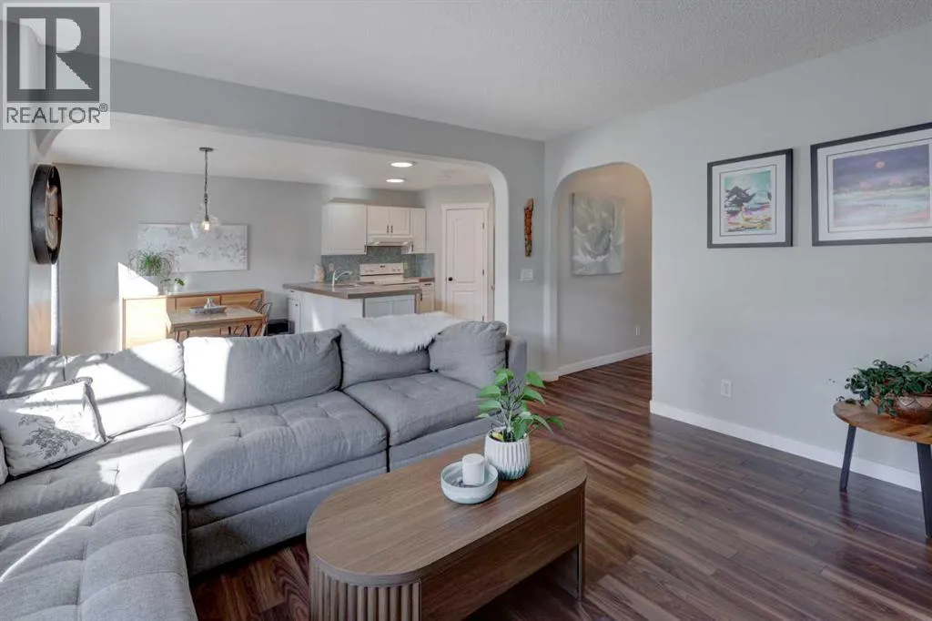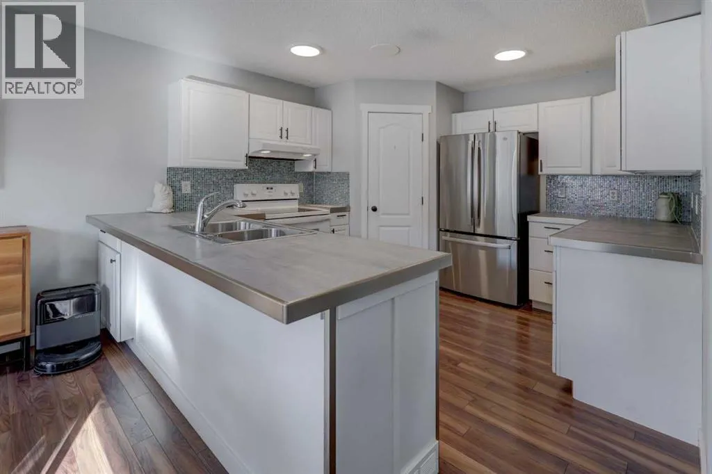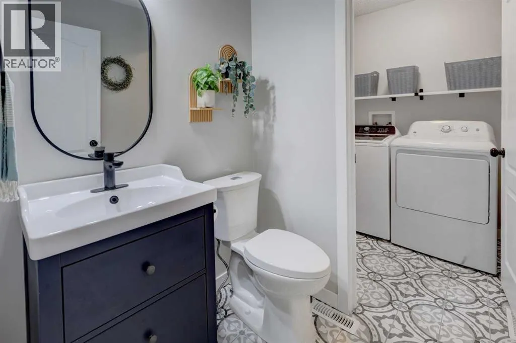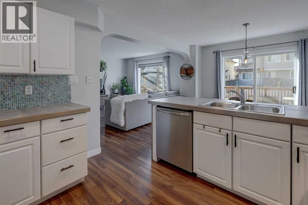Welcome Home to this well cared for & modern feeling home - perfect for young & growing families! Stonegate is a wonderful, family friendly community offering walkability to Superstore, restaurants & everything north Airdrie has to offer, including the TriSchool site - k to 12 learning in either English or French! This fully finished home shows pride of ownership throughout & big ticket items already taken care of - FURNACE is 2 years old & HOT WATER TANK is 4 years old. Walk up your front drive and note the timeless stonework, covered front veranda & storm door. You are greeted by a spacious foyer w/soaring ceilings & soft, muted modern paint colors throughout. Off to your right is the half bath updated w/modern floors & colors & your MAIN FLOOR LAUNDRY. OPEN CONCEPT main floor living is highlighted by modern lighting, SOUTH windows, a spacious living room, white kitchen with large peninsula, funky backsplash & corner pantry. The upper level is host to 2 very spacious secondary bedrooms (one is the size of some primary bedrooms) serviced by a 4 pc bathroom. The private master retreat is massive (almost 180 sq ft) & features a WIC & spacious 4 pc ENSUITE. The lower level of this home is fully finished, featuring a large rec room, 2 pc. bathroom (w/room to put in a corner shower if desired) as well as lots of storage. Come on outside to your SOUTH BACKYARD featyring a huge tiered deck perfect for relaxing on a warm summer day! There is lots of space to watch the kids run & play & if you find it warm one day An attached double garage, double driveway & some street parking complete this package. Close to schools, parks, shopping, playgrounds and parks! This home is a great property for any family - come and have a look! (id:27476)