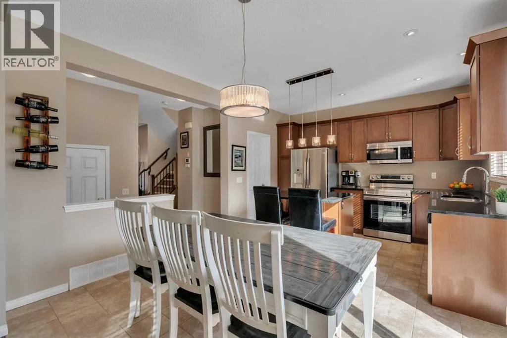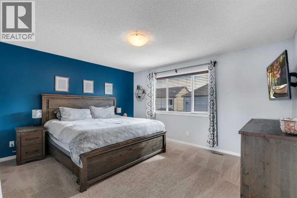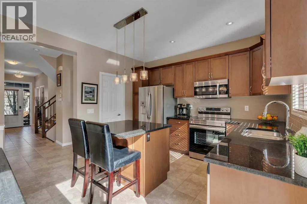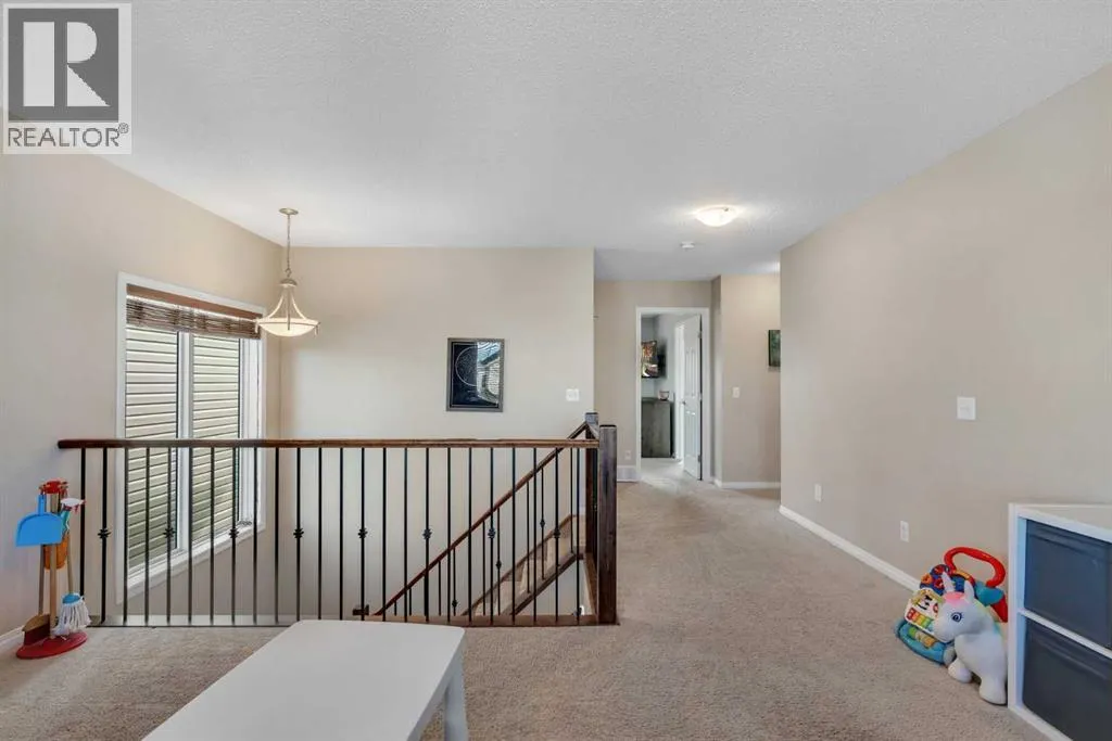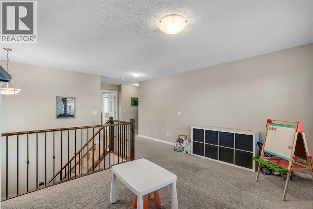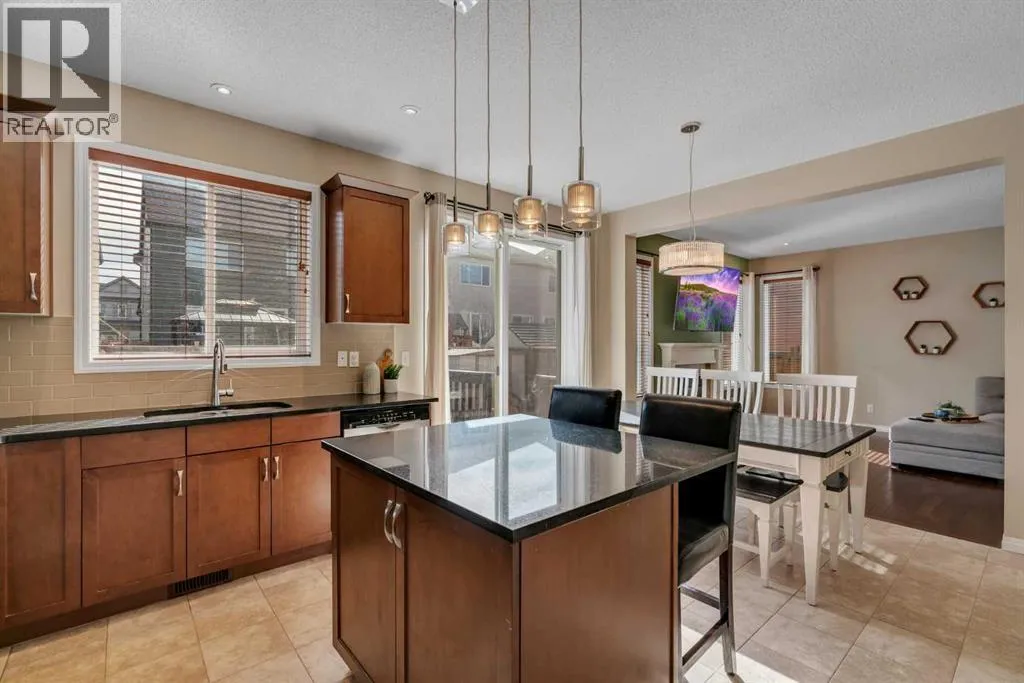 Pride of ownership is evident throughout this well-maintained, move-in ready home featuring a fully finished layout tailored for growing families and everyday comfort. The welcoming main level unfolds with an abundance of natural light, where a thoughtfully designed kitchen anchors daily routines with granite countertops, stainless steel appliances and efficient workspace that keeps everything within reach. Seamless flow continues into the dining area where sliding doors extend living outdoors, supporting easy barbeques and quiet evenings on the deck. Relaxation is invited in the adjacent living room around the ambient gas fireplace while extra windows draw sunlight deep into the space. Daily organization is simplified by a tucked-away powder room and a large walk-in entry closet that keeps jackets, shoes and bags neatly stored. The upper level is equally well planned with a lofted bonus room that introduces flexibility for a play area, home office or comfortable place to unwind. Retreat at the end of the day to the private primary oasis boasting a 4-piece ensuite and walk-in closet, creating a quiet space to recharge. Two additional spacious and bright bedrooms, including one with its own walk-in closet, are complemented by a full 4-piece bathroom. Convenient upper level laundry streamlines daily routines. A fully finished basement expands the living space with durable LVP flooring and a large rec room centred around a wet bar that makes snacks and drink refills during movie nights or gatherings effortless. A fourth bedroom and a 4-piece bathroom accommodate guests or older children with ease, while ample storage supports long-term organization. Outdoor living is just as inviting with a sunny south-facing backyard that maximizes natural light throughout the day. An expansive deck sets the stage for summer hosting while a large fenced yard allows kids and pets to play safely. Evenings are best spent gathered around the firepit, creating a comfortable setting to unwi nd under the open sky. This outstanding location connects easily to everyday convenience in the sought-after community of South Windsong within walking distance to Coopers Town Promenade shops, dining, childcare and local businesses. Nearby parks, green spaces and pathways support an active lifestyle while easy access to Calgary, the airport, CrossIron Mills and Costco keeps commuting and errands simple and efficient. Truly an exceptional location for this gleaming, move-in ready home. (id:27476)