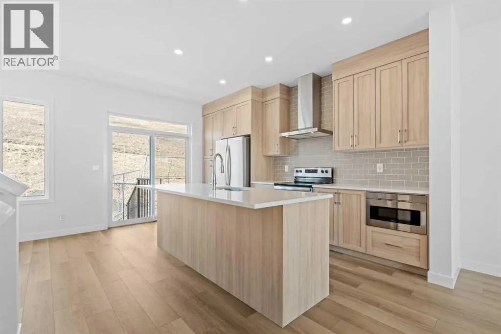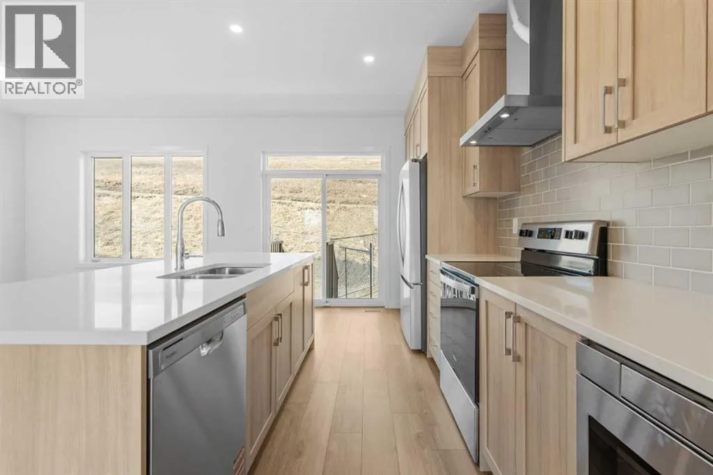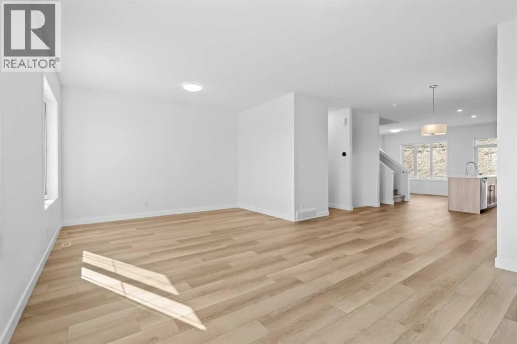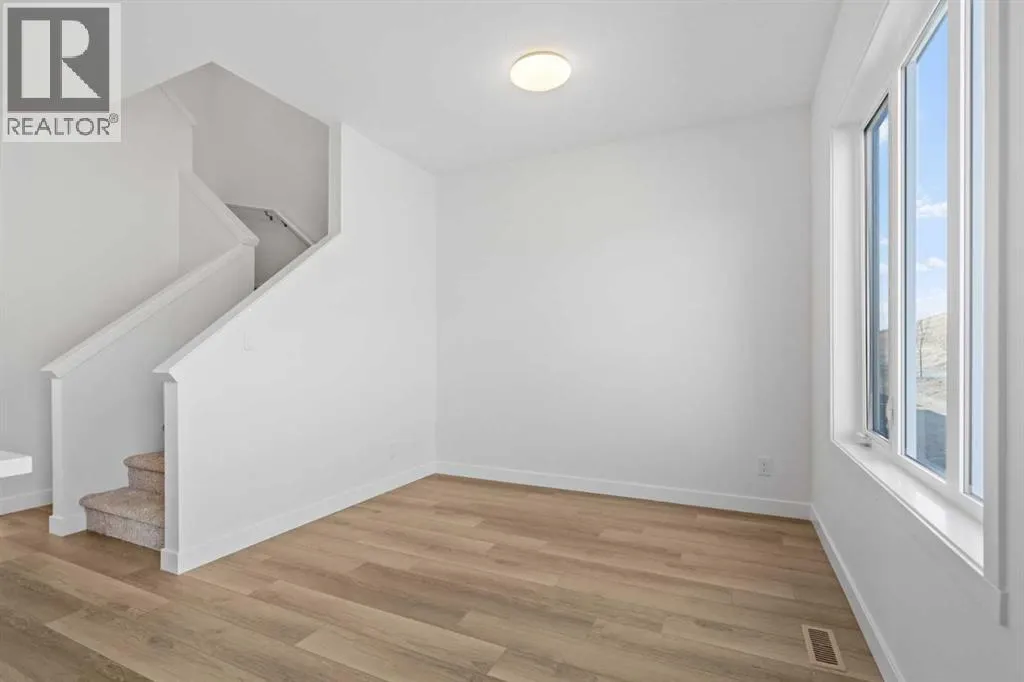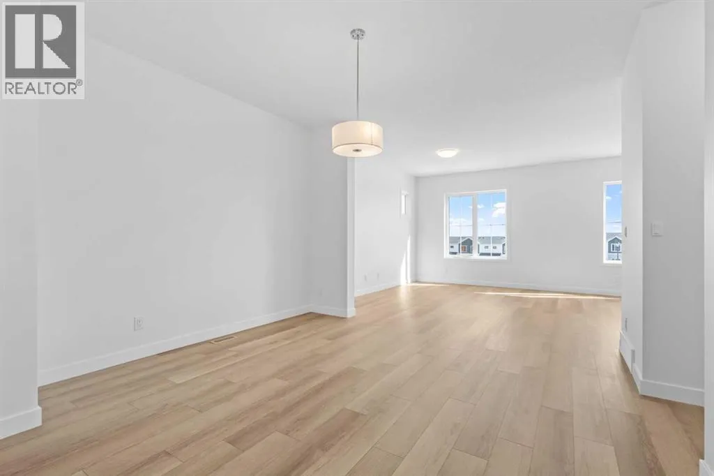 NEW BUILD SEMI-DETACHED | OVERSIZED SINGLE GARAGE | 3 BED / 2.5 BATH / 1764 SQ FT | WEST-FACING BACKYARD | IMMEDIATE POSSESSION â Welcome to this beautifully designed semi-detached duplex by Minto Communities, an award-winning Canadian builder, located in Wildflower, proudly voted Best New Community in Canada (2025). This vibrant, master-planned community in Airdrie is designed with lifestyle and connection in mind, offering an exciting mix of home styles in a neighbourhood built to grow with you. Finished in a charming traditional farmhouse elevation, this spacious home offers a thoughtfully planned layout ideal for modern family living. The main floor is designed for both everyday comfort and entertaining. The kitchen is positioned at the back of the home and features a central island, stainless steel appliances, and gorgeous modern finishes, with a bright breakfast nook just off the kitchen overlooking the west-facing backyard. Moving toward the centre of the home, youâll find a dedicated dining area, while the large, light-filled living room anchors the front of the home. A convenient half bath and storage closet complete this level. Upstairs, the spacious primary bedroom easily accommodates a king-sized bed and includes a walk-in closet and a private 4-piece ensuite. Two additional well-sized bedrooms share this floor, one with a walk-in closet and the other featuring a sliding-door closet. A second 4-piece bathroom and a large, functional laundry room round out the upper level. The ground level welcomes you with a beautiful entryway that leads to the rest of the home and an undeveloped space that offers flexibility for future development. This level also includes additional storage space, a mechanical room, and direct access to the oversized single attached garage. A large driveway provides ample parking, adding everyday convenience. Residents of Wildflower enjoy exclusive access to The Hillside Hub, a standout amenity centre featuring Airdrieâs first outdoor pool, a hot tub, an open-air sports court, and a variety of shared indoor and outdoor spaces designed for gathering, recreation, or quiet retreat. With nearby parks, pathways, amenities, and easy access to major routes, Wildflower delivers a truly well-rounded lifestyle. Combining award-winning community planning, modern design, and immediate possession, this is an outstanding opportunity to own a stylish new home in one of Canadaâs most celebrated communities. Donât miss your chance to make Wildflower home! Book your visit today! (id:27476)