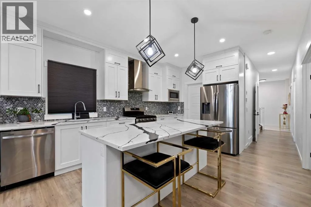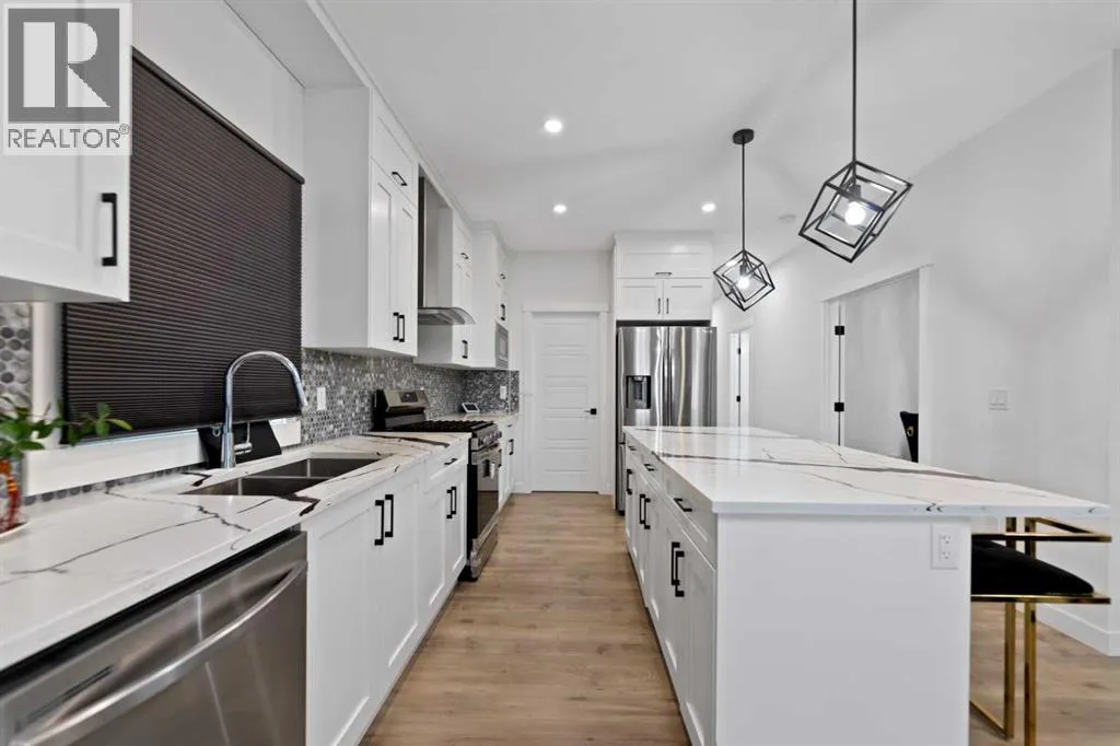 Welcome to 479 Bayview Way SW in the desirable community of Bayview, Airdrieâoffering 2,257 SQFT of thoughtfully designed living space, a functional layout, and excellent versatility for families or investors alike. The main floor features a bright open-concept design with 9-foot ceilings, a spacious living room, dedicated dining area, and a modern kitchen complete with ample cabinetry, large island, Pantry, and quality finishes. A full 4-piece bathroom on the main level adds convenience and flexibility, ideal for guests or multi-generational living. Upstairs, youâll find 4 well-sized bedrooms including a spacious primary retreat with a 5-piece ensuite featuring dual vanities and a walk-in closet. The upper level is completed by a bonus/family room, laundry room, and two additional 4-piece bathrooms, offering both comfort and practicality for a growing family. The fully developed basement with separate entrance adds significant value, featuring 2 bedrooms, a den, full kitchen, recreation area, and a 3-piece bathroomâperfect for extended family or potential rental income. Situated in a family-friendly neighborhood close to parks, pathways, schools, and amenities, this home is a fantastic opportunity to own a well-appointed property in one of Airdrieâs growing communities. (id:27476)