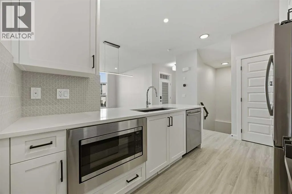 Welcome to 1047 Bayview Crescent, a beautifully designed street-side luxury townhome with NO CONDO FEES! This interior Jasper townhome features an attached double garage, a rooftop patio, and low-maintenance living. The tastefully designed home offers over 1400 sq ft. of above-grade living space plus an unfinished basement with 9' ceilings, ready for your design ideas. On the main floor, you will find soaring ceilings in the open-concept living space and large windows that let natural light flow through. The chef-inspired kitchen offers beautiful cabinetry and stone countertops and is well-equipped with stainless steel appliances. The kitchen is open to the dining and living room, perfect for entertaining family and friends. Complimenting the main floor is a convenient half bath, storage and entry from the attached garage. Venturing upstairs, you will find a spacious primary retreat with a spa-like ensuite, a spacious shower, and a generous walk-in closet. Two additional bedrooms, a full bath, a 4-piece bath and laundry complete the upper level. Outside, enjoy time on your upper south-facing rooftop patio, which is situated above the garage. Bayview is a beautiful community with parks, benches and pathways that meander throughout the community and along the canals. Kids and adults alike will enjoy the outdoor basketball nets, gym, amphitheatre, and tennis courts, which convert into a skating rink in the winter. Come and see all the amenities the community offers for yourself! *RMS has been applied to the construction drawings provided by the builder. Taxes to be assessed. (id:27476)