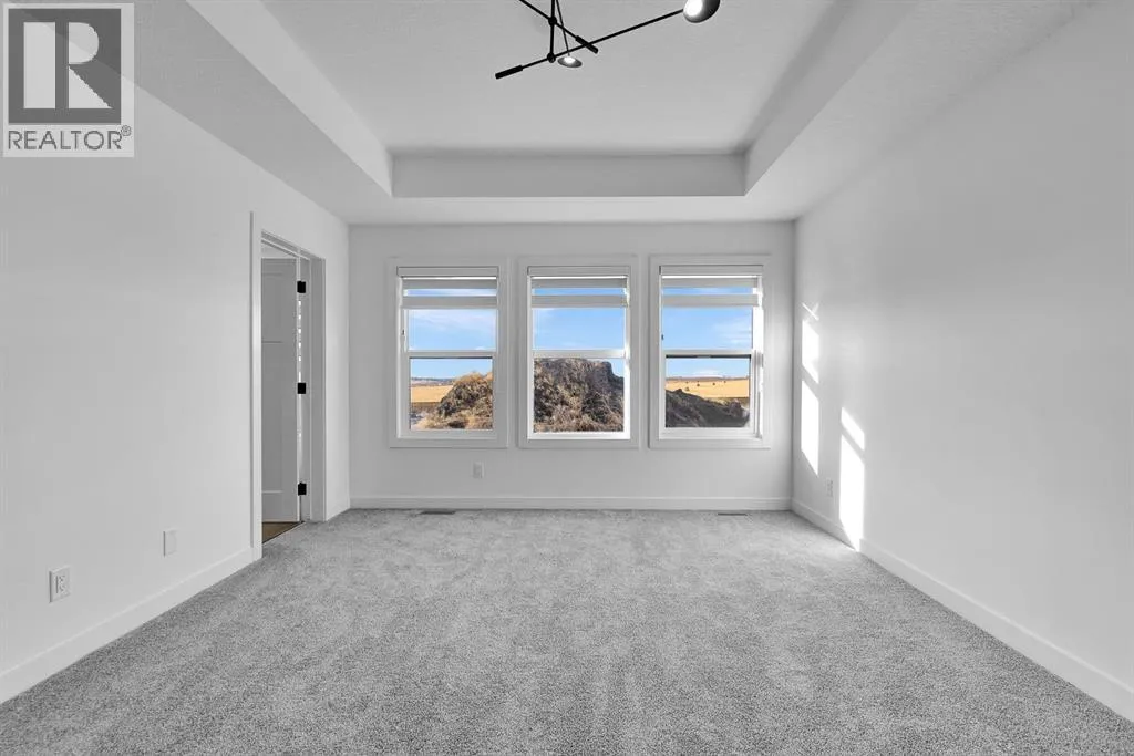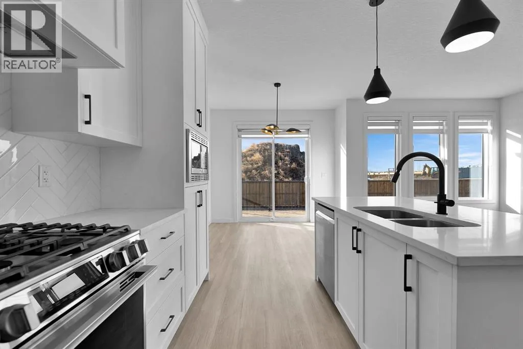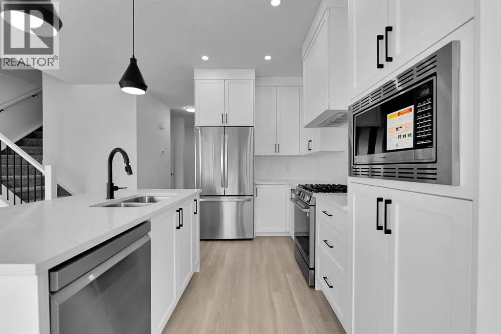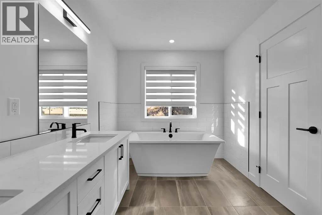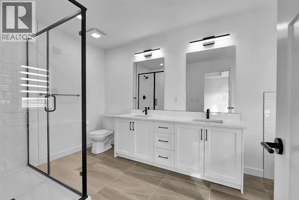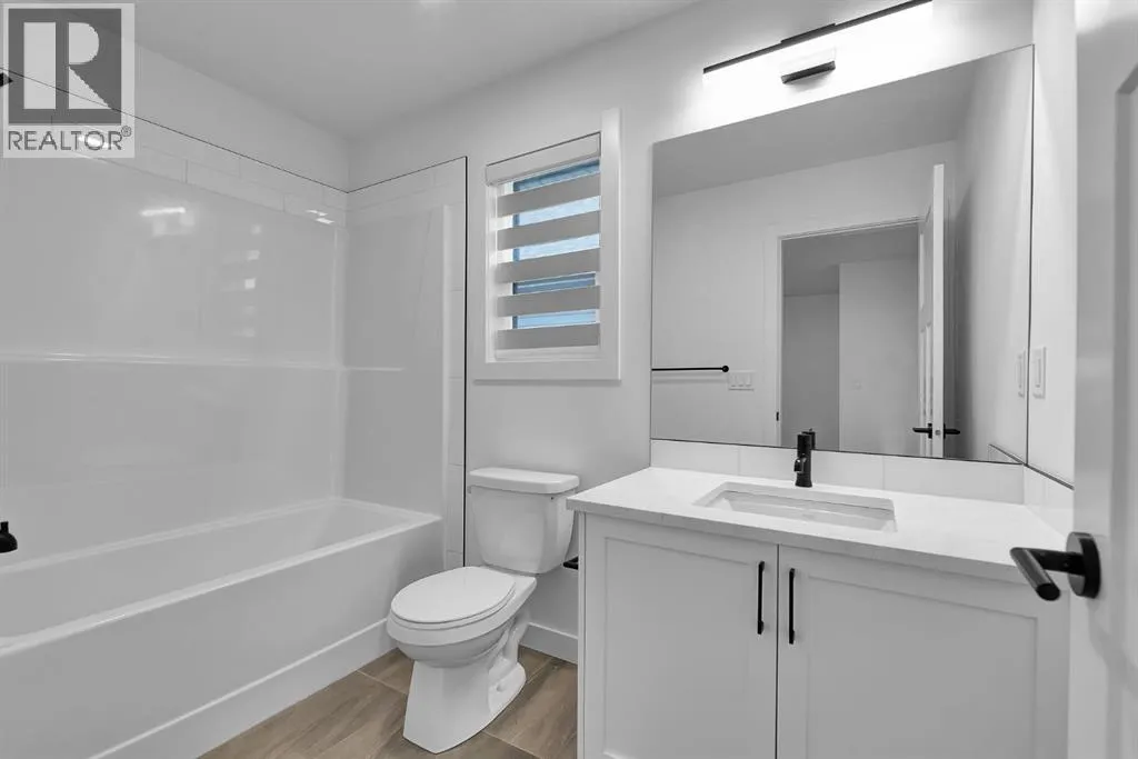 South Point is in its final phase. No HOA fees. Elementary school steps away. QE2 access. South Point Village, 415,000 sq ft of retail and commercial, under construction next door.2025 Vesta build. 2,054 sq ft above grade. 3 bedrooms plus bonus room and main floor office. 2.5 baths. Double attached garage. Black hardware package throughout. Gas range. Quartz counters. Cabinets to ceiling. Primary bedroom with walk-in closet and 5-piece ensuite. Washer and dryer included. Rear deck. 9' ceilings on main.Lot is 3,993 sq ft. One of the larger lots on the street.Full unfinished basement. Separate exterior entry. Ceiling approximately 9'. 2-bedroom, 1-bath legal suite plans submitted to City of Airdrie. Permit pending.Alberta New Home Warranty active. Transfers to buyer. (id:27476)