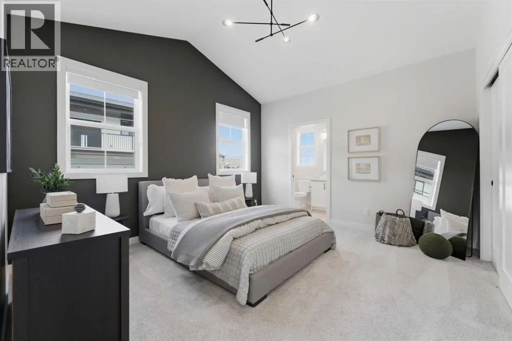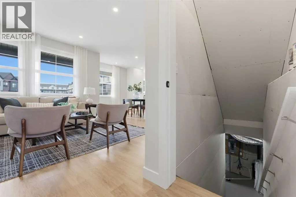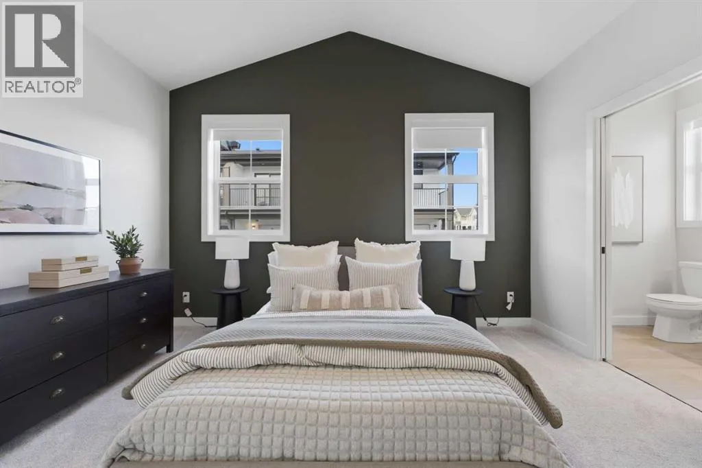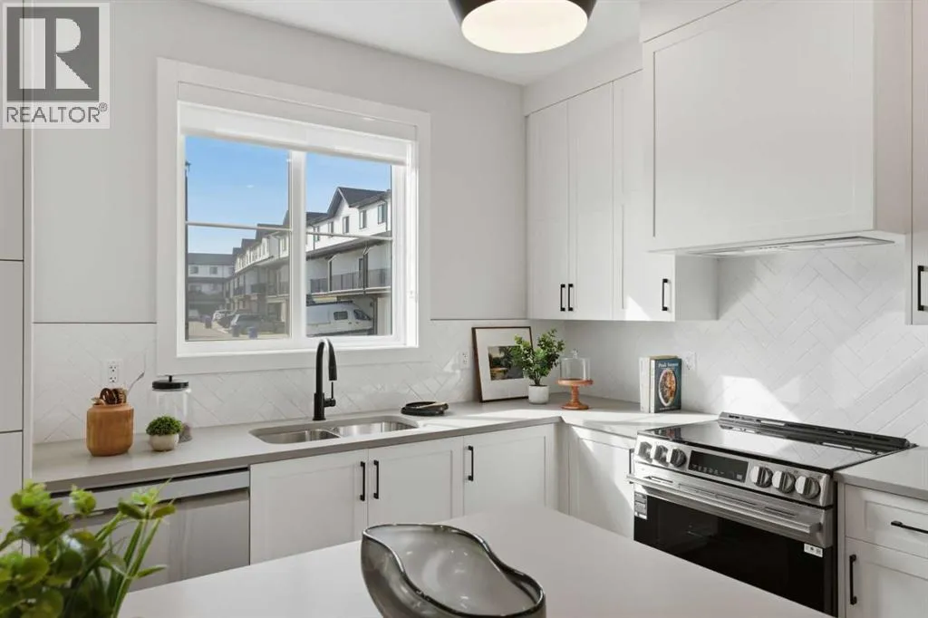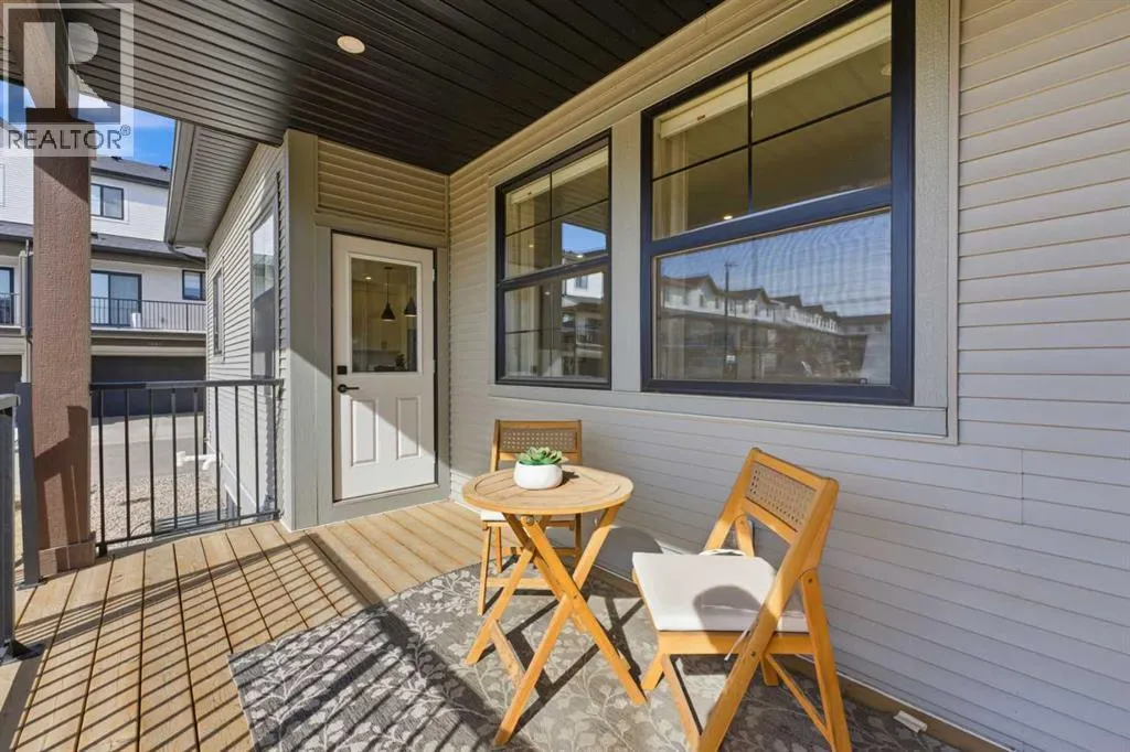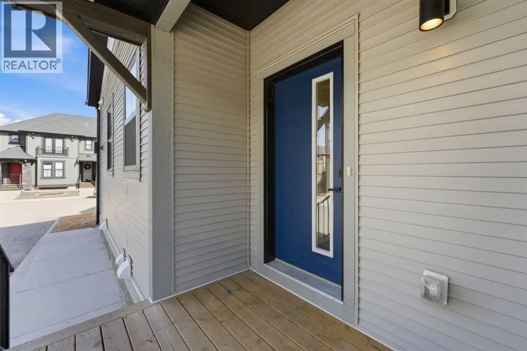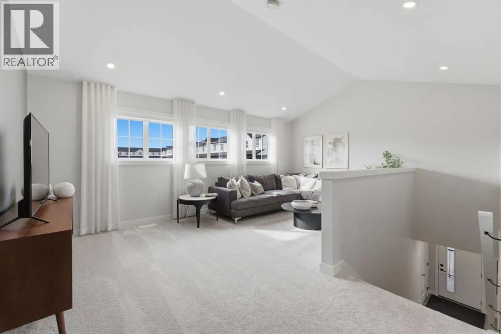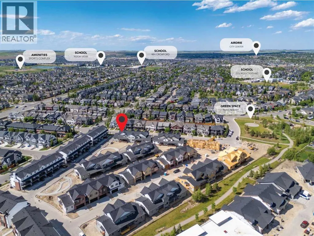 Experience luxury and convenience in the heart of Airdrieâs award-winning community, Cooperâs Crossing. As a former showhome, this stunning corner-unit townhome comes fully loaded with premium designer upgrades and the added comfort of central air conditioning already installed.The main level offers an open-concept layout with 9-foot ceilings, a gourmet kitchen featuring an oversized island and stainless steel appliances, and a private primary retreat with soaring vaulted ceilings and a spa-inspired ensuite. The sun-soaked upper level provides a versatile bonus room, two additional spacious bedrooms, and a dedicated laundry area. Enjoy sunshine all day and peaceful evenings on your covered south-facing balcony, complete with a gas line and views of the landscaped green space.This home is finished with a double attached garage and modern contemporary exteriors, offering a sophisticated "Lock & Leave" lifestyle. With low condo fees of $347/month, all exterior maintenance, snow removal, and landscaping are professionally managed. Discover effortless, maintenance-free living in one of Airdrie's most prestigious locations. Book your private tour today! (id:27476)