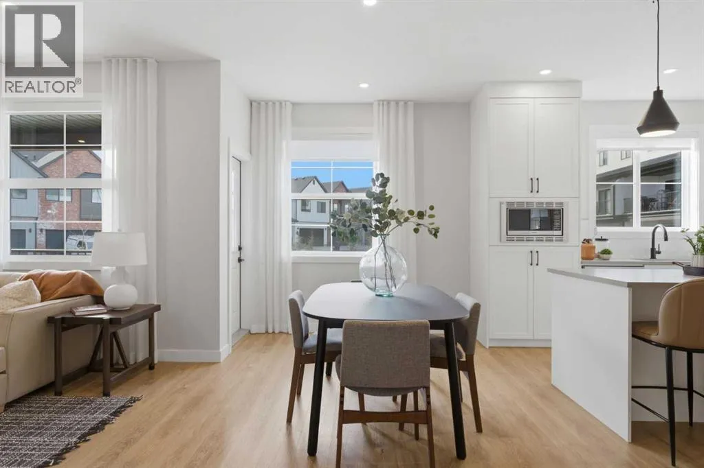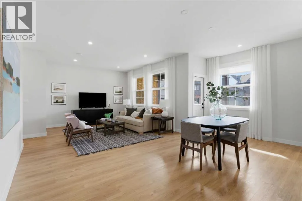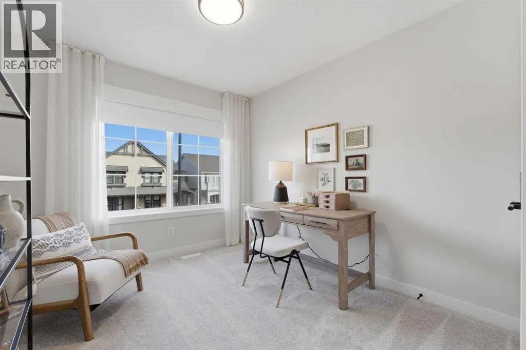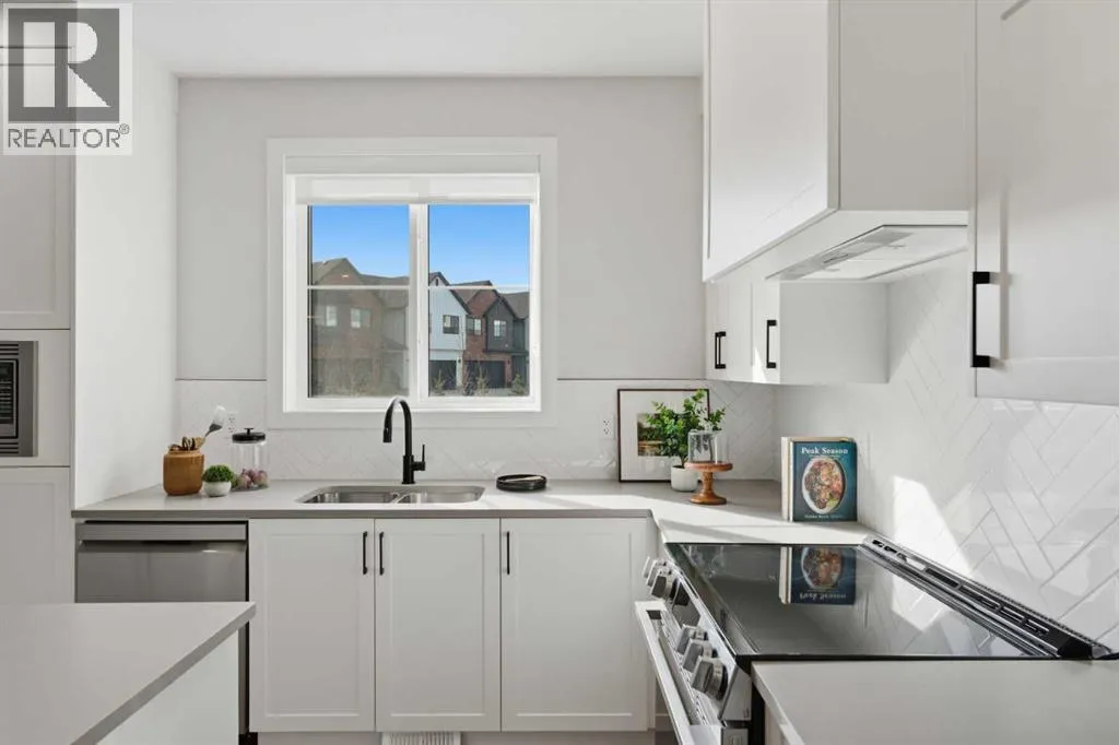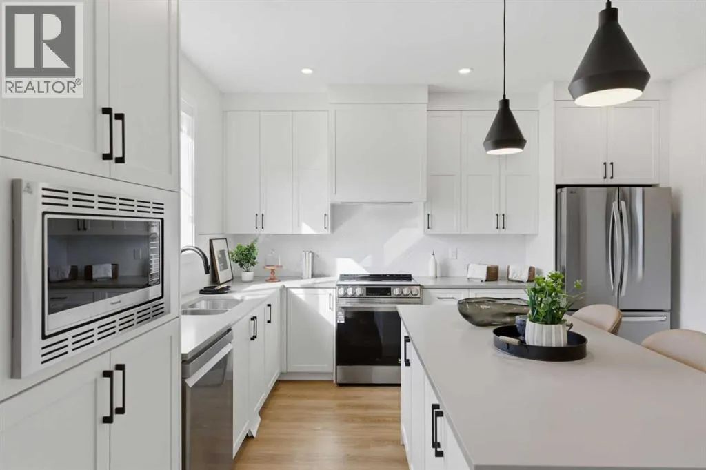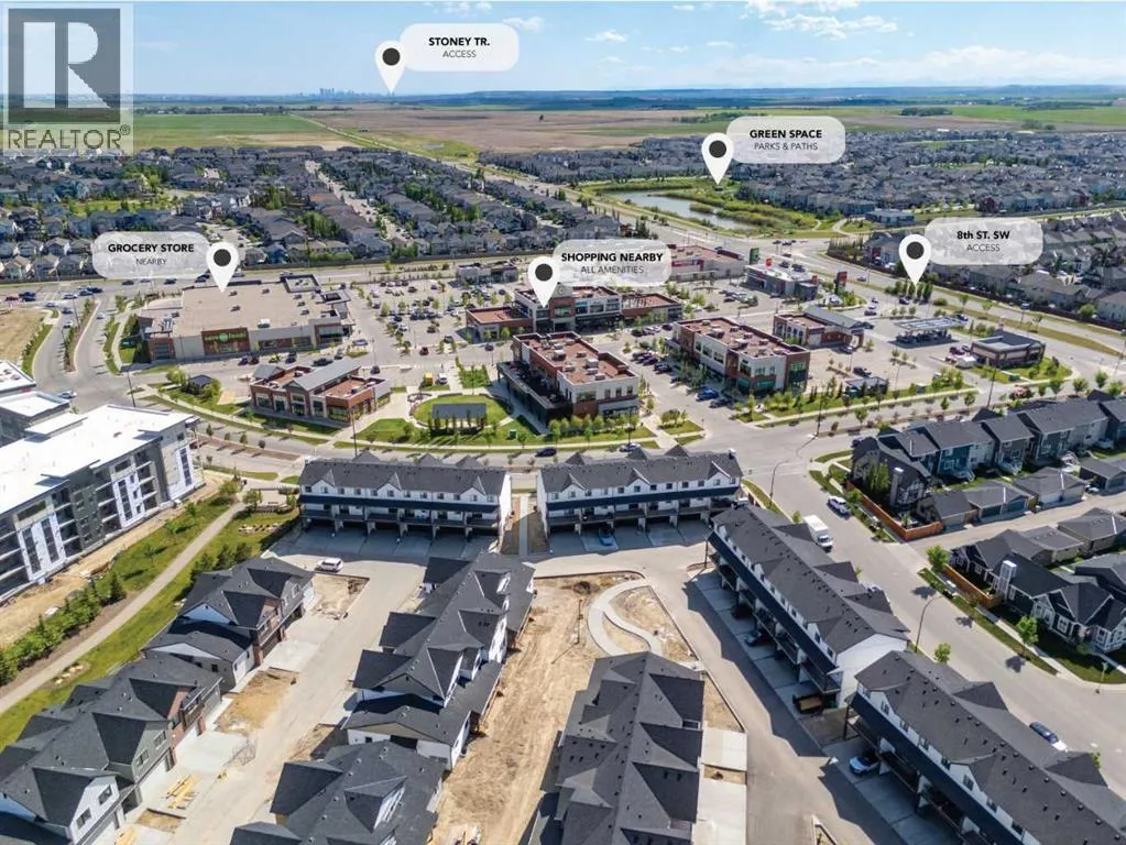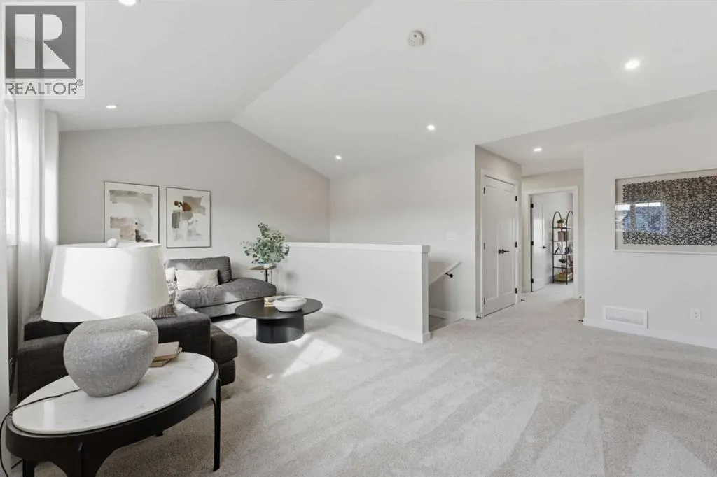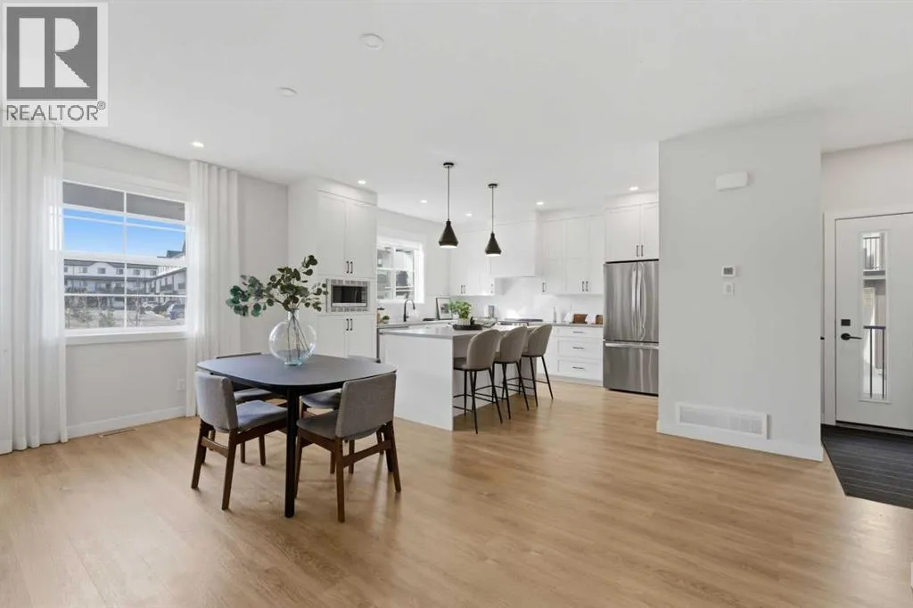 Experience luxury and convenience in the heart of Airdrieâs award-winning community, Cooperâs Crossing. As a former showhome, this stunning corner-unit townhome comes fully loaded with premium designer upgrades and the added comfort of central air conditioning already installed.The main level offers an open-concept layout with 9-foot ceilings, a gourmet kitchen featuring an oversized island and stainless steel appliances, and a private primary retreat with soaring vaulted ceilings and a spa-inspired ensuite. The sun-soaked upper level provides a versatile bonus room, two additional spacious bedrooms, and a dedicated laundry area. Enjoy sunshine all day and peaceful evenings on your covered south-facing balcony, complete with a gas line and views of the landscaped green space.This home is finished with a double attached garage and modern contemporary exteriors, offering a sophisticated "Lock & Leave" lifestyle. With low condo fees of $347/month, all exterior maintenance, snow removal, and landscaping are professionally managed. Discover effortless, maintenance-free living in one of Airdrie's most prestigious locations. Book your private tour today! (id:27476)