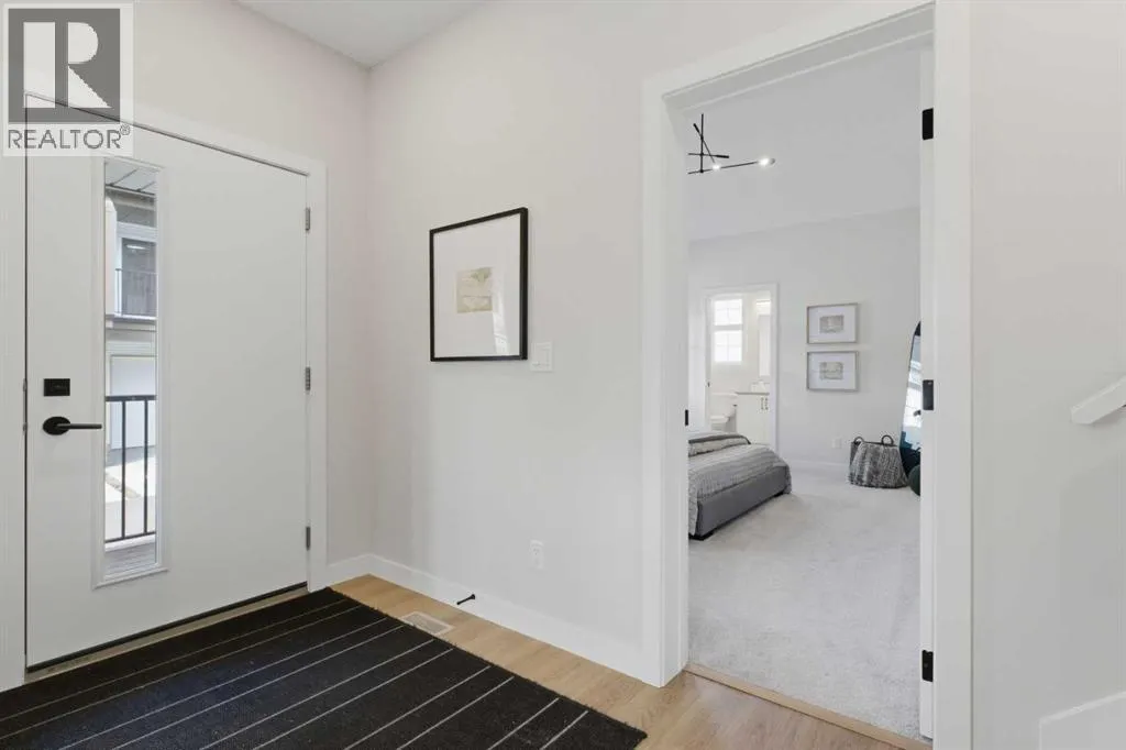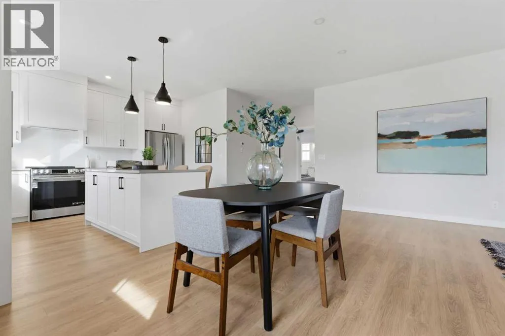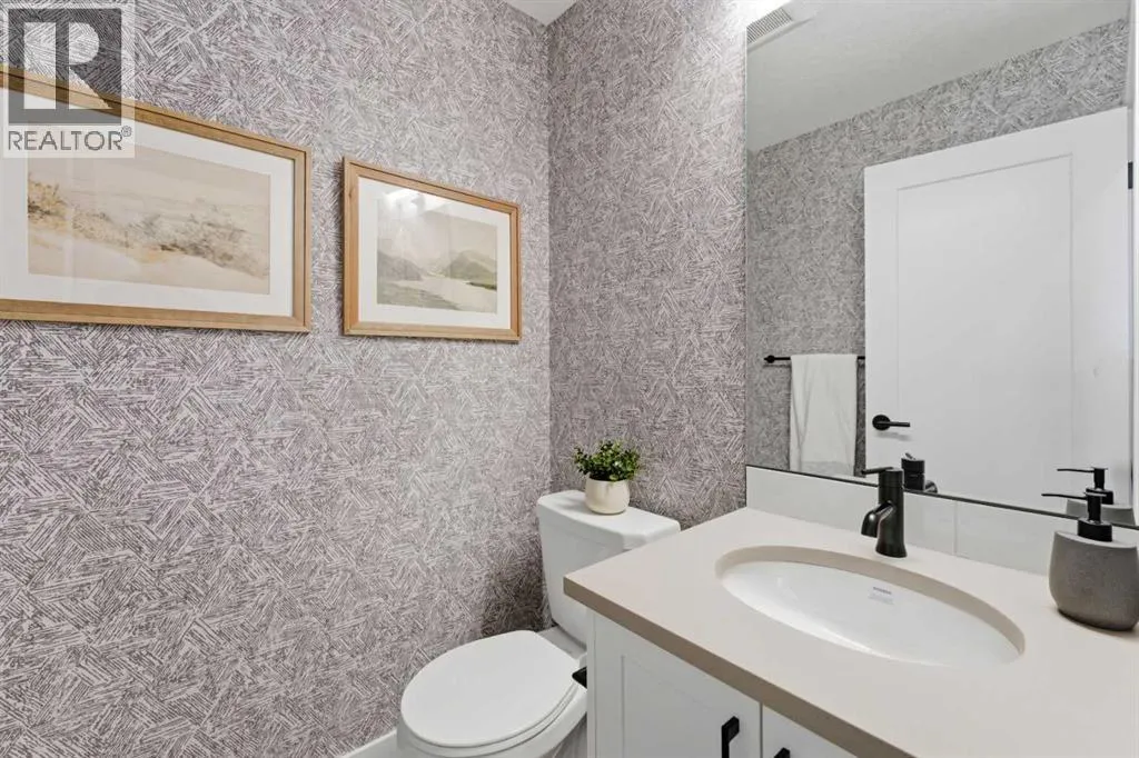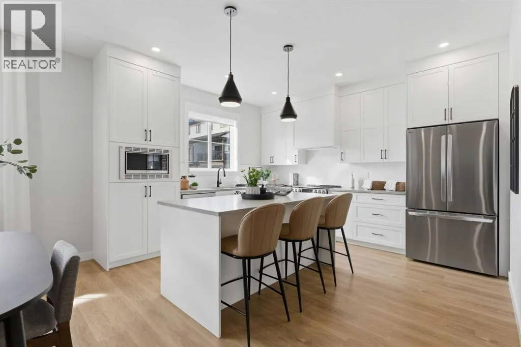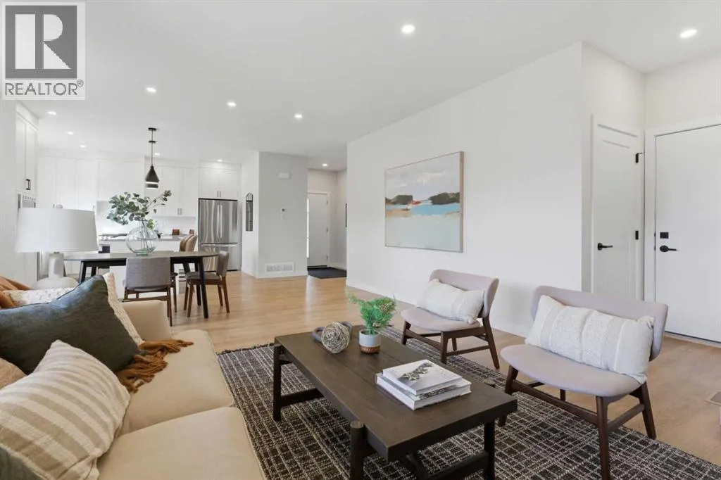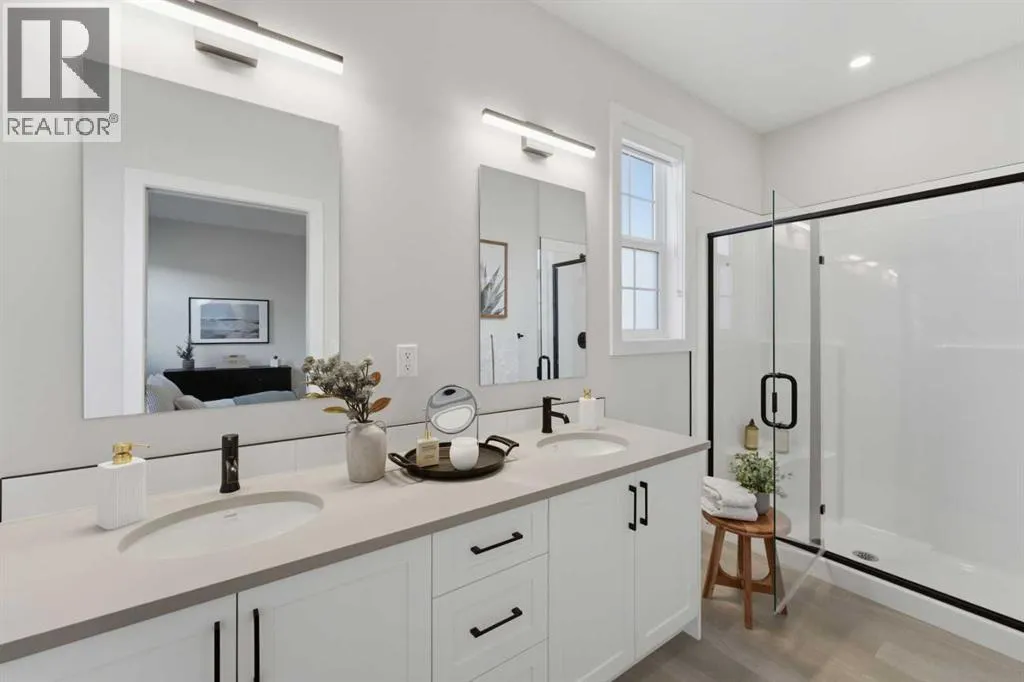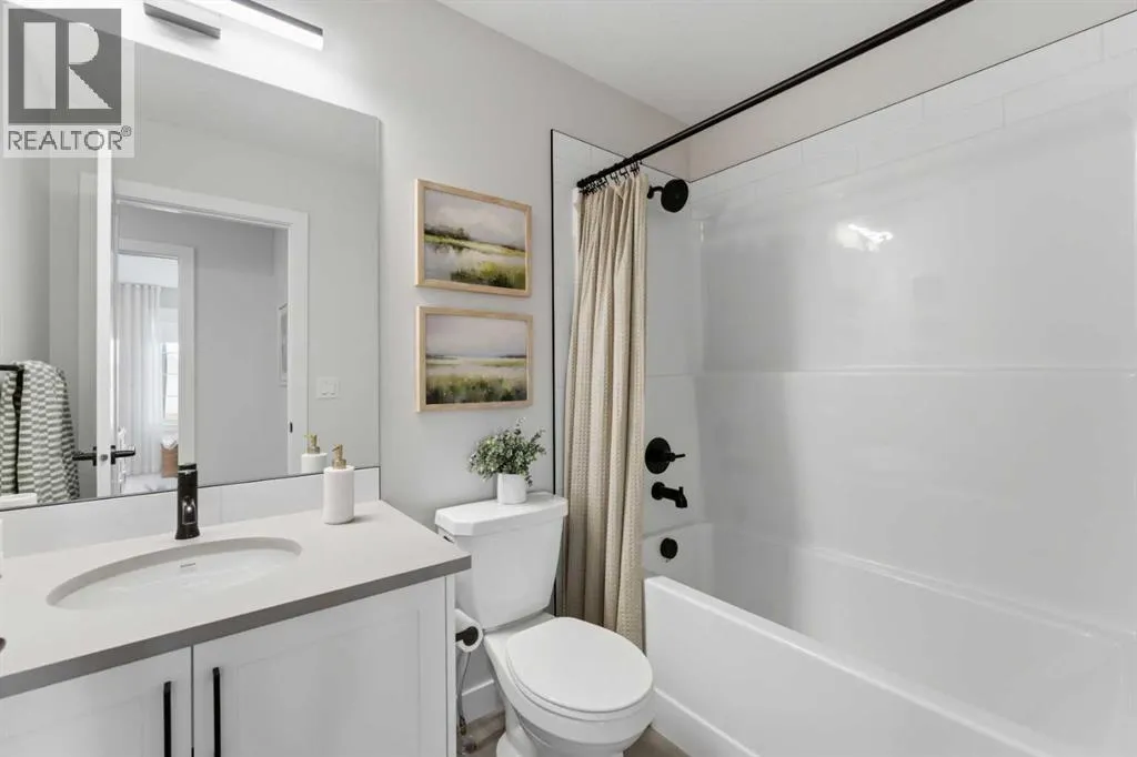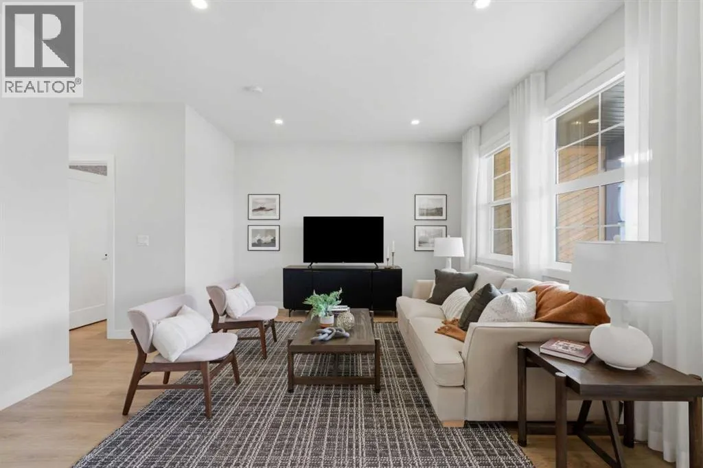 Experience luxury and convenience in the heart of Airdrieâs award-winning community, Cooperâs Crossing. As a former showhome, this stunning corner-unit townhome comes fully loaded with premium designer upgrades and the added comfort of central air conditioning already installed.The main level offers an open-concept layout with 9-foot ceilings, a gourmet kitchen featuring an oversized island and stainless steel appliances, and a private primary retreat with soaring vaulted ceilings and a spa-inspired ensuite. The sun-soaked upper level provides a versatile bonus room, two additional spacious bedrooms, and a dedicated laundry area. Enjoy sunshine all day and peaceful evenings on your covered south-facing balcony, complete with a gas line and views of the landscaped green space.This home is finished with a double attached garage and modern contemporary exteriors, offering a sophisticated "Lock & Leave" lifestyle. With low condo fees of $347/month, all exterior maintenance, snow removal, and landscaping are professionally managed. Discover effortless, maintenance-free living in one of Airdrie's most prestigious locations. Book your private tour today! (id:27476)