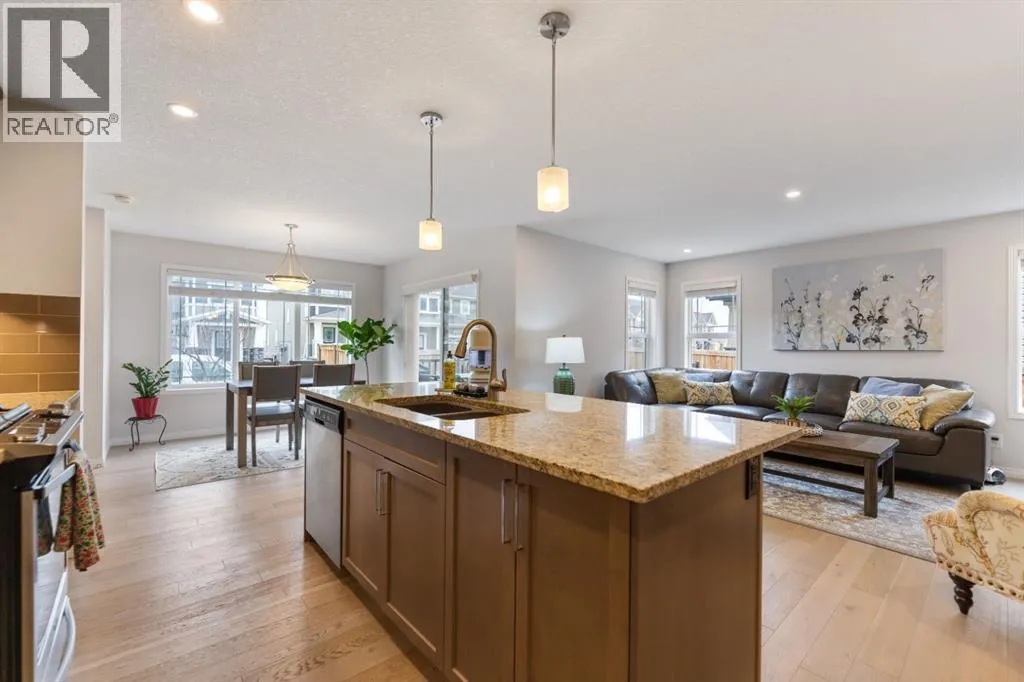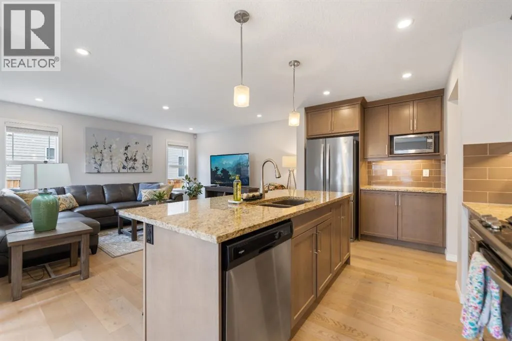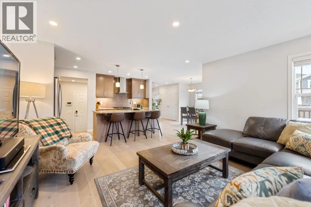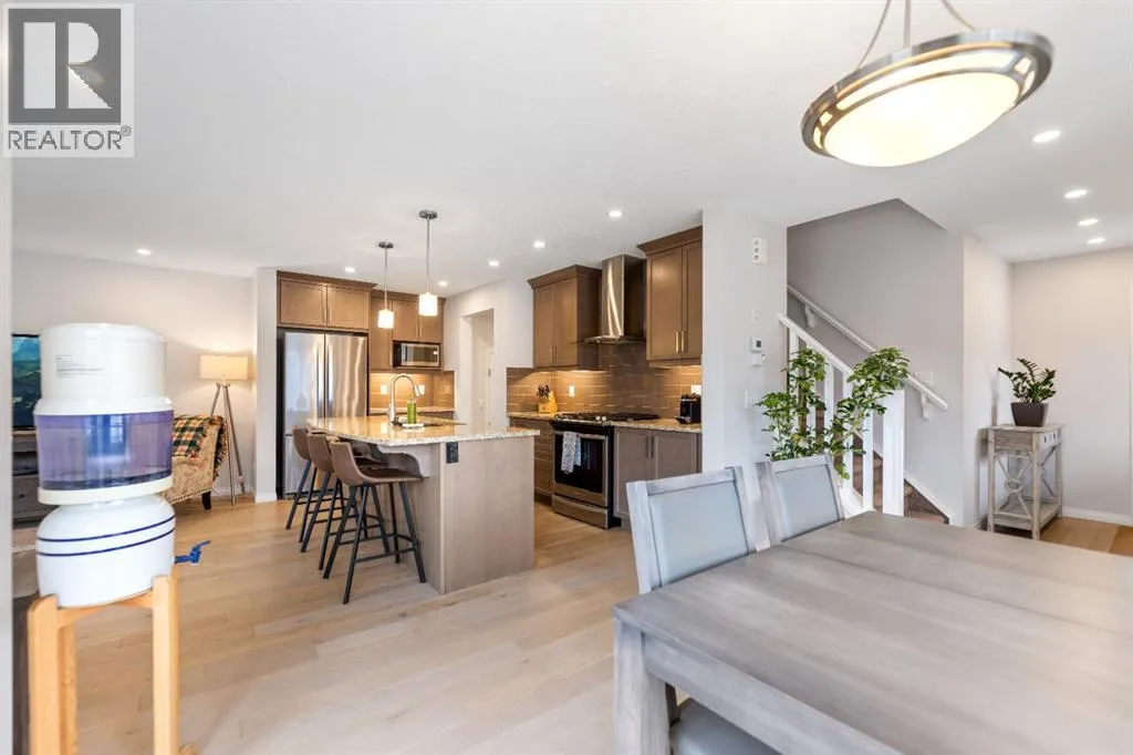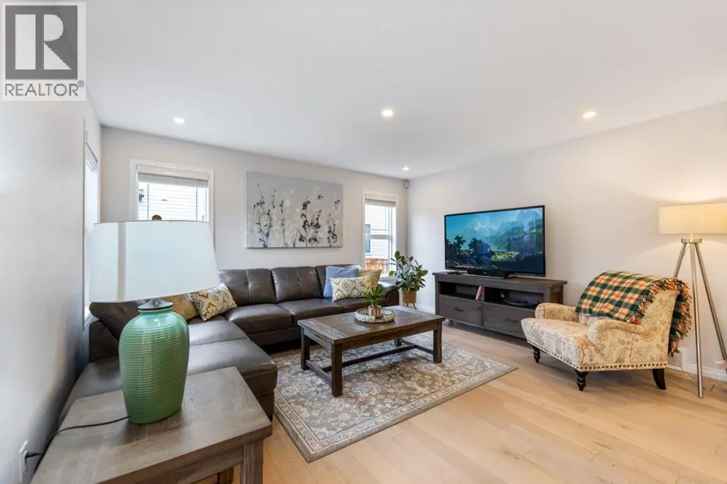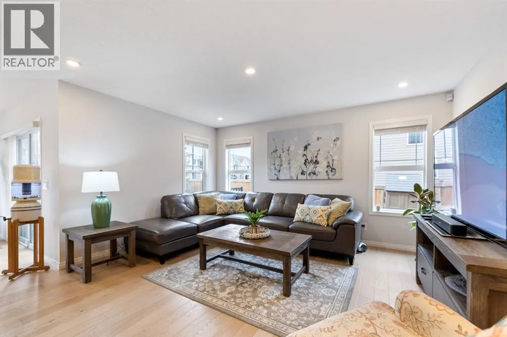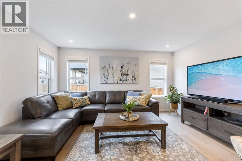 LIKE NEW | NO CONDO FEES | RARE CORNER LOT | CENTRAL A/C | WEST-FACING BACKYARD.Welcome to this stunning, fully upgraded townhouse situated on one of the largest and most desirable corner lots in the community. With only a limited number of end units available, this home offers added privacy, extra windows, and an abundance of natural light throughoutâall with NO condo fees.Step inside to a bright and elegant interior featuring luxury hardwood flooring throughout and a chef-inspired kitchen designed to impress. Enjoy custom stone countertops, natural wood cabinetry, and premium stainless steel appliances, including a gas stove. The functional layout, generous storage, and added gas line for BBQ on the back deck make this home perfect for both everyday living and entertaining.Upstairs, youâll find three spacious bedrooms, two full bathrooms, and a convenient upper-level laundry area with ample storage. The primary suite serves as a private retreat, complete with a walk-in closet and a well-appointed ensuite.This home is loaded with value-added upgrades, including:Central air conditioning; Hunter Douglas blinds throughout and custom vertical patio blinds; Security system with doorbell camera, motion sensors, and window alarms; Keypad entry for front door, back door, and garage; Fresh paint touch-ups throughout; The undeveloped basement provides a blank canvas, offering excellent potential to customize additional living space to suit your needs.Step outside to enjoy your private deck and expansive west-facing backyard, fully fenced and ideal for relaxing evenings, entertaining, or family time. The larger lot size is a rare find and a standout feature in the neighborhood.Located in a safe, quiet, and family-oriented community, this home is just minutes from schools, parks, and bus stops, with convenient access to shopping and major routes including Highway 2. Enjoy being only 10 minutes from CrossIron Mills and close to growing retail hubs in southwest Air drie, with a new recreation centre planned nearby (target completion 2028).This is a rare opportunity to own a bright, upgraded end-unit townhouse with a double attached garage, larger yard, and no condo feesâa combination that is increasingly hard to find. (id:27476)