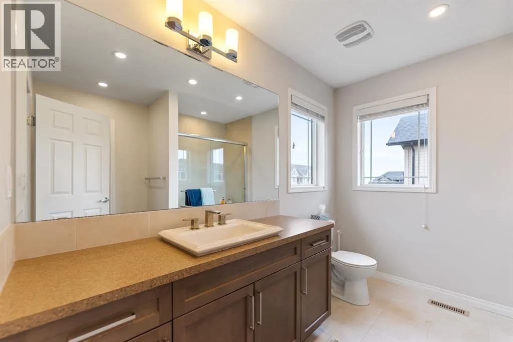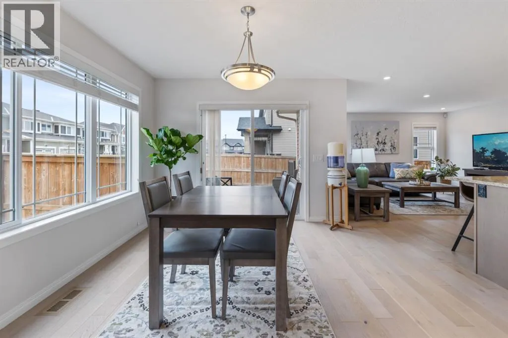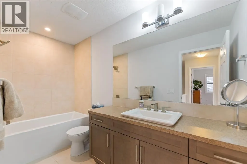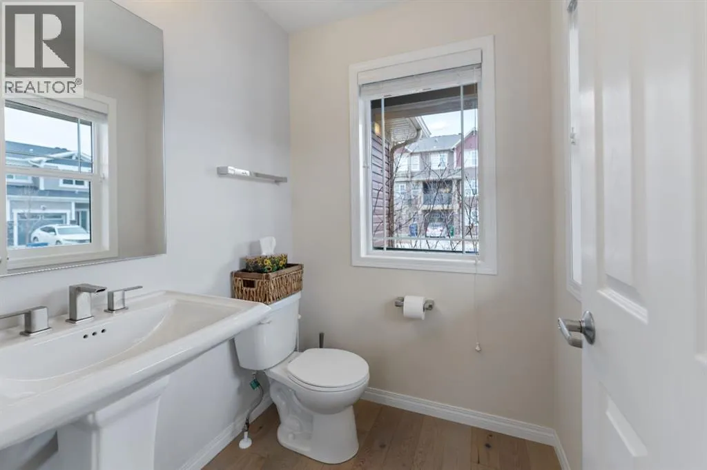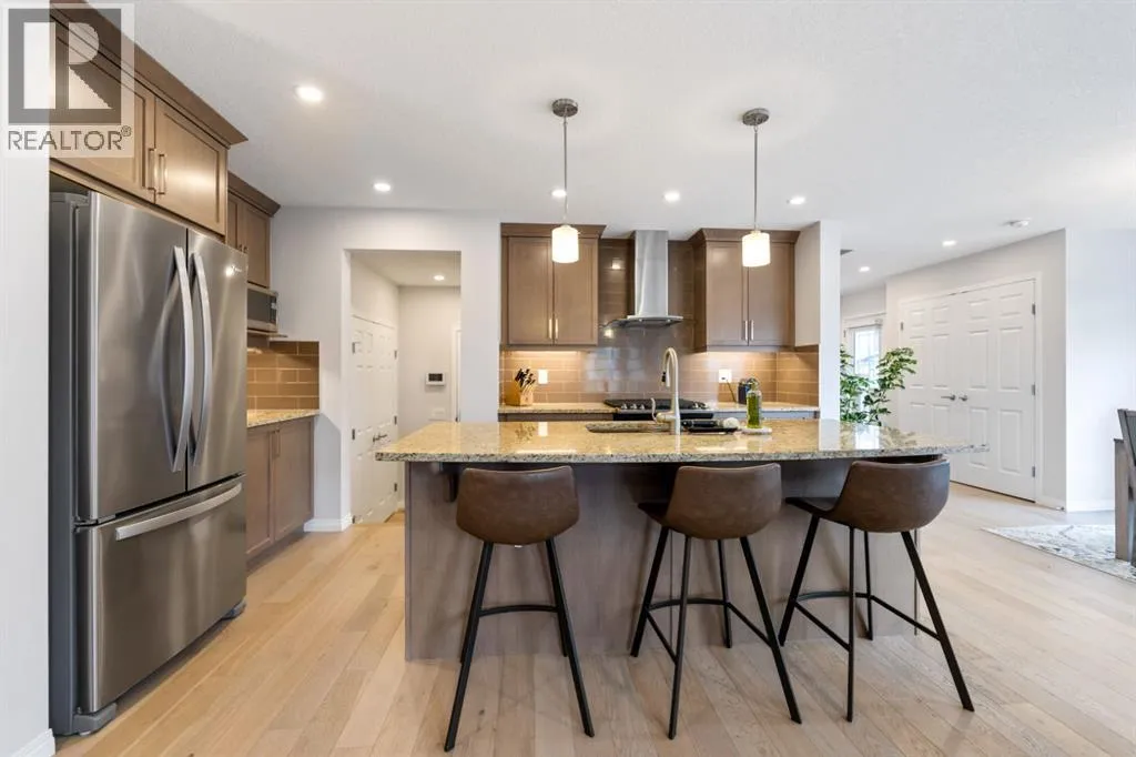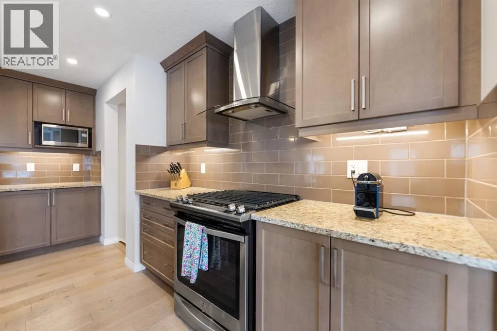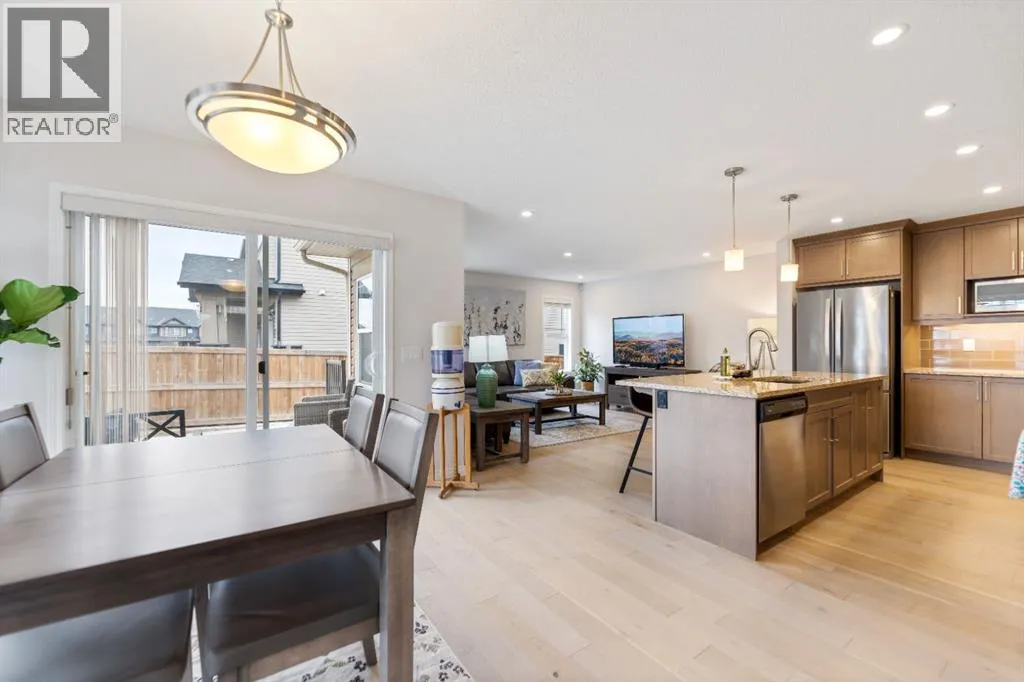 LIKE NEW | NO CONDO FEES | RARE CORNER LOT | CENTRAL A/C | WEST-FACING BACKYARD.Welcome to this stunning, fully upgraded townhouse situated on one of the largest and most desirable corner lots in the community. With only a limited number of end units available, this home offers added privacy, extra windows, and an abundance of natural light throughoutâall with NO condo fees.Step inside to a bright and elegant interior featuring luxury hardwood flooring throughout and a chef-inspired kitchen designed to impress. Enjoy custom stone countertops, natural wood cabinetry, and premium stainless steel appliances, including a gas stove. The functional layout, generous storage, and added gas line for BBQ on the back deck make this home perfect for both everyday living and entertaining.Upstairs, youâll find three spacious bedrooms, two full bathrooms, and a convenient upper-level laundry area with ample storage. The primary suite serves as a private retreat, complete with a walk-in closet and a well-appointed ensuite.This home is loaded with value-added upgrades, including:Central air conditioning; Hunter Douglas blinds throughout and custom vertical patio blinds; Security system with doorbell camera, motion sensors, and window alarms; Keypad entry for front door, back door, and garage; Fresh paint touch-ups throughout; The undeveloped basement provides a blank canvas, offering excellent potential to customize additional living space to suit your needs.Step outside to enjoy your private deck and expansive west-facing backyard, fully fenced and ideal for relaxing evenings, entertaining, or family time. The larger lot size is a rare find and a standout feature in the neighborhood.Located in a safe, quiet, and family-oriented community, this home is just minutes from schools, parks, and bus stops, with convenient access to shopping and major routes including Highway 2. Enjoy being only 10 minutes from CrossIron Mills and close to growing retail hubs in southwest Air drie, with a new recreation centre planned nearby (target completion 2028).This is a rare opportunity to own a bright, upgraded end-unit townhouse with a double attached garage, larger yard, and no condo feesâa combination that is increasingly hard to find. (id:27476)