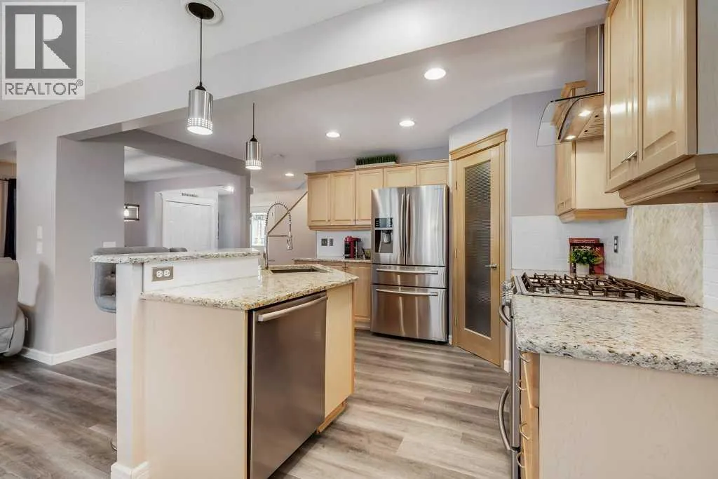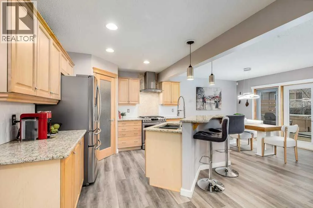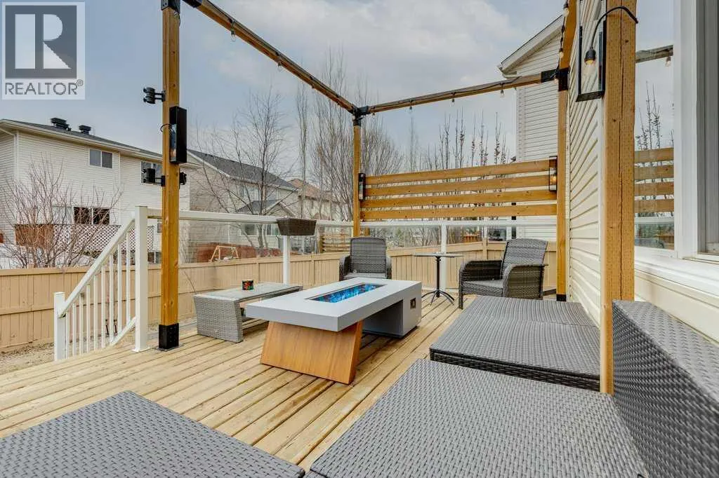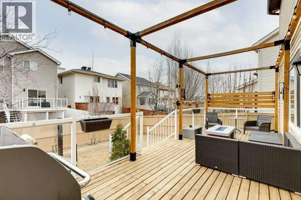 Welcome to the desirable, family-friendly community of Sagewood in Airdrie! This immaculate, 2-story original-owner home offers over 1,705 sq ft of well-designed living space on a quiet street, featuring 3 bedrooms and 3 bathrooms. Pride of ownership is evident throughout, with numerous updates and upgrades.The bright, open-concept main floor showcases a beautifully renovated kitchen complete with stainless steel appliances, sleek granite countertops, an island, ample cabinetry, a walk-in pantry and a cozy breakfast nook. Warm and inviting family room with a cozy fireplace. New luxury vinyl plank flooring runs throughout the main level. Upstairs, youâll find a spacious primary bedroom with a walk-in closet and a 5-piece ensuite featuring a relaxing soaker tub. Two additional generously sized bedrooms and a convenient upper-level laundry complete the upper floor. The undeveloped basement is roughed in and ready for your creative vision.Step outside to an entertainerâs dream backyard, featuring an extended deck, pergola, gas line for BBQ, and a gas line fire pit. Outdoor LED lighting can be programmed year-round for any occasion. Additional updates include central A/C, fresh paint, a newer washer and dryer, updated lighting and a newer furnace.Ideally located close to schools, shopping, and pathways, with easy access to all amenities. Check out the 3D tour or book your private showing today! (id:27476)