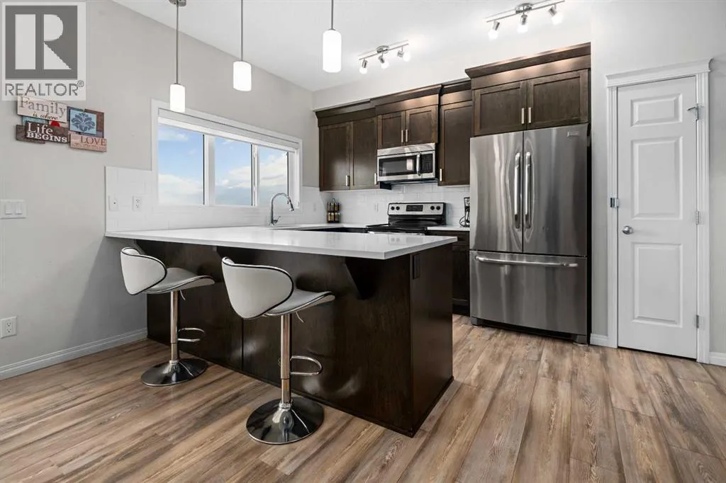FULLY FINISHED WALKOUT - BACKING ONTO SCHOOL YARD - NO CONDO FEES - ALMOST 2200 SF â ATTACHED GARAGE. Welcome to 673 Hillcrest Road, an elegant family friendly home with NO CONDO FEES! and almost 2200 SF of FULLY DEVELOPED living space. This beautifully maintained 3-bedroom, 3-bathroom home is designed for comfort and functionality. It includes a spacious single front-attached garage and backs directly onto Northcott Prairie School, which offers Kâ8 education. Step into a bright and inviting open floor plan featuring a generous front entry and an open-concept main floor, perfect for hosting or everyday living. The modern kitchen is a true showstopper, seamlessly flowing into the great room and dining nookâcreating the ultimate setting for hosting friends and family. The space is anchored by a stunning stone fireplace with a mantle, adding warmth and character to the great room. Cooking is made fun again with a large center island, spacious pantry, quartz countertops and stainless steel appliances. Everything you need to entertain in style. Upstairs, you'll find three generously sized bedrooms, including a primary suite that feels like a retreat, with its luxurious 4-piece ensuite, quartz counters, glass door shower, dual vanities, and a large walk-in closet for ultimate convenience. The laundry room is also located on this level. 2 additional bedrooms & another full bath round out the upper floor. The FULLY FINISHED WALKOUT BASEMENT expands your living space even further with a large family/games room and full 4-piece bathroom, perfect for making the most out of your summer days with access to the large deck and backyard, or a cozy movie night inside. This home truly has it allâfrom spacious dining and gathering areas to cozy touches that make it feel like home. The location is unbeatable, with schools, shopping, and entertainment just a short walk away. Whether you're hosting family gatherings or enjoying a quiet evening in, this home offers comfort, convenience, a nd style in every corner. Book your private viewing today! (id:27476)