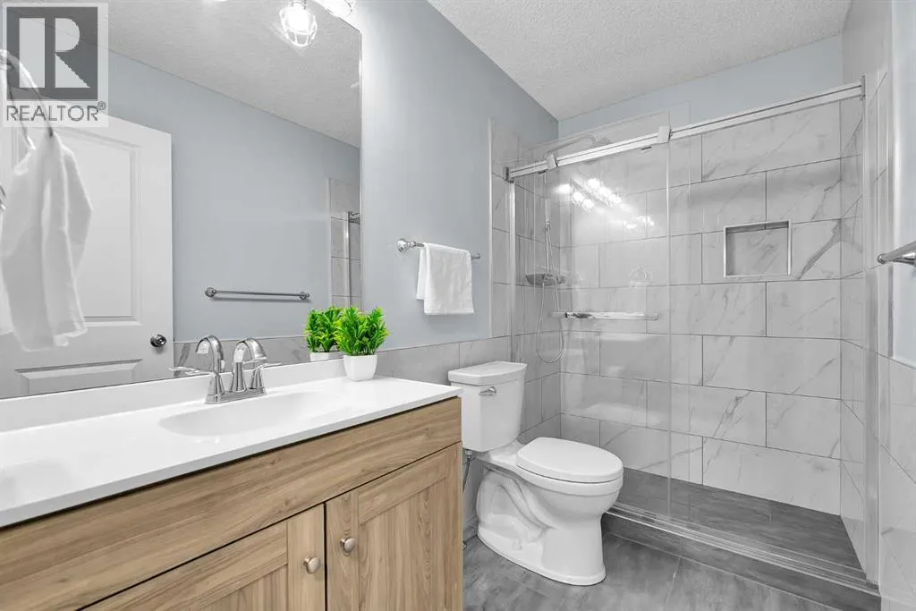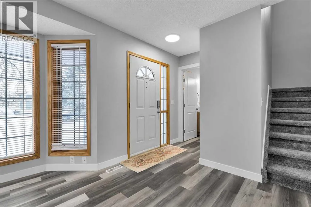 This beautifully updated and fully finished home offers nearly 2,000sqft of functional living space designed for modern family lifeâcomplete with 3 bedrooms, 2.5 bathrooms and an OVERSIZED DOUBLE DETACHED GARAGE with RV PARKING making FOUR parking spots! Located in beautiful Edgewater with mature over sized lots you are close to schools, shopping and of course Nose Creek Park.The main floor is bright and welcoming, featuring new luxury vinyl plank flooring, fresh paint, and clean white baseboards throughout. A sun-filled living room from the bay window creates the perfect place to unwind, while the spacious kitchen complete with an island, abundant cabinetry, and generous counter space, flows seamlessly into a large dining area made for hosting dinners comfortably. Step outside to enjoy a spacious west-facing backyard and expansive deck, ideal for entertaining, relaxing, or soaking up the afternoon sun.Upstairs, the primary bedroom offers a private ensuite, while two additional bedrooms and a fully redone spa inspired bathroom provides plenty of room for family or guests. All bathrooms have been recently renovated plus new carpet upstairs adds a fresh cozy finish.With its extensive bathroom upgrades, A/C, exceptional outdoor space, and versatile parking options, this home delivers the perfect blend of comfort, function, and elevated design! *Check out the virtual tour* (id:27476)