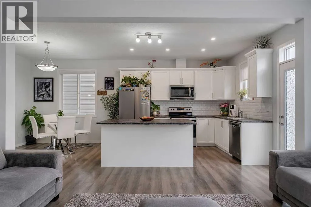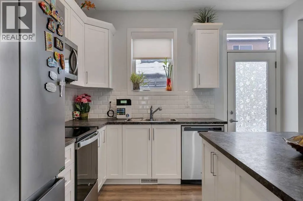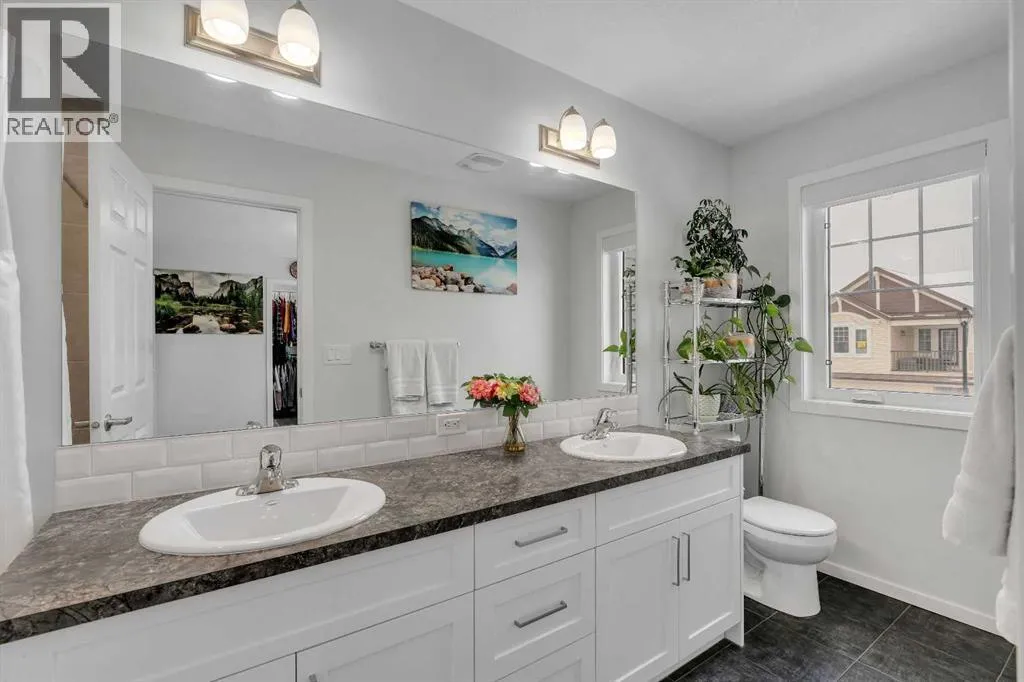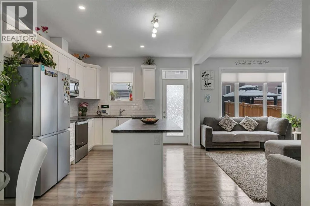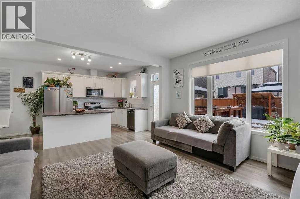Welcome to 821 Windrow Green SW, a beautifully designed home offering modern finishes, generous living space, and exceptional functionality for todayâs lifestyle. Situated on a quiet street with charming curb appeal, this home features a sun-filled south-facing backyard with upgraded landscaping, perfect for relaxing or entertaining. Step inside to an open-concept main floor designed for both everyday living and hosting guests. The stunning kitchen showcases crisp white cabinetry, stainless steel appliances, a classic white subway tile backsplash, and abundant counter space, along with a large center island with eating barâideal for casual meals or gathering with family and friends. The bright living room is filled with natural light from the large south-facing windows overlooking the backyard, creating a warm and inviting atmosphere. The main floor is completed with a convenient powder room, additional closet storage, and direct access to the double attached garage. Upstairs, the thoughtful layout provides privacy and comfort with a spacious bonus room separating the primary suite from the two secondary bedrooms. The expansive primary retreat features a large walk-in closet with ample shelving and hanging space, along with a luxurious 5-piece ensuite complete with dual sinks, generous counter space, and a deep soaker tub. An upper-floor laundry room adds to everyday convenience. Throughout the home youâll appreciate hard surface flooringâincluding the stairs and upper levelâmodern vinyl plank flooring, central air conditioning, knockdown ceilings, and transom windows above exterior doors for added natural light. Room sizes are generous, offering comfortable living for families of all sizes. Additional highlights include an oversized hot water tank ideal for larger families and partial basement development featuring a fourth bedroom, providing flexibility for guests, a home office, or growing families. Just a 3-minute drive to Windsong Heights School (Kâ9) and withi n walking distance to Osborne Park, perfect for outdoor activities and green space enjoyment. Conveniently situated near the 8th Street and 40 Avenue overpass, as well as other major roadways, the property provides seamless access throughout the city. Public transportation, shopping centres, and additional parks are all close by, making everyday living both easy and connected. (id:27476)