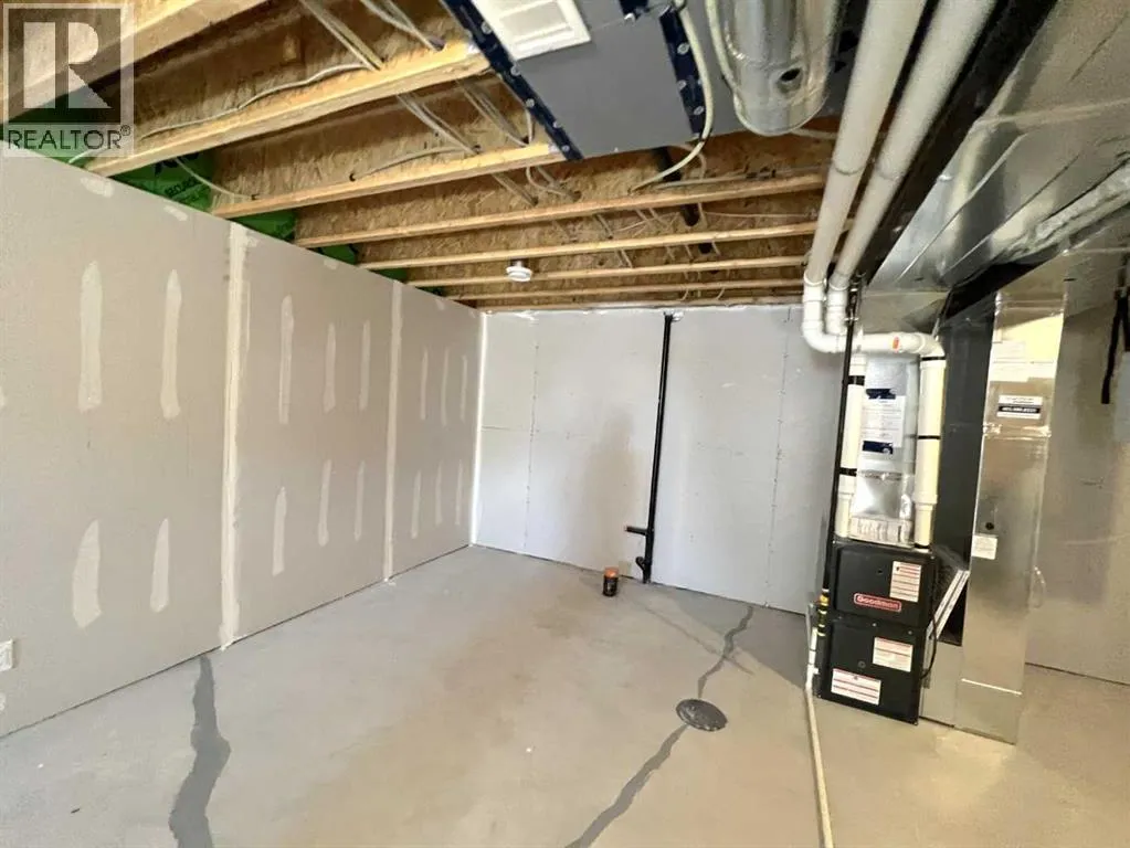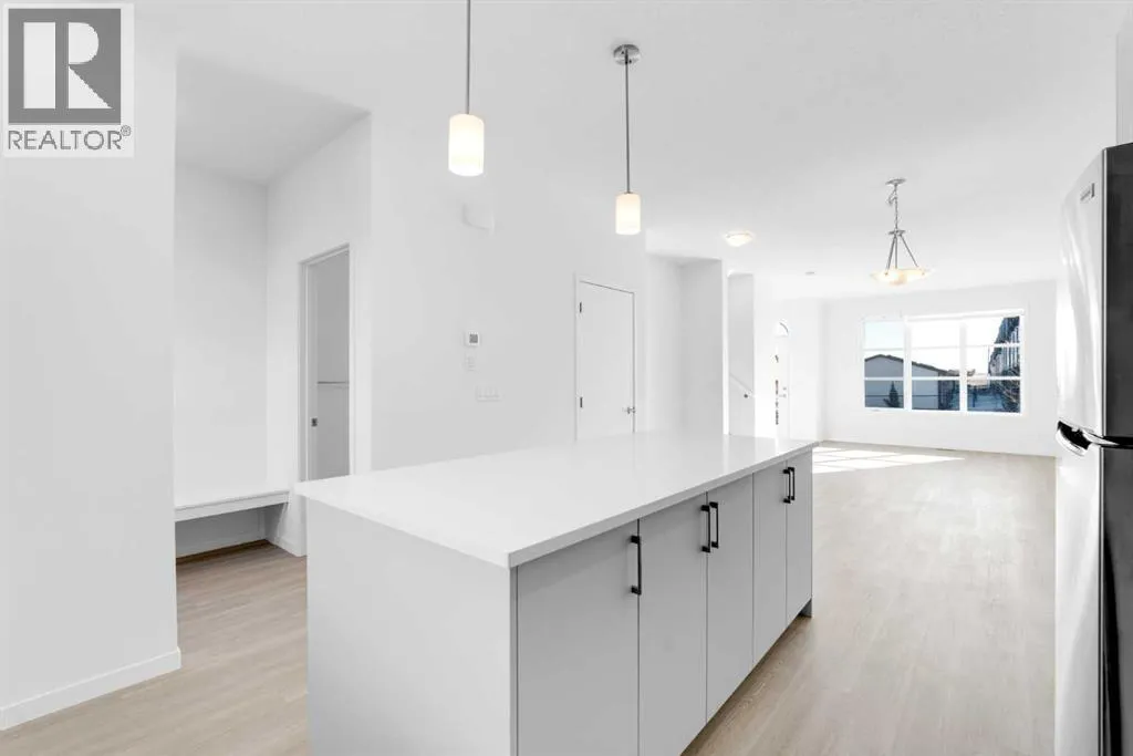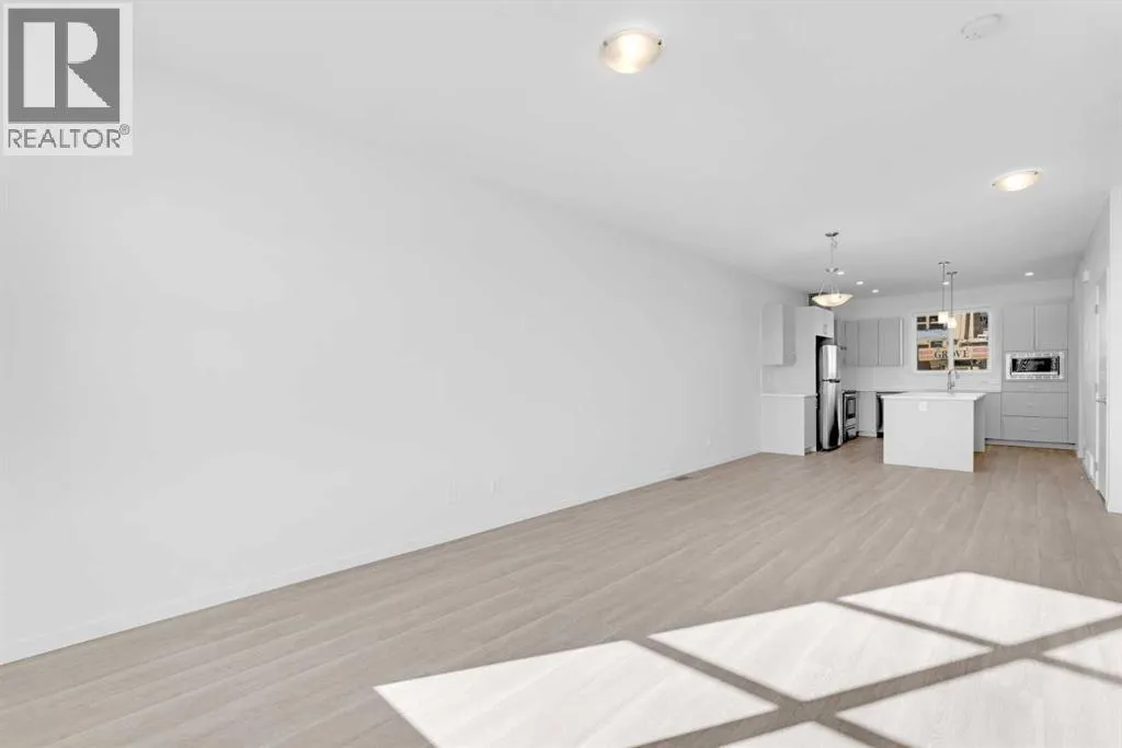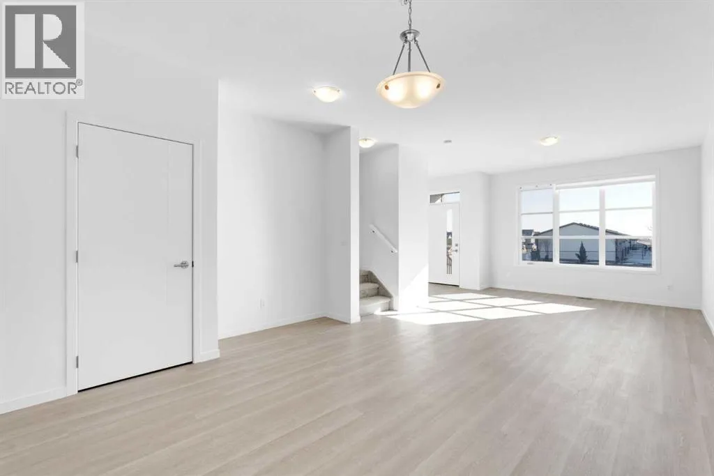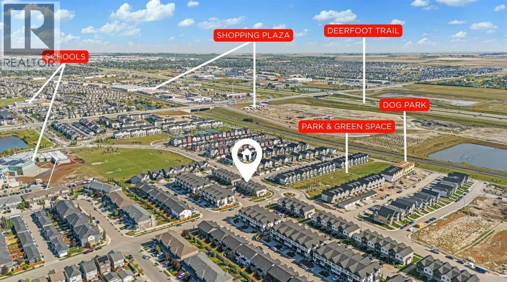 Welcome to this beautifully maintained east-facing No-Condo Fee townhouse offering 3 bedrooms, 2.5 bathrooms, and located in the highly sought-after South Point community in SW Airdrie. Step inside to a bright and welcoming living room with large east-facing windows that fill the space with natural light. The open-concept layout flows seamlessly to the rear kitchen, featuring a central island, ample cabinetry, and stainless steel appliances. Positioned at the back of the home, the kitchen overlooks the backyard and offers direct access, making it both functional and inviting. The main floor is completed by a dining area, a convenient mudroom, and a 2-piece bathroom.Upstairs, the primary bedroom features a walk-in closet and a private 4-piece ensuite with a standing shower. Two additional well-sized bedrooms, a 4-piece main bathroom, a versatile den and upper-floor laundry complete this level.The unfinished basement comes with rough-ins for a future bathroom, offering great potential for customization. Outside, enjoy the convenience of a 2-car rear concrete parking pad.Located in the vibrant South Point community, youâll have access to parks, playgrounds, basketball and tennis courts, an off-leash dog park, and a scenic pond. An elementary school is just steps away, and a nearby commercial plaza features Sanjha Punjab, Starbucks, daycares, and more. With quick access to Deerfoot Trail, youâre approximately 20 minutes from YYC Airport and 25 minutes to downtown Calgary. Major amenities such as Costco, CrossIron Mills, Genesis Place, Walmart, Co-op, pharmacies, and restaurants are all just a short drive away.Donât miss this opportunity to own a beautiful home in a growing community. Book your showing today. (id:27476)