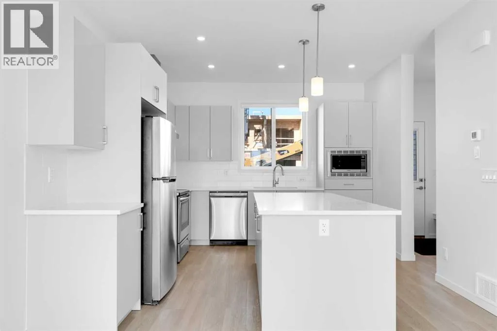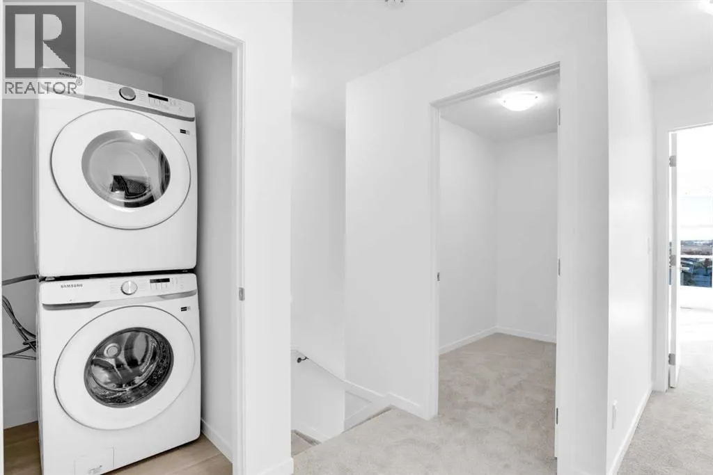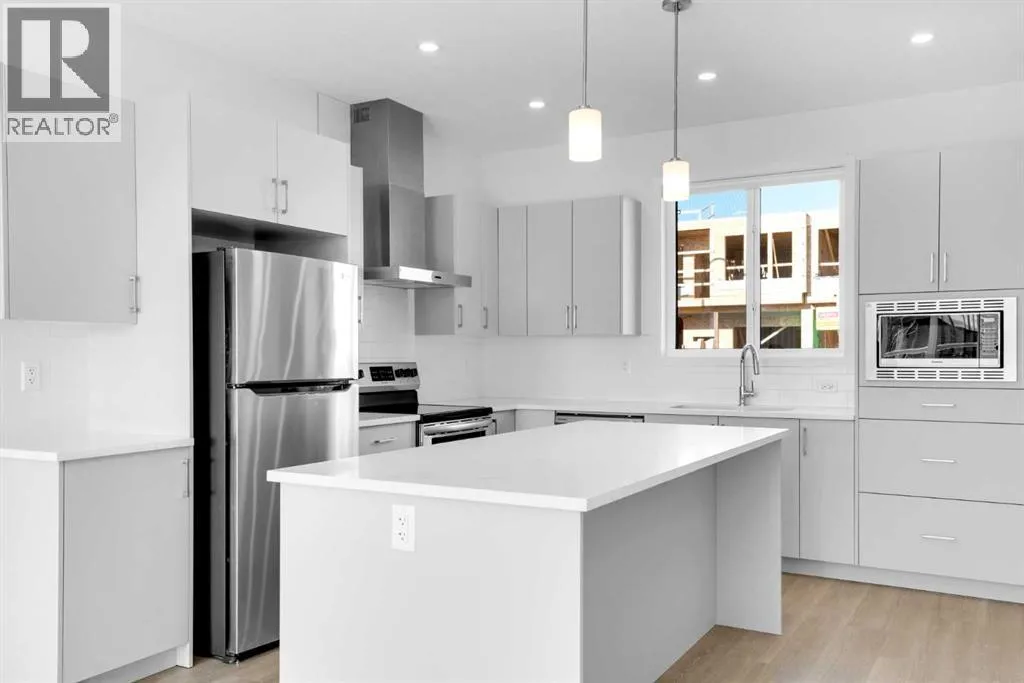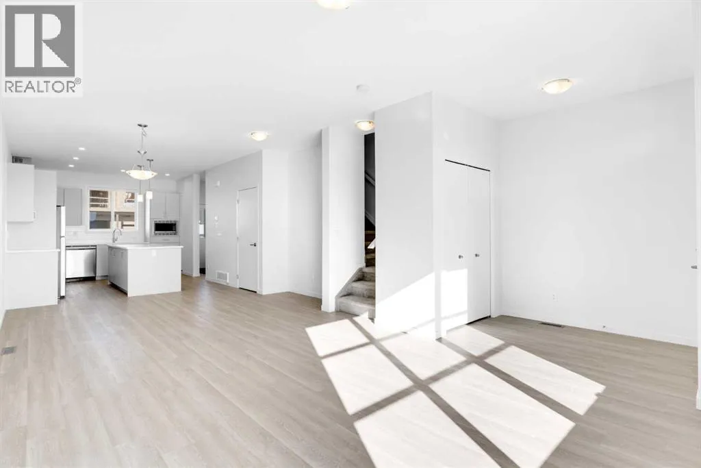 Welcome to this beautifully maintained east-facing No-Condo Fee townhouse offering 3 bedrooms, 2.5 bathrooms, and located in the highly sought-after South Point community in SW Airdrie. Step inside to a bright and welcoming living room with large east-facing windows that fill the space with natural light. The open-concept layout flows seamlessly to the rear kitchen, featuring a central island, ample cabinetry, and stainless steel appliances. Positioned at the back of the home, the kitchen overlooks the backyard and offers direct access, making it both functional and inviting. The main floor is completed by a dining area, a convenient mudroom, and a 2-piece bathroom.Upstairs, the primary bedroom features a walk-in closet and a private 4-piece ensuite with a standing shower. Two additional well-sized bedrooms, a 4-piece main bathroom, a versatile den and upper-floor laundry complete this level.The unfinished basement comes with rough-ins for a future bathroom, offering great potential for customization. Outside, enjoy the convenience of a 2-car rear concrete parking pad.Located in the vibrant South Point community, youâll have access to parks, playgrounds, basketball and tennis courts, an off-leash dog park, and a scenic pond. An elementary school is just steps away, and a nearby commercial plaza features Sanjha Punjab, Starbucks, daycares, and more. With quick access to Deerfoot Trail, youâre approximately 20 minutes from YYC Airport and 25 minutes to downtown Calgary. Major amenities such as Costco, CrossIron Mills, Genesis Place, Walmart, Co-op, pharmacies, and restaurants are all just a short drive away.Donât miss this opportunity to own a beautiful home in a growing community. Book your showing today. (id:27476)