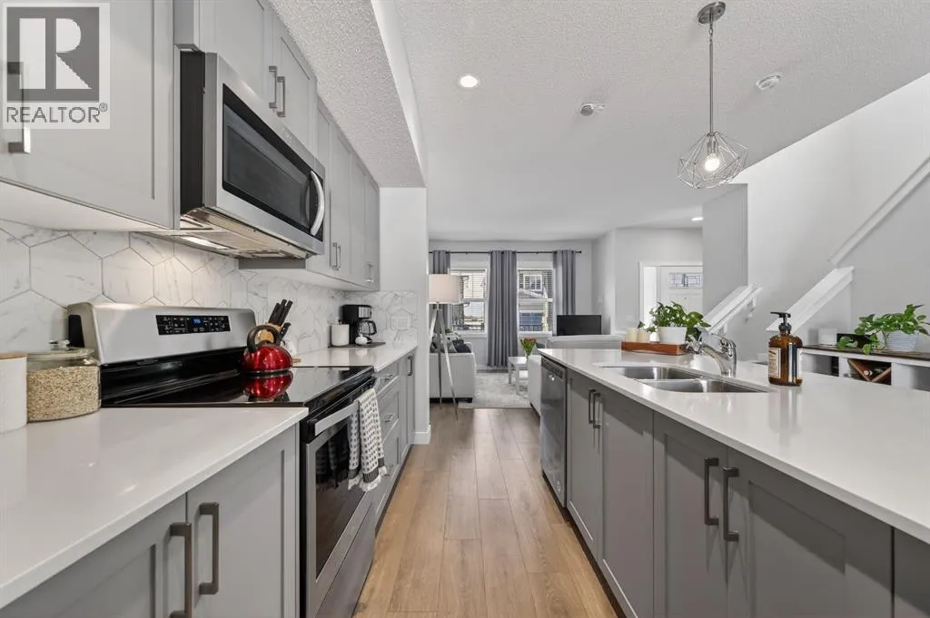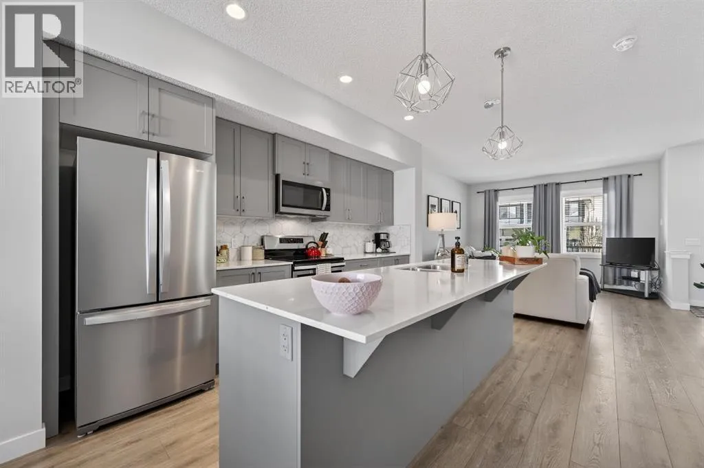 Welcome to this beautiful home, crafted by Shane Homes in the desirable Hillcrest community. This two-storey Duplex features Smart Home technology, appears brand new and boasts exceptional curb appeal. This home is a prime opportunity for you. It includes a spacious front veranda, beautiful landscaping and a stone facade. The bright, open-plan interior is impressive, with nine-foot ceilings on the main level, a spacious front room with large windows and a formal living area. The dining area, spacious kitchen and island, all with gleaming quartz countertops, perfectly complement the upgraded stainless appliances and grey cabinets. Upstairs, you will find a spacious primary suite with a walk-in closet, complete with organizers and a 3 piece en-suite. Two other nicely appointed bedrooms and a convenient upstairs laundry room and 4 piece main bath complete the upper level. The unspoiled basement offers design potential. The backyard features a large deck ideal for barbecues, a fully fenced area and a double garage measuring 19â4â x 21â2â. Located near schools, parks and shopping, this home presents a fantastic opportunity. Book your private viewing today. (id:27476)