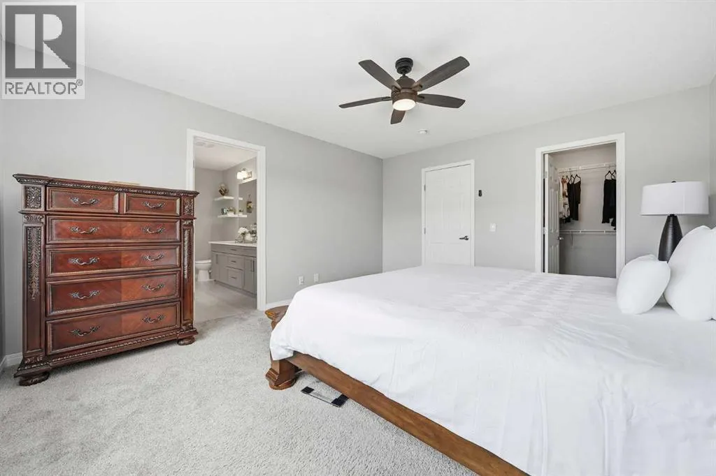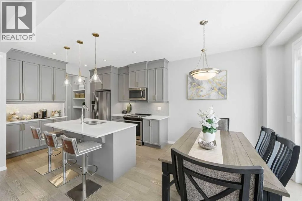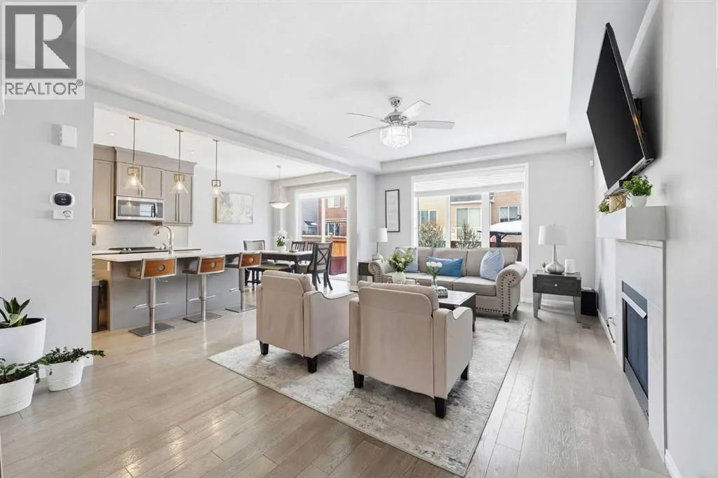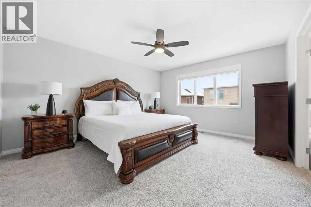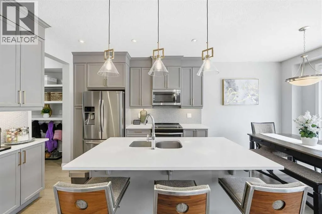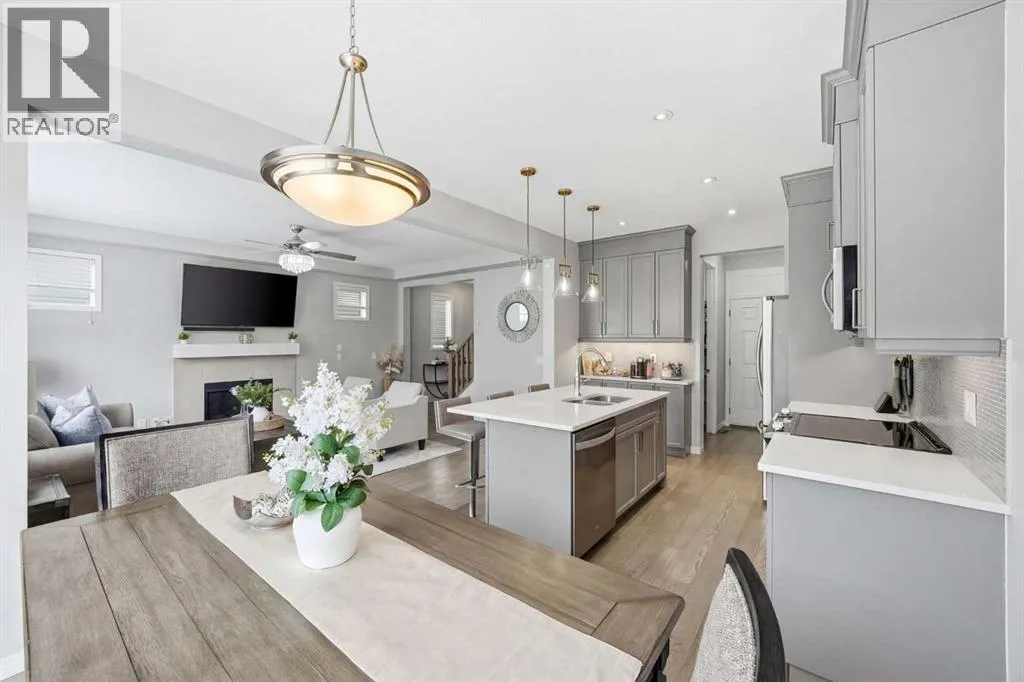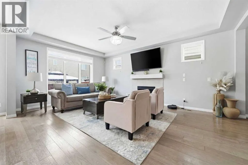 Located on a quiet street just steps from parks and scenic pathways, this beautifully upgraded family home offers nearly 2,800 sq. ft. of modern living space. The bright, open-concept main floor features hardwood flooring, 9â ceilings, and upgraded stainless steel appliances including a spacious fridge and electric range, walk-through pantry, and large island.The main level also includes a spacious living room with gas fireplace, dining area overlooking the backyard, and a den/office. Upstairs offers 3 bedrooms, including a primary suite with walk-in closet and spa-like ensuite featuring a double vanity, walk-in shower, and soaker tub, along with upper laundry.The partially finished basement includes 2 bedrooms and 1 bathroom, with one bedroom and the bathroom fully completed, offering excellent potential for future development or extended family living.Enjoy the fully landscaped, private backyard with stamped concrete patio and gazebo, perfect for entertaining. Situated in the family-friendly South Windsong community close to schools, shopping, parks, and amenities.Move-in ready and beautifully maintainedâthis home is a must-see!! (id:27476)