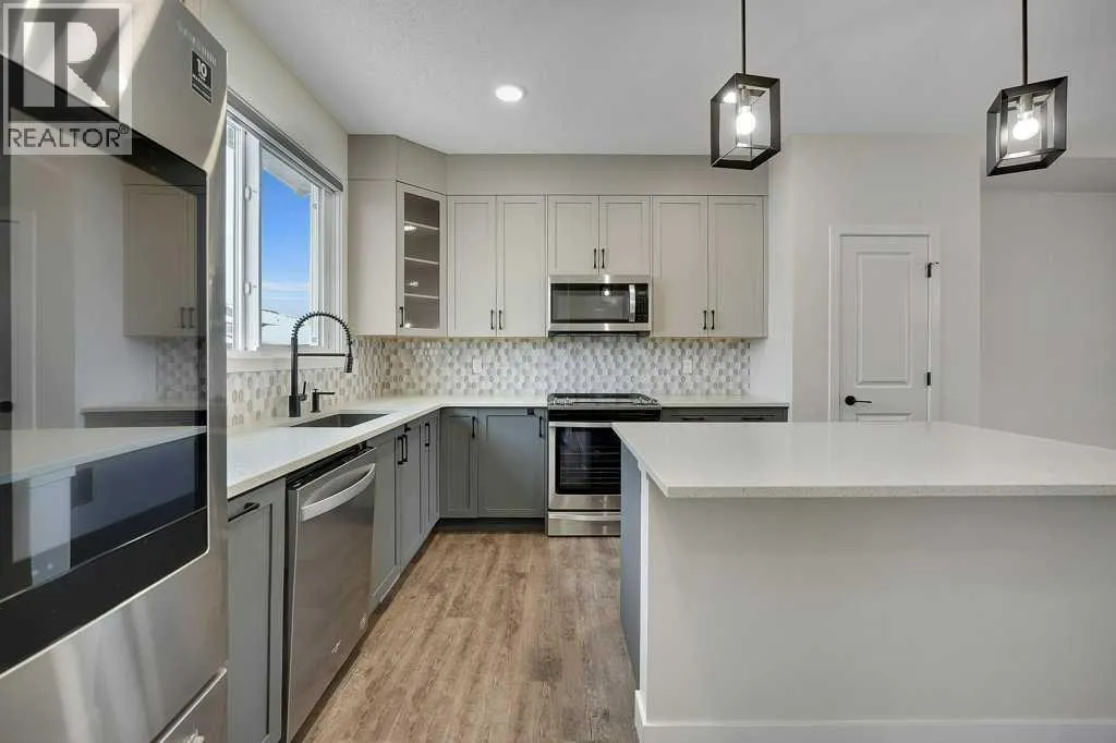 Welcome to this Extraordinary 3-bedroom, 2.5-bathroom duplex nestled in the serene community of Lanark Southeast Airdrie. This 1599.51 sqft home with a central cooling system provides excellent living for those seeking a modern and well-designed home. The main floor features a large living area, a dining area, a sizeable den and a large kitchen equipped with modern appliances and a pantry for all your storage needs. The upper level boasts a spacious living room, a large primary bedroom with a closet and a full ensuite bathroom. Two additional bedrooms and another full bathroom complete the second floor. This property comes with a fence and a backyard. This duplex has a detached double-car garage. With quick access to anywhere in Airdrie and multiple nearby shopping options, including Cross Iron Mills etc. The fully finished legal basement suite features a separate side entrance, 1 additional bedroom, a full bathroom, offering endless possibilities for multi-generational living or potential rental income. This house's basement is tenanted. It is a great opportunity for investment. This stunning home is a MUST-SEE! Don't miss out. BOOK YOUR VIEWING TODAY! (id:27476)