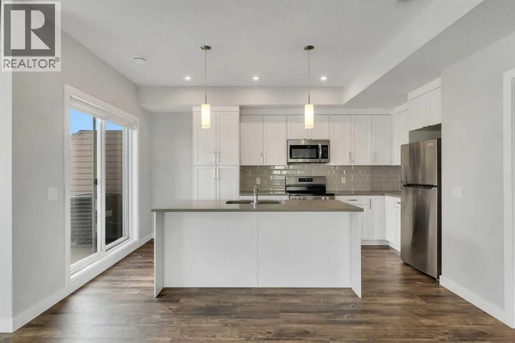 Welcome to this gorgeous upgraded end unit townhome with over 1500 sq ft of quality living space. Main floor very open concept living and dining room. Upgraded kitchen with quartz countertops, center island, and stainless steel appliances. Balcony off the kitchen to enjoy your morning coffee and good for BBQ. 3 spacious bedrooms. 2 1/2 baths. Primary bedroom with it's own 4 piece ensuite and walk in closet. Central air conditioning for those hot summer days. Single attached garage plus an extra driveway parking spot for your convenience. Visitor parking also available in front of the unit. Amazing neighborhood within minutes you will finds of shopping and schools. Immediate possession available. Shows like a show home! Please note the property is virtually staged (id:27476)