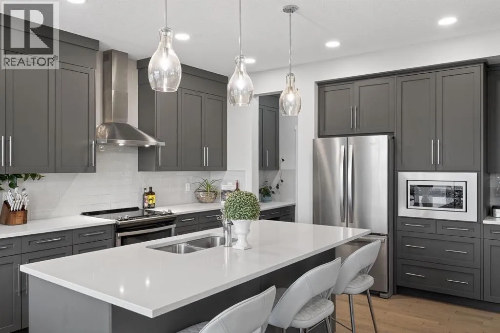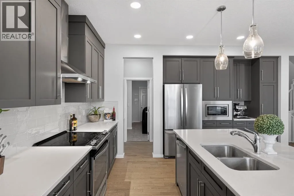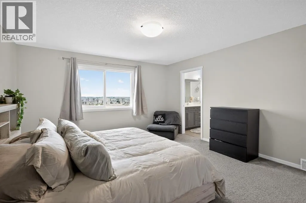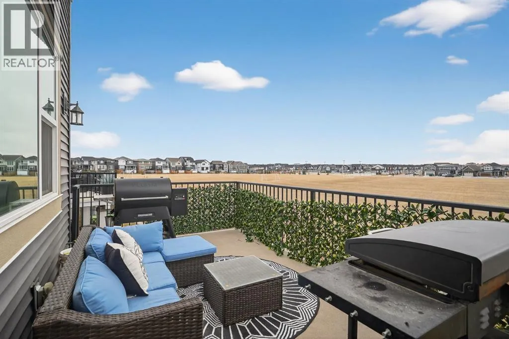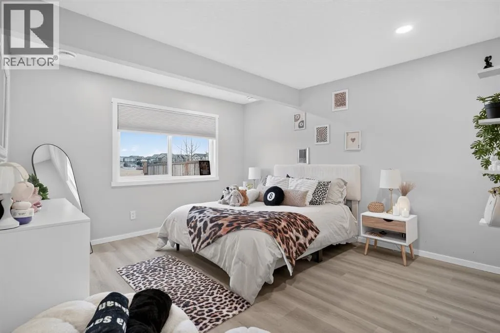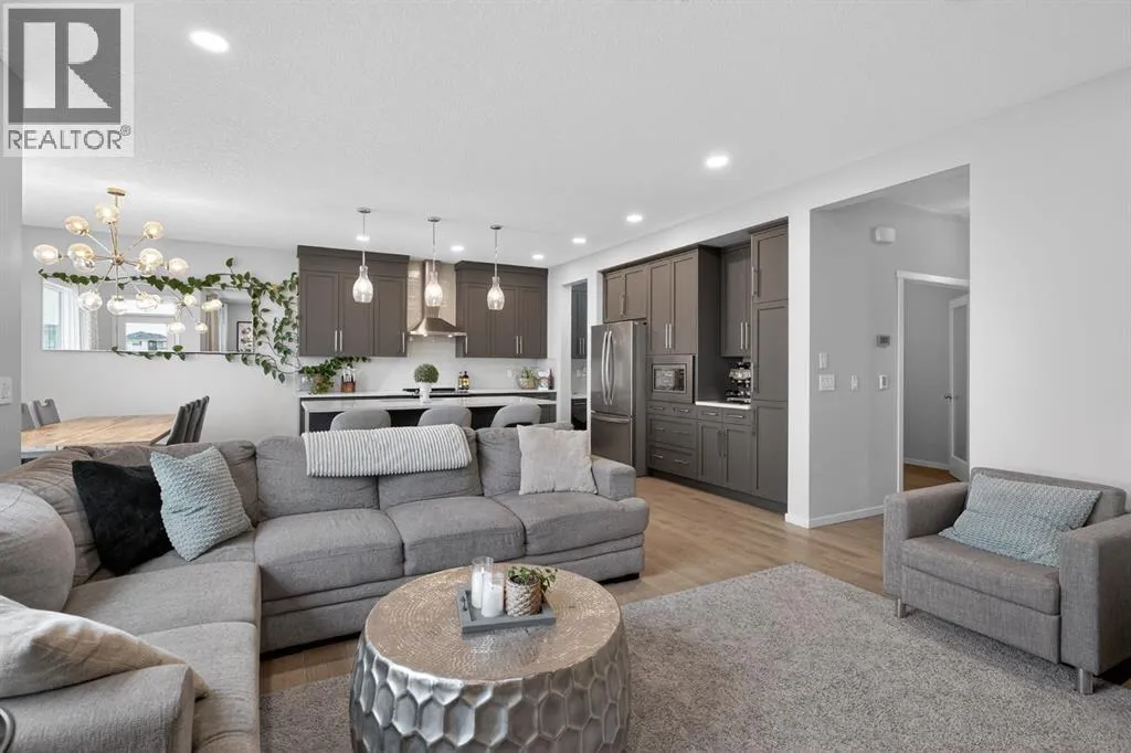 Backing onto expansive green space with no rear neighbours and unobstructed views, this fully finished walkout in Kings Heights offers over 3,100 sq ft of developed living space, with 5 bedrooms and 3.5 bathrooms, designed for those who value space, flexibility, and a setting thatâs becoming increasingly hard to find.Tucked into a quiet close, this home combines a bright, open layout with a location that truly sets it apart. The south-facing main floor features 9â ceilings, hardwood flooring, and a seamless flow between the kitchen, dining, and living areas.The kitchen is thoughtfully designed with a large island, quartz countertops, stainless steel appliances, and a walk-through pantry connecting directly to the mudroom and heated double attached garage.A main floor office with French doors creates a dedicated workspace, while upstairs, the bonus room provides additional living space. The primary suite is a true retreat, featuring a beautifully appointed 5-piece ensuite with a soaker tub and separate shower. Two additional generously sized bedrooms, both with walk-in closets, along with upper-floor laundry, complete the level.The fully finished walkout basement adds even more versatility, offering two additional bedrooms, a 3-piece bathroom, ample storage, and direct access to the backyard, ideal for guests, teenagers, or multi-generational living.The landscaped and fenced backyard opens directly onto wide green space with uninterrupted views and access to nearby pathways.Additional features include Gemstone exterior lighting, a heated garage, and excellent storage throughout.Located close to schools, parks, and everyday amenities, this is a well-rounded home in one of Airdrieâs most established communities. (id:27476)