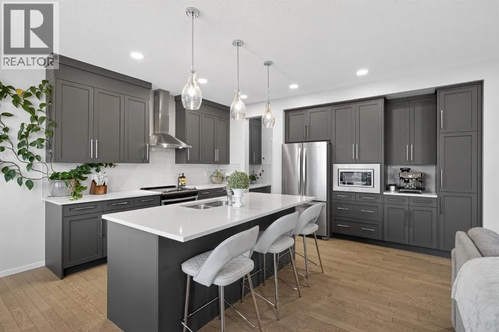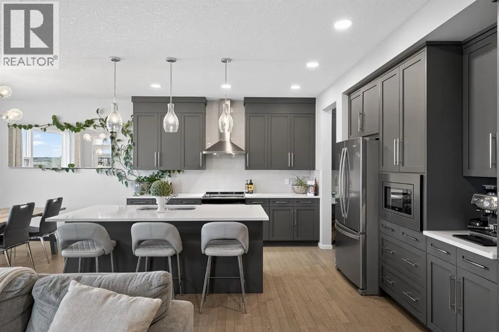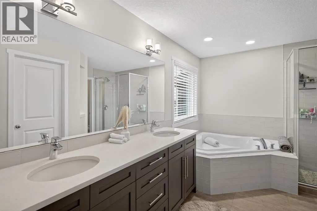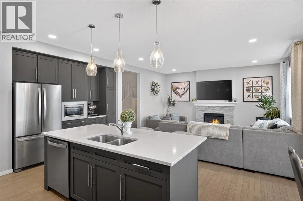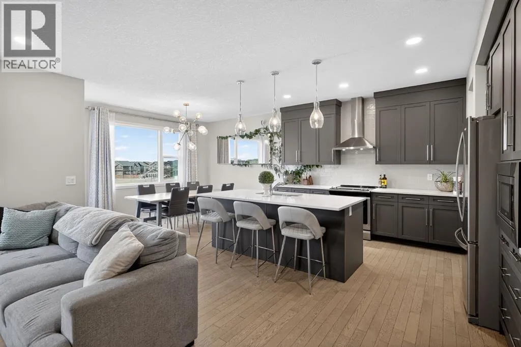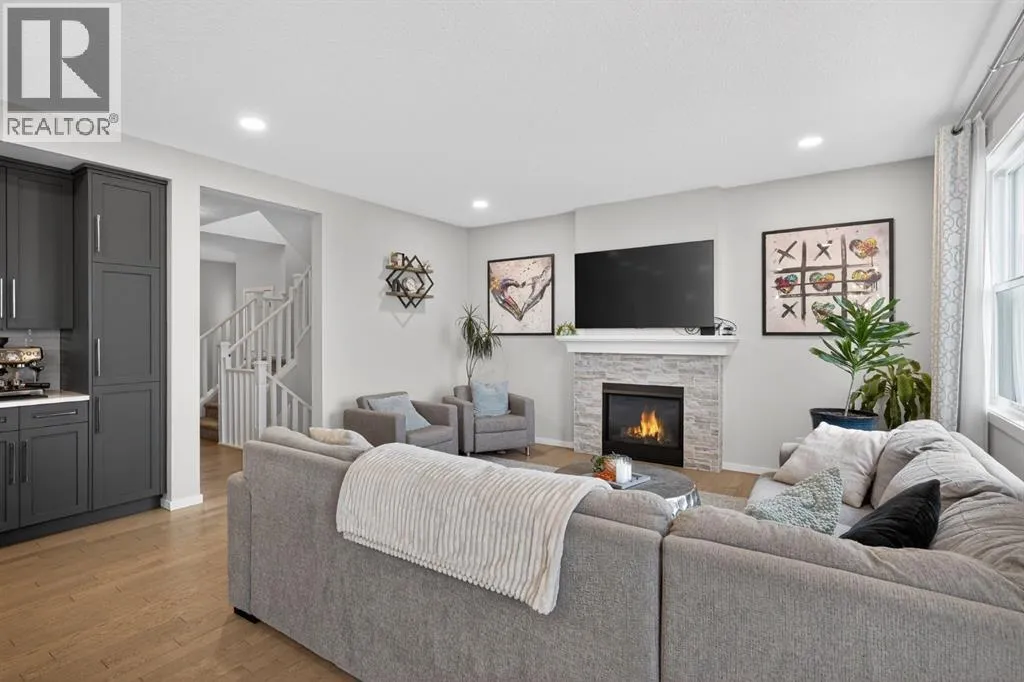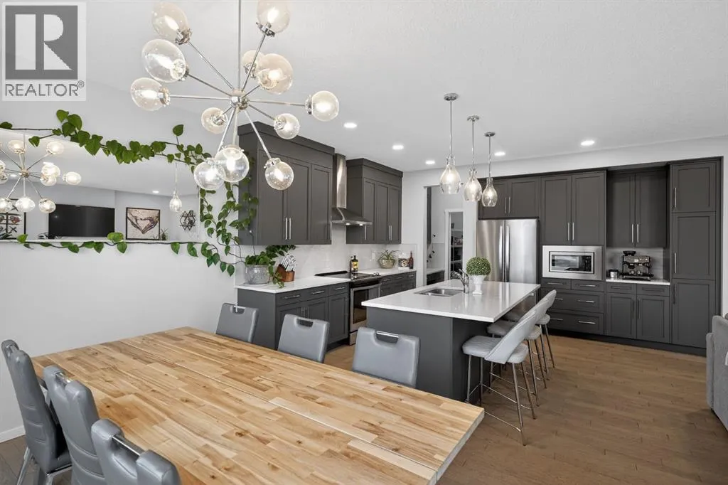 Backing onto expansive green space with no rear neighbours and unobstructed views, this fully finished walkout in Kings Heights offers over 3,100 sq ft of developed living space, with 5 bedrooms and 3.5 bathrooms, designed for those who value space, flexibility, and a setting thatâs becoming increasingly hard to find.Tucked into a quiet close, this home combines a bright, open layout with a location that truly sets it apart. The south-facing main floor features 9â ceilings, hardwood flooring, and a seamless flow between the kitchen, dining, and living areas.The kitchen is thoughtfully designed with a large island, quartz countertops, stainless steel appliances, and a walk-through pantry connecting directly to the mudroom and heated double attached garage.A main floor office with French doors creates a dedicated workspace, while upstairs, the bonus room provides additional living space. The primary suite is a true retreat, featuring a beautifully appointed 5-piece ensuite with a soaker tub and separate shower. Two additional generously sized bedrooms, both with walk-in closets, along with upper-floor laundry, complete the level.The fully finished walkout basement adds even more versatility, offering two additional bedrooms, a 3-piece bathroom, ample storage, and direct access to the backyard, ideal for guests, teenagers, or multi-generational living.The landscaped and fenced backyard opens directly onto wide green space with uninterrupted views and access to nearby pathways.Additional features include Gemstone exterior lighting, a heated garage, and excellent storage throughout.Located close to schools, parks, and everyday amenities, this is a well-rounded home in one of Airdrieâs most established communities. (id:27476)