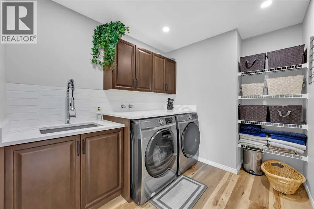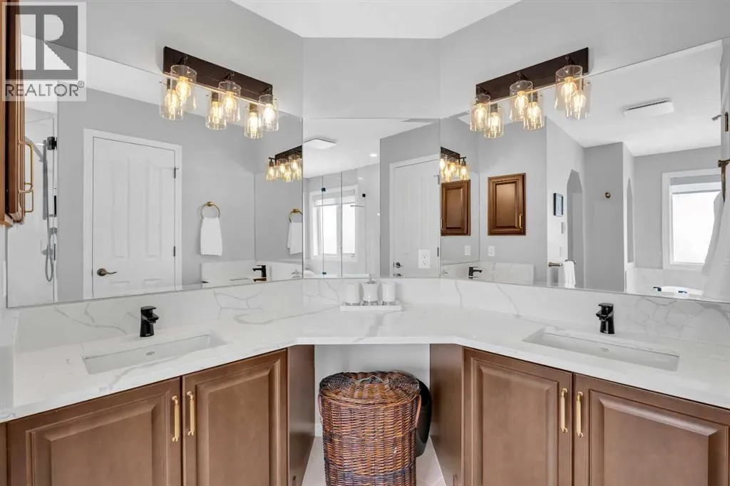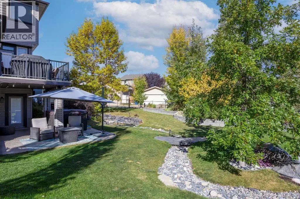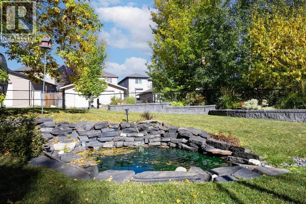 One of One! Nothing on the market compares to this fully developed, renovated luxury WALKOUT home backing the pond, with nearly a QUARTER ACRE of artfully landscaped lot on a quiet cul-de-sac with great neighbours and no traffic. RENOVATED with new counters, ceilings, lighting, floors, fixtures, paint and more. Thoughtful layout with private MAIN FLOOR OFFICE, oversized bonus room, and convenient UPSTAIRS LAUNDRY with cabinets and sink. Over 3200sqft of air-conditioned living space with a heated basement floor, maintained with expert care by proud meticulous owners. Garage has extra storage in an upstairs MEZZANINE, plus a long driveway and RV PARKING accessed from the paved alley. Morningside is where you will enjoy the schools and paths and parks and shops of neighboring Cooperâs Crossing without the Cooperâs price or HOA fees! Loaded with extras. Premium blinds, HOT TUB, heated master bath floor, turf DOG RUN, many more. Must be seen to be appreciated. This is easily the best property in Morningside, and unmatched at this price. (id:27476)
