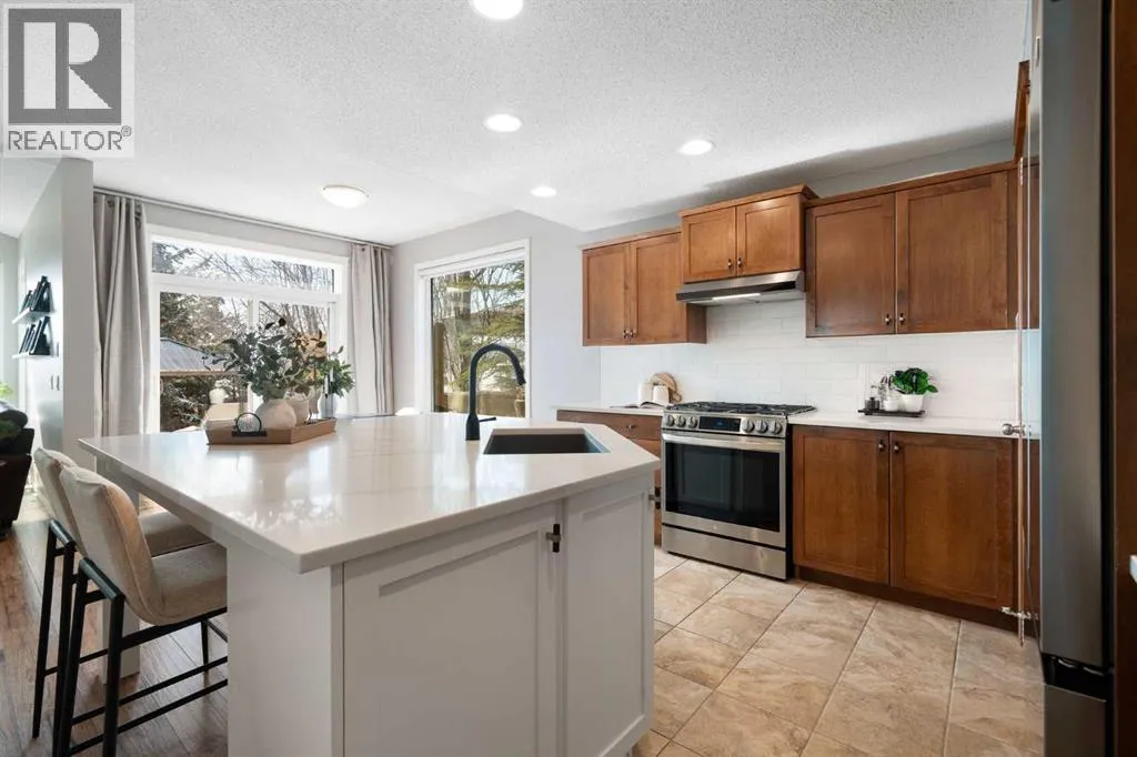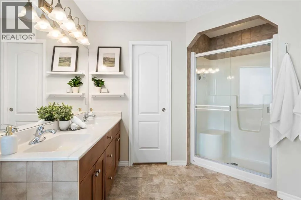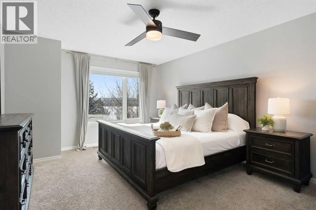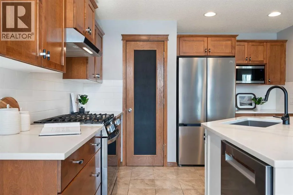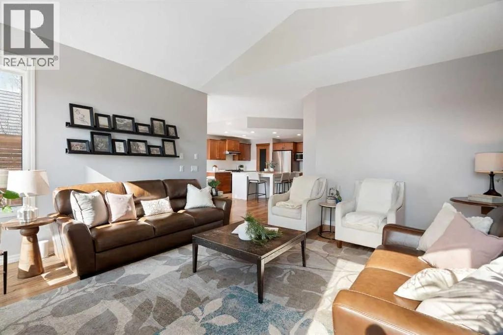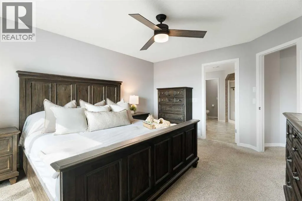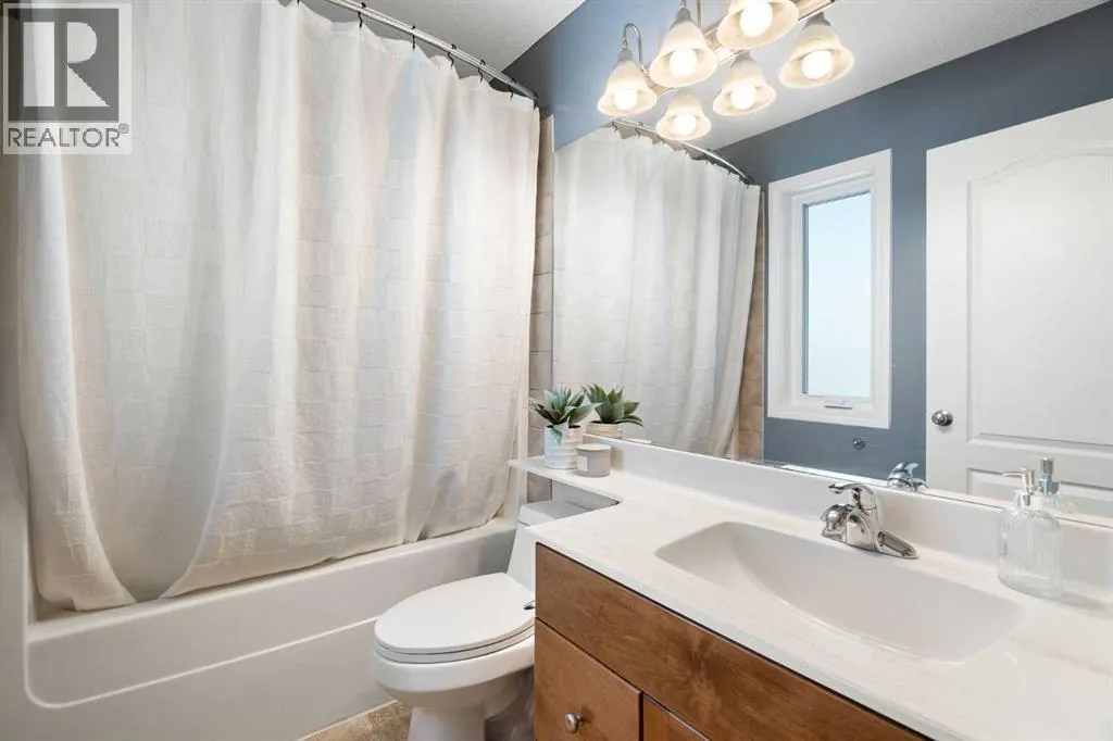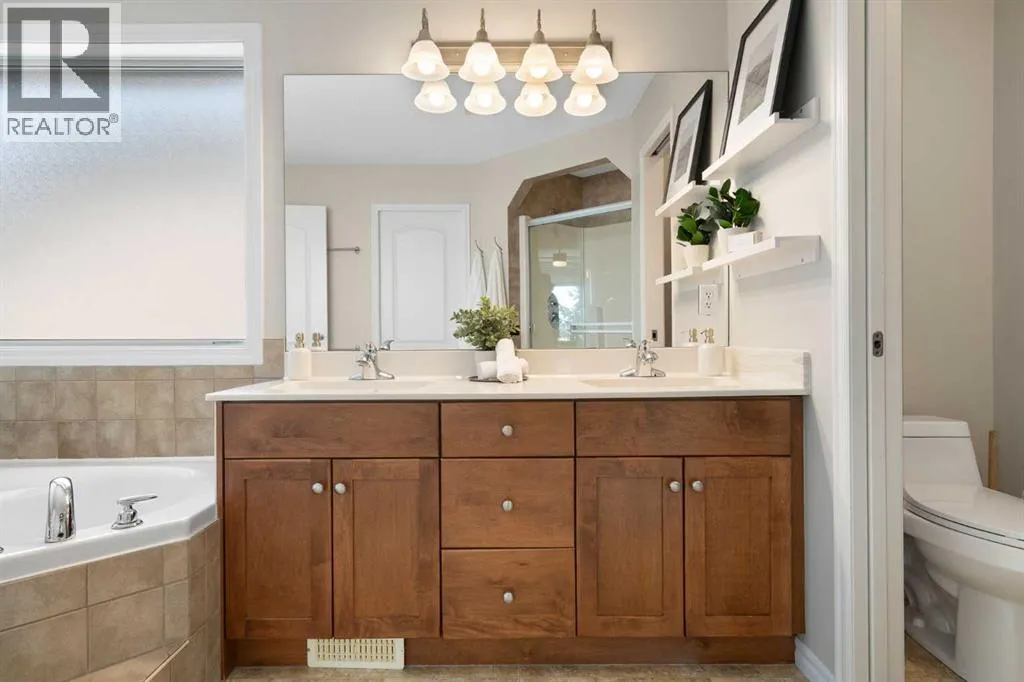 Hello, Gorgeous! Welcome to 142 Coopers Bay SW in Airdrie, located in the highly sought-after community of Coopers Crossing. This fully developed two-storey home offers over 2,200 sq ft above grade, 4 bedrooms, and 3.5 bathrooms, providing a functional layout suited for family living.The main floor features a spacious living room with a gas fireplace and large windows for natural light. The kitchen has been updated with a renovated island, countertops, and backsplash, along with newer appliances including a stove (2024), dishwasher (2025), hood fan (2025), washer and dryer (2025), and refrigerator (2026). A dining area, breakfast nook, main-floor laundry, and 2-piece bathroom complete this level.Upstairs includes a primary bedroom with a walk-in closet and 5-piece ensuite featuring dual sinks, a soaker tub, and separate shower. Two additional bedrooms, a 4-piece bathroom, and a bonus room provide additional living space.The fully developed basement includes a recreation room with a second gas fireplace, a fourth bedroom, a 3-piece bathroom, and storage space.Additional features include air conditioning, a heated double attached garage, and added insulation in the attic and garage.Situated on a large south facing pie-shaped lot in a quiet cul-de-sac, the property offers a fully fenced yard with a deck and is located close to parks, pathways, schools, and amenities. (id:27476)