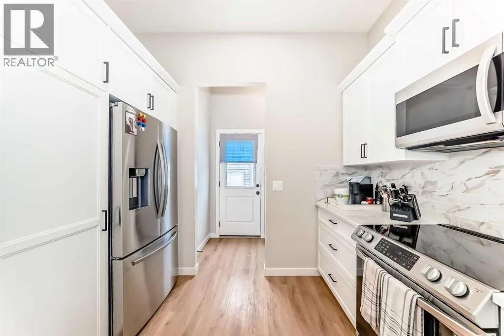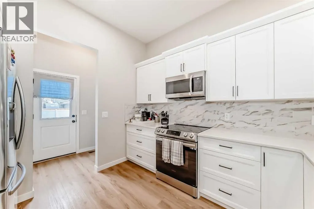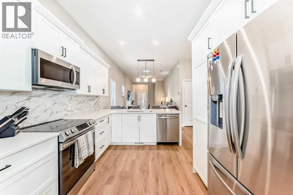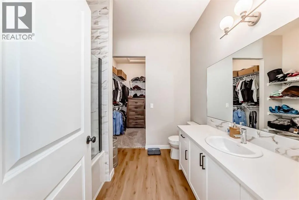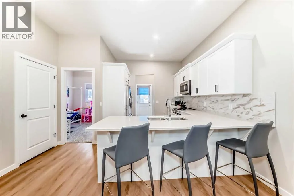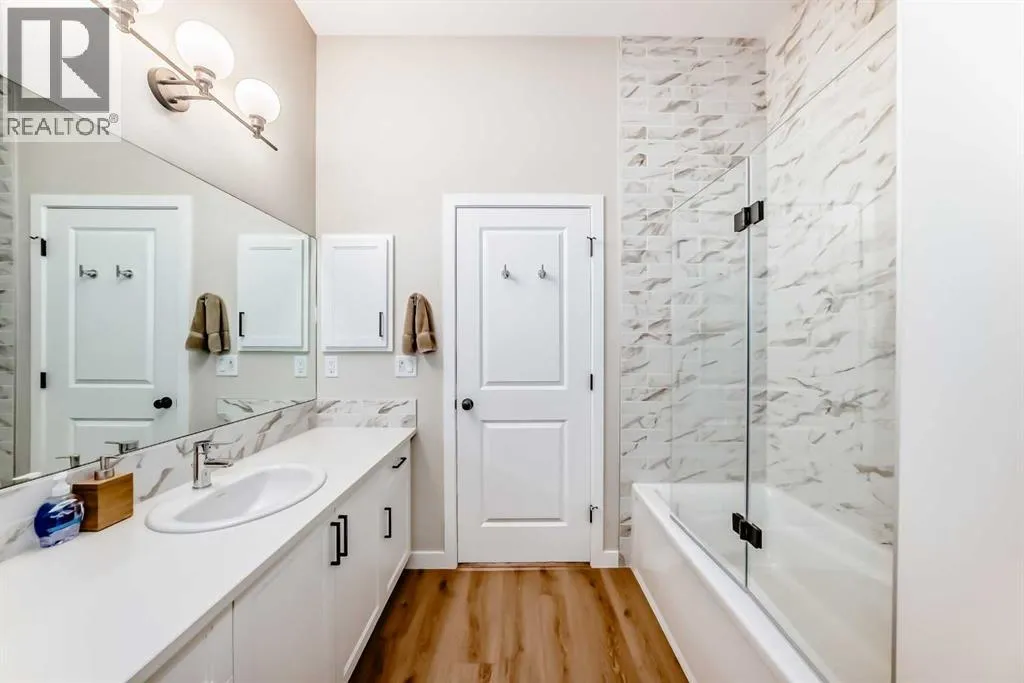 **OPEN HOUSE April 19, 12PM to 2PM**Welcome to this recently built (2022) and meticulously maintained 2 bed/2 full bath, AIR CONDITIONED bungalow; nestled in the community of Lanark Landing. The OPEN CONCEPT FLOOR plan and 10-FEET HIGH CEILINGS add to the spacious feel of this gorgeous home. LUXURY VINYL PLANK can be found throughout kitchen, living room and hallways. The Beautiful kitchen features QUARTZ counter tops, white shaker cabinetry, CROWN MOLDING, plenty of storage drawers, large PANTRY and WIFI enabled STAINLESS STEEL appliances. Living room boasts natural light thanks to a SUN-TUNNEL that leads into a large dining area perfect for entertaining. The primary bedroom features a MASSIVE WALK-IN CLOSET and Ensuite accented with QUARTZ counters and CUSTOM GLASS shower enclosure. The main floor is finished off with a MUDROOM w/bench, large secondary bedroom, laundry closet and 4 piece-bathroom also accented with QUARTZ counters. Do you want to add your personal touches to this home? Over 800sq.ft of undeveloped basement space awaits your imagination, complete with rough inâs and 3 large windows. This LOW MAINTENENCE property has thoughtful design elements including a FRONT VERANDA, CONCRETE PAD for the private patio or potential RV PARKING, a FULLY INSULATED and DRYWALL detached single garage equipped with WIFI OPENER, rock landscape garden out front for curb appeal and full VINYL FENCE and sodded backyard for those summer barbeques. Location is perfect, walking distance to walking paths, skating rinks, basketball courts, parks, schools and Kingsview Market. Easy access to Calgary with the new 40th Avenue overpass. The best value property of it's kind in Airdrie - Do not miss this opportunity! (id:27476)