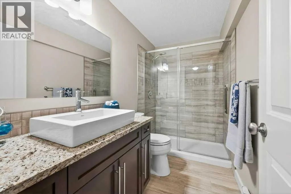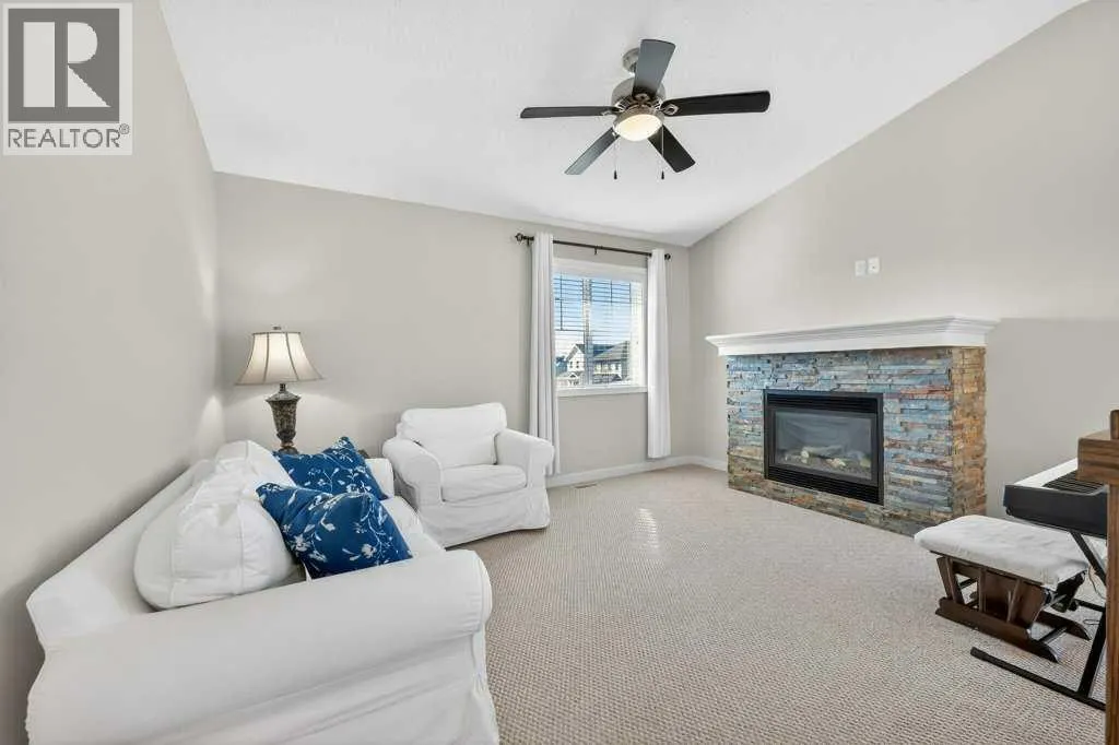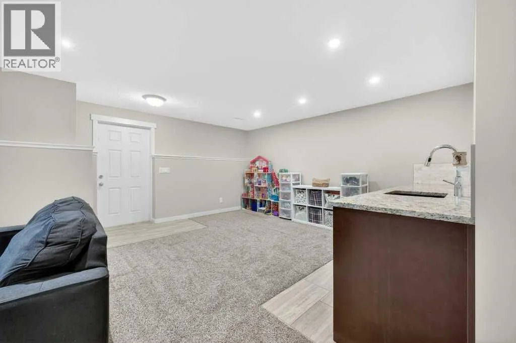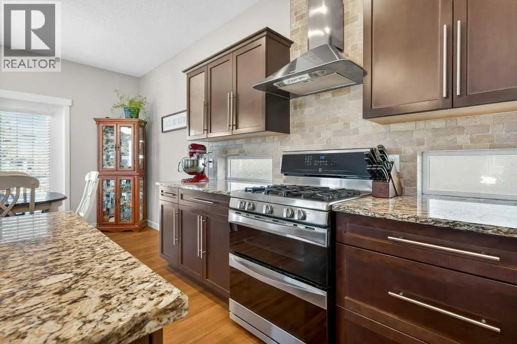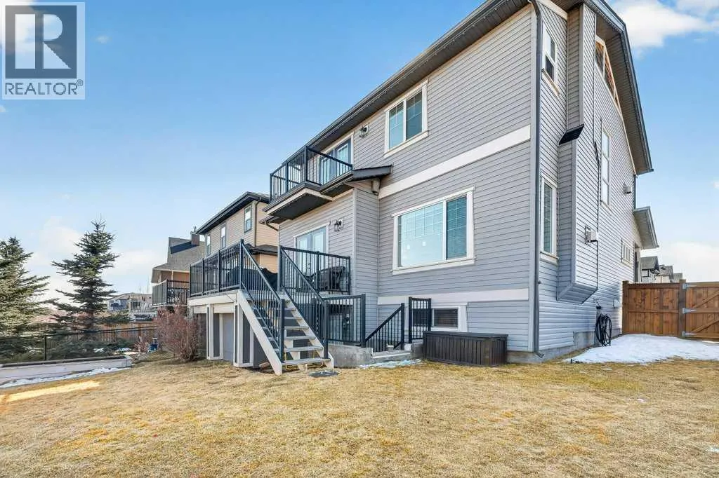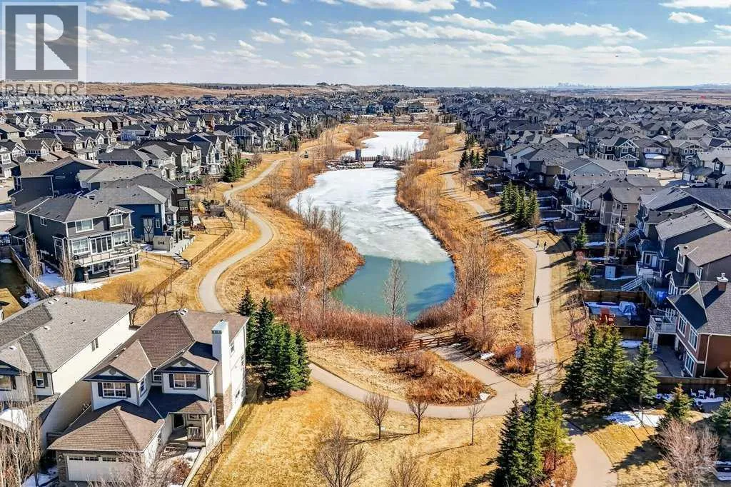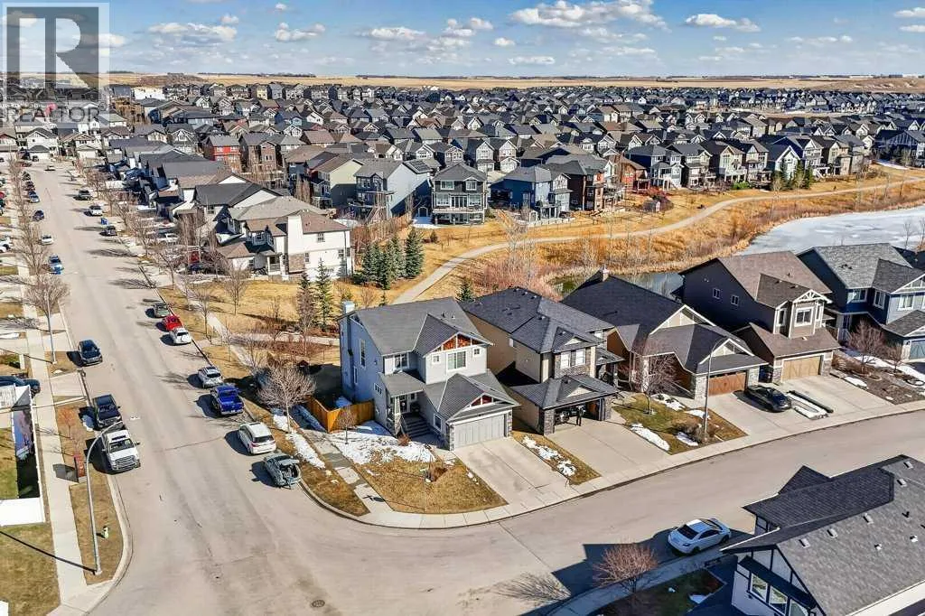 Absolutely immaculate, fully developed home with a walk-up basement in the beautiful community of Kings Heights. Situated on a desirable corner lot backing onto green space, this property also offers serene water viewsâtruly a move-in-ready residence. A spacious, bright, and welcoming foyer leads into a modern kitchen featuring a central island with a granite sink, upgraded appliances including a gas stove and double oven, and stunning granite countertops. Ample cabinetry is complemented by a large walk-through pantry with custom wood built-ins, providing exceptional storage. The kitchen flows seamlessly into a generous living room highlighted by a stylish fireplace with a contemporary tiled mantle. The bright dining area opens onto a large, maintenance-free deck overlooking the fully landscaped backyard, green space, and walking paths. A convenient 2-piece powder room completes the main level. Enjoy the oversized, heated, and insulated double garage, offering extended length for larger vehicles. Upstairs, the impressive primary bedroom features a luxurious 5-piece ensuite with a deep soaker tub, separate shower, and walk-in closet. A private balcony provides beautiful views of the park and water feature. Two additional bedrooms are generously sized, each with walk-in closets, and share a spacious 4-piece bathroom with convenient access. The upper-level family room offers a cozy gathering space with its own fireplace, and a laundry area with upgraded, brand-new washer and dryer adds everyday convenience. The fully finished basement is exceptional, featuring an open recreation/media room with a wet bar, high-end cabinetry, and abundant pot lighting for a bright, inviting atmosphere. An additional bedroom and modern 3-piece bathroom with elegant tile finishes make it perfect for guests. Extra storage is available under the stairs and in the utility room. The walk-up basement provides a separate entrance from the backyard, ideal for added privacy or flexibility. As a c orner lot, the home benefits from numerous additional windows, filling each room with natural light. The backyard is fully landscaped and ready to enjoy. Recent upgrades include a new furnace and hot water tank. This home comes with permanent lighting system...no more hanging Christmas lights! Located close to schools, shopping, and major transportation routes, this exceptional home is a true pleasure to show. Book your private tour today! (id:27476)