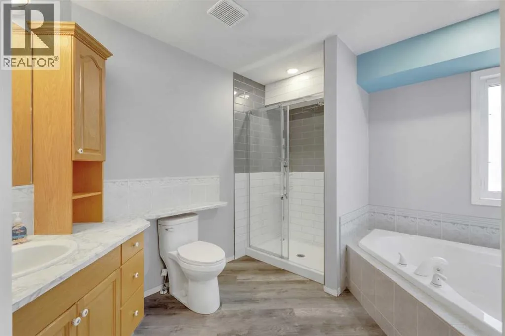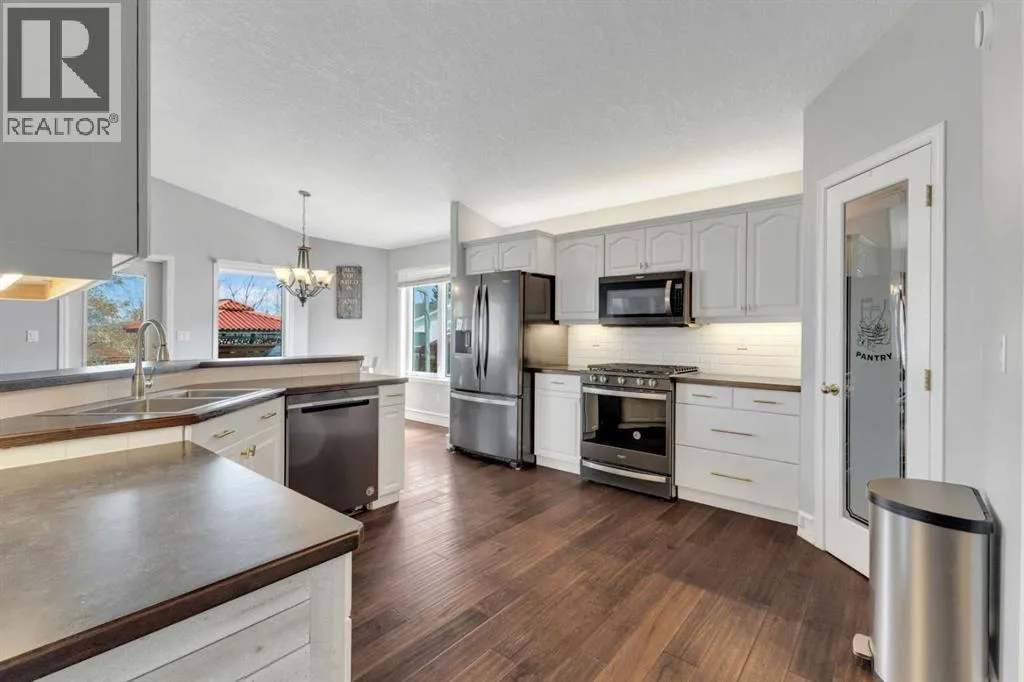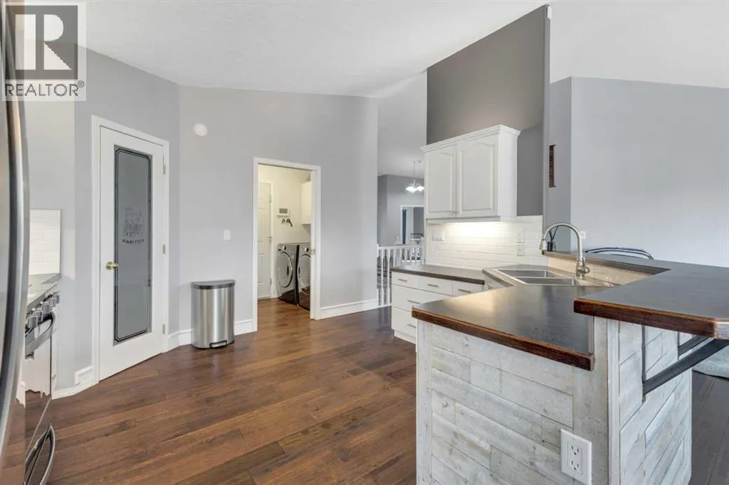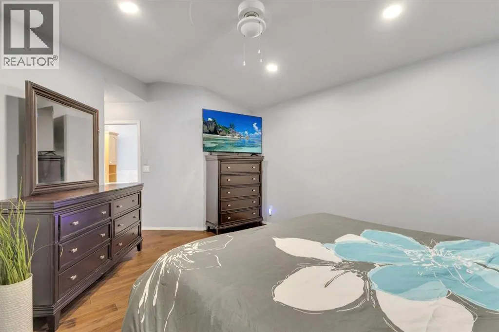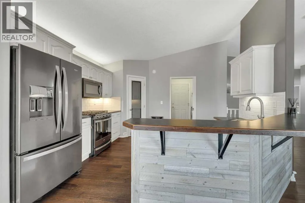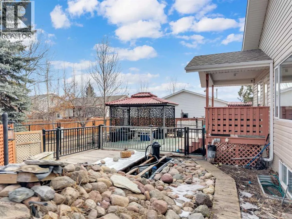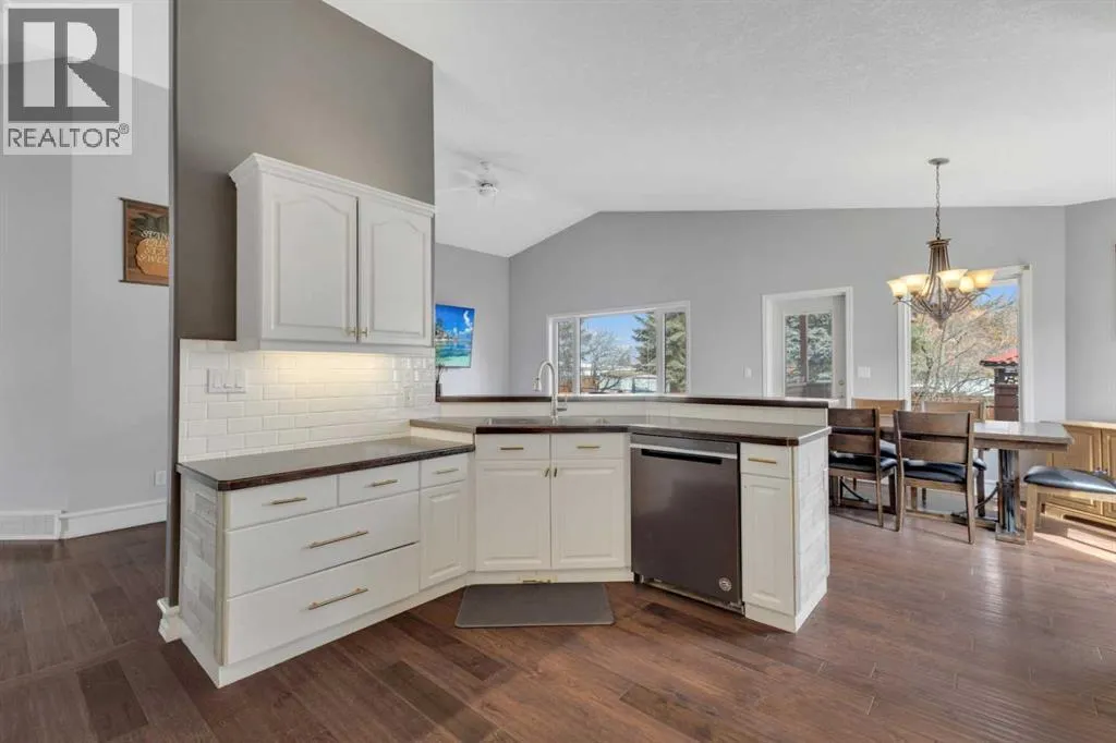 Country living meets small-town convenience! This beautifully updated bungalow offers true main-floor living with a bright, open-concept layout and modern finishes throughout. Recent upgrades include kitchen appliances (2019), washer/dryer (2021), A/C (2022), furnace (2024), and roof (2019) â move-in ready with peace of mind. The main level features 2 bedrooms, including a spacious primary with a large ensuite, plus an additional bedroom/office and full bath. The fully finished basement adds 2 more bedrooms, a full bathroom, wet bar, cozy wood-burning fireplace, and in-floor heating â perfect for family or guestsâ¦â¦Outside is where this beautiful home really SHINESâ¦.Enjoy the Oversized heated double attached garage; MASSIVE amounts of off-street parking (where else have you seen a highway trailer parked?!!!) and beautiful fully landscaped yard like no other! You can relax by the pond, entertain on the deck and patio with gazebo, or enjoy the firepit area. There are a couple of sheds, and tons of perennials, trees and shrubs (Zone 5 Underground sprinkler system). This amazing yard has room for the fish, the kids, the dogs and even a chicken coop/run!! Located on the edge of town with pasture beside, for that country feeling. This property includes access to an additional leased municipal space currently used as a garden - so EVEN MORE ROOM to enjoy! Fully fenced and ideal for those seeking space, privacy, and a modern, comfortable home. (id:27476)