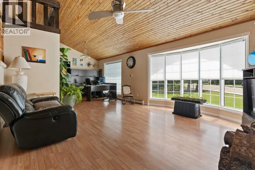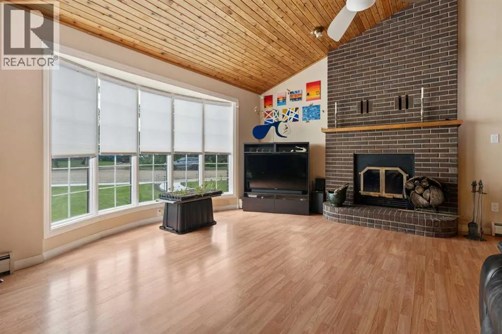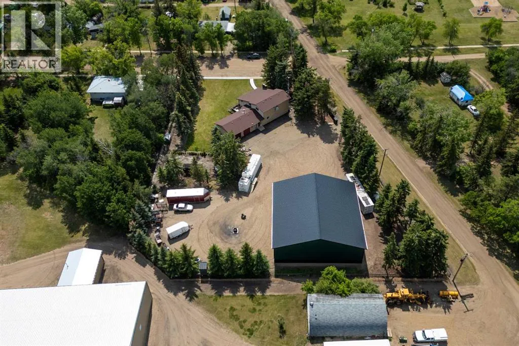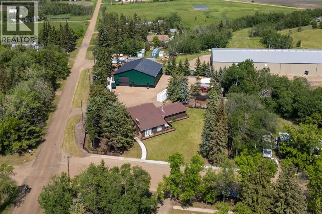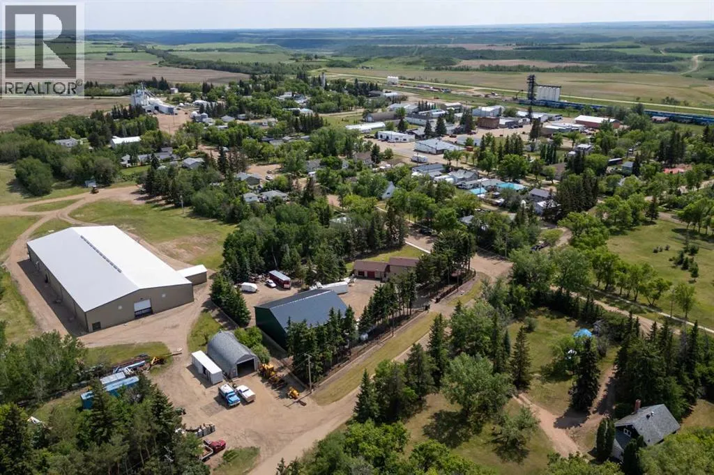 Welcome to this exceptional property located in the charming village of Alliance, AB. If you're seeking a quiet, peaceful, and welcoming community to call home, this is the perfect place. Set on a spacious one acre lot within the village, this 3 bedroom, 2 bathroom home offers both comfort and versatility. The fully fenced yard is designed for low-maintenance living, featuring a mix of gravel, paved areas, and lawn. A massive 64' x 64' shop with electrical service and a gravel floor offers endless possibilities, ideal for hobbies, storage, or even a home based business.Inside the home, youâll find a functional layout with main floor laundry, a generous living room complete with a cozy wood-burning fireplace, a separate dining area or office space, and a well appointed kitchen with ample cabinetry and counter space. The primary bedroom and a 4-piece bathroom are also conveniently located on the main level. Upstairs, a charming loft-style nook overlooks the living room that is perfect for reading or relaxing. Two additional bedrooms and another full 4 piece bathroom complete the upper floor. Additional features include an efficient inverter air conditioning unit, an attached heated garage with an exhaust fan and extractor hood, and plenty of space inside and out to make this property your own. The large shed is entirely supported by 6 foot bell bottom concrete columns. (id:27476)