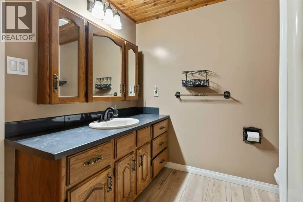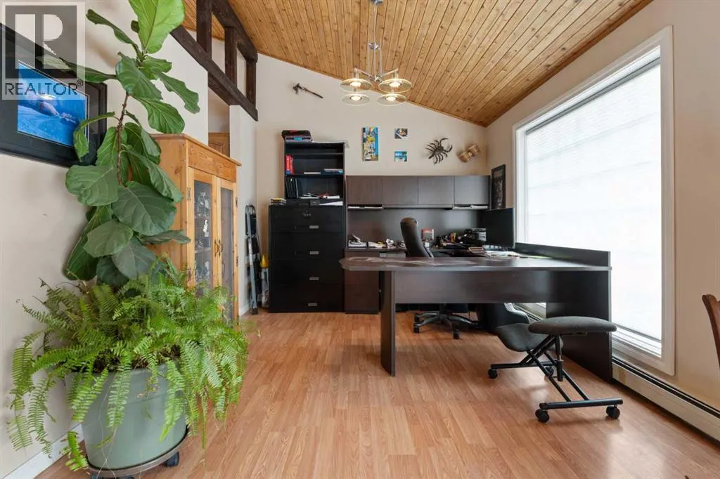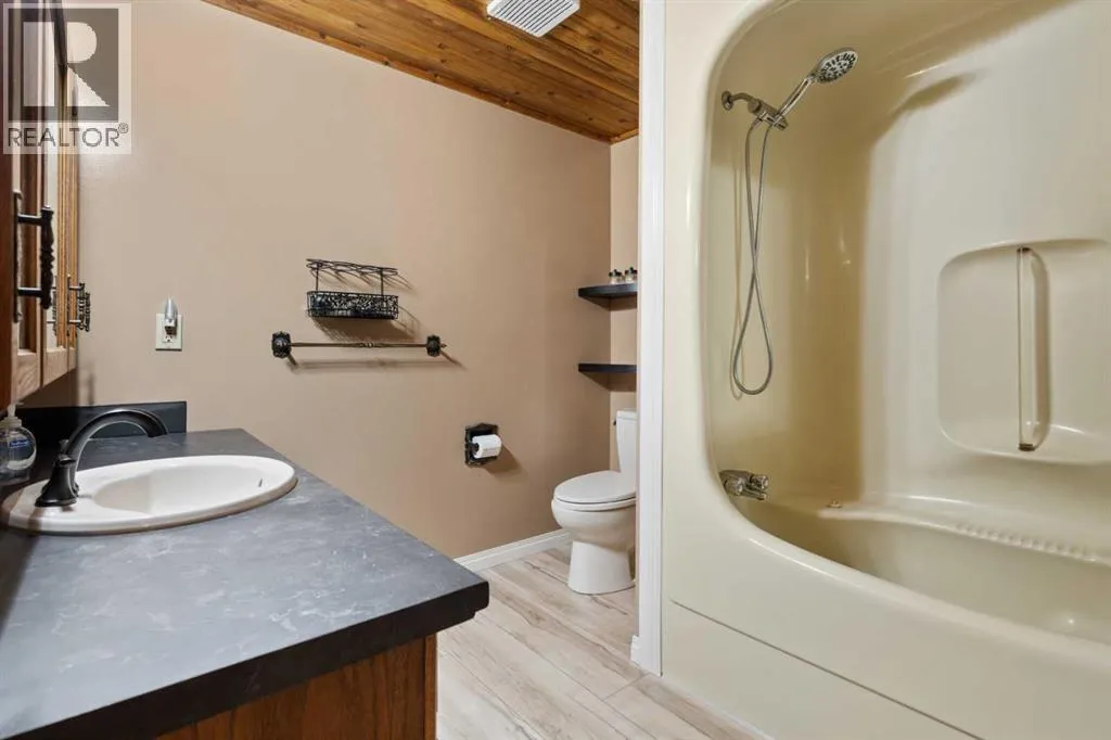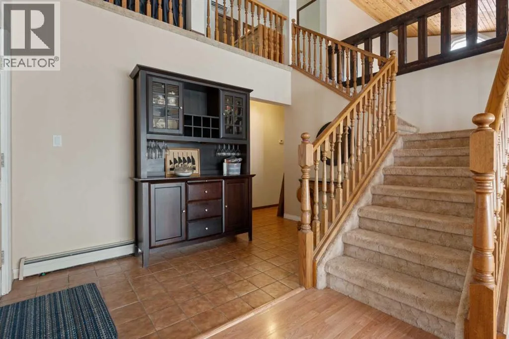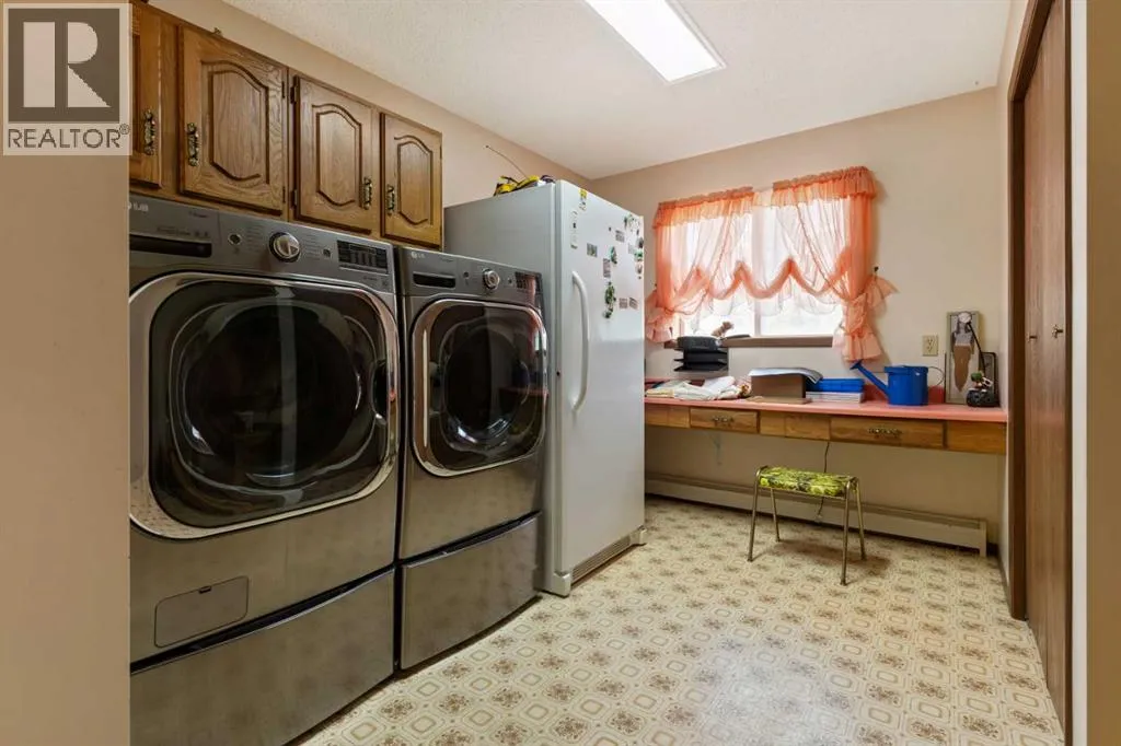 Welcome to this exceptional property located in the charming village of Alliance, AB. If you're seeking a quiet, peaceful, and welcoming community to call home, this is the perfect place. Set on a spacious one acre lot within the village, this 3 bedroom, 2 bathroom home offers both comfort and versatility. The fully fenced yard is designed for low-maintenance living, featuring a mix of gravel, paved areas, and lawn. A massive 64' x 64' shop with electrical service and a gravel floor offers endless possibilities, ideal for hobbies, storage, or even a home based business.Inside the home, youâll find a functional layout with main floor laundry, a generous living room complete with a cozy wood-burning fireplace, a separate dining area or office space, and a well appointed kitchen with ample cabinetry and counter space. The primary bedroom and a 4-piece bathroom are also conveniently located on the main level. Upstairs, a charming loft-style nook overlooks the living room that is perfect for reading or relaxing. Two additional bedrooms and another full 4 piece bathroom complete the upper floor. Additional features include an efficient inverter air conditioning unit, an attached heated garage with an exhaust fan and extractor hood, and plenty of space inside and out to make this property your own. The large shed is entirely supported by 6 foot bell bottom concrete columns. (id:27476)