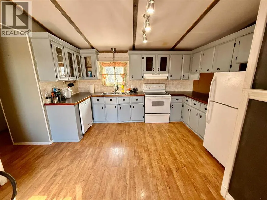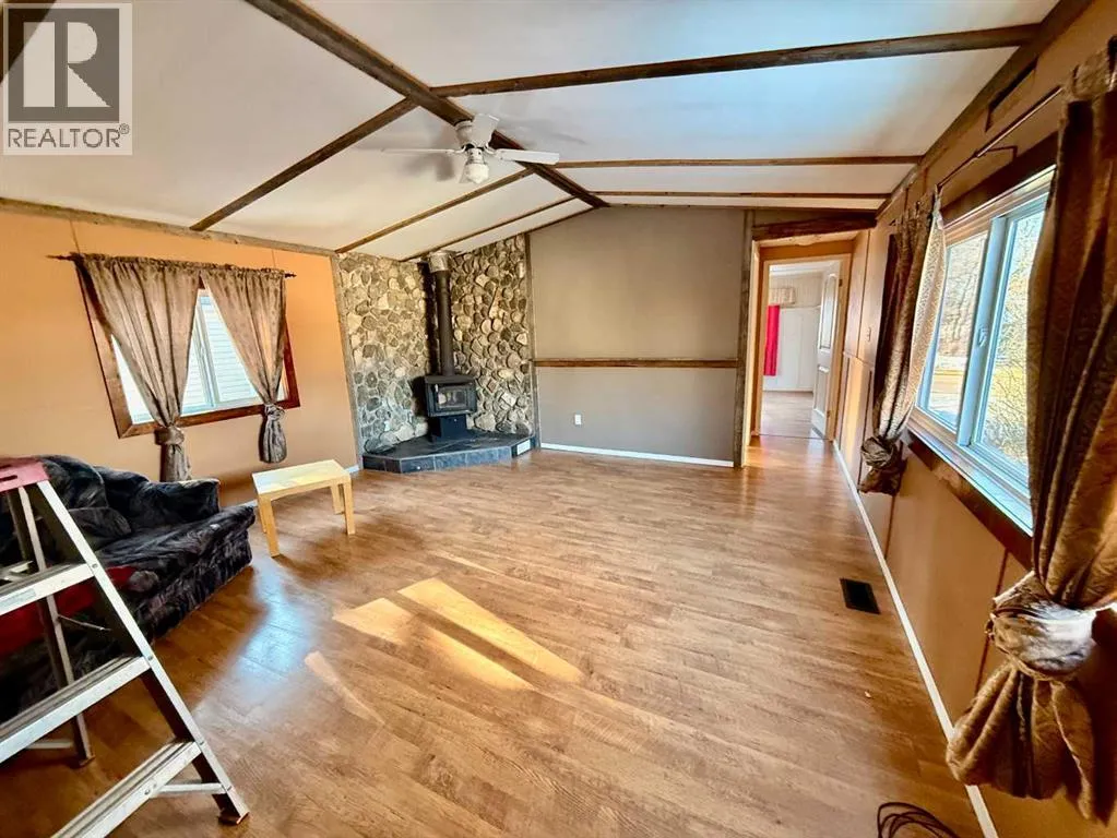 Located in the Village of Amisk, this 1,184 sqft. mobile home features 3 bedrooms, bright & open primary bedroom large enough to fit a king bed, 2 additional bedrooms with a 4pc. jack & jill bathroom. Modern & trendy open kitchen, dining area, living room with wood burning fireplace & separate laundry room. This home is situated on a nice sized lot with a 24 x 30 double detached heated garage. (id:27476)