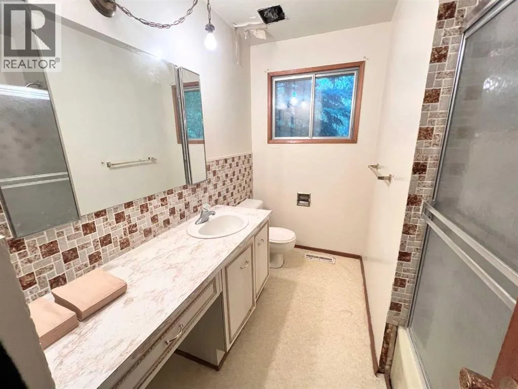 15.32 acres within Town limits! Current use is residential, with rezoning would be an excellent location for commercial/industrial use with Highway 2 exposure. Home was built in 1973 with 4 bedrooms and 2 bathrooms. Walk-out basement has a large hobby room, bedroom and unfinished flex space open to your imagination. Acreage is mostly heavily treed and hilly with a private clearing stretching along the east side. Second approach off the highway at the south west end. This property offers unlimited possibilities. (id:27476)